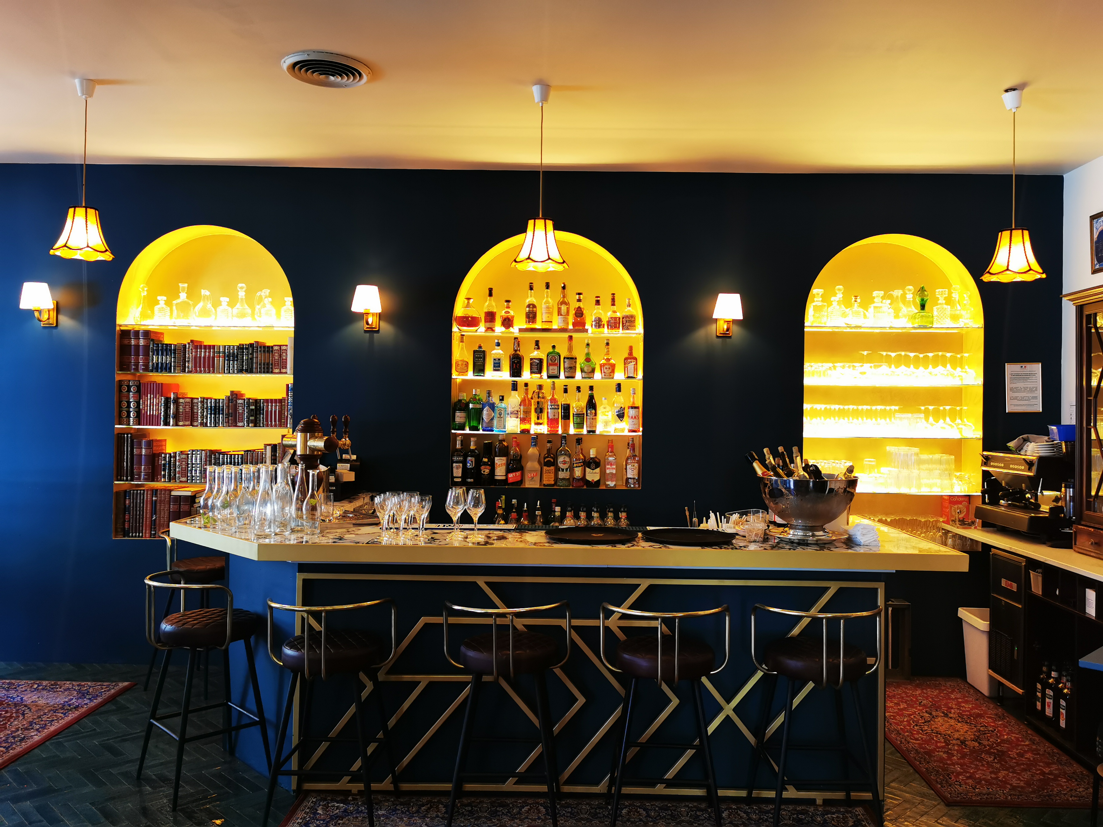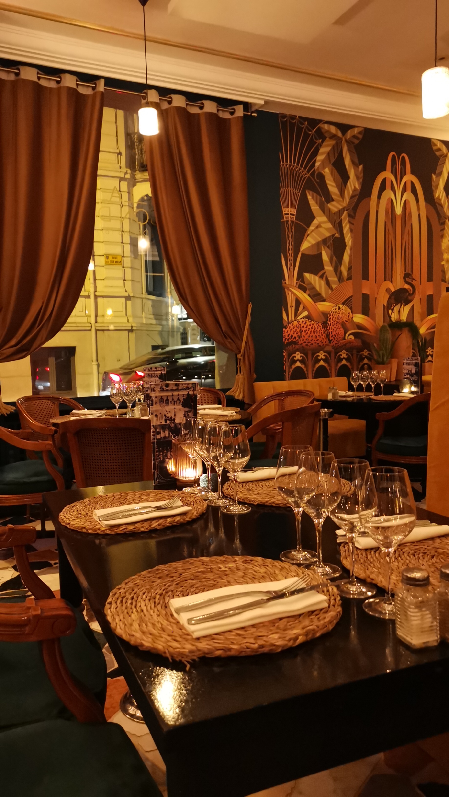 Des cocktails bien dosés, une cuisine recherchée, une salle rétro très classieuse (ambiance Orient Express). Dommage de trébucher sur le pain, congelé et dur comme une pierre... En France, tout de même...