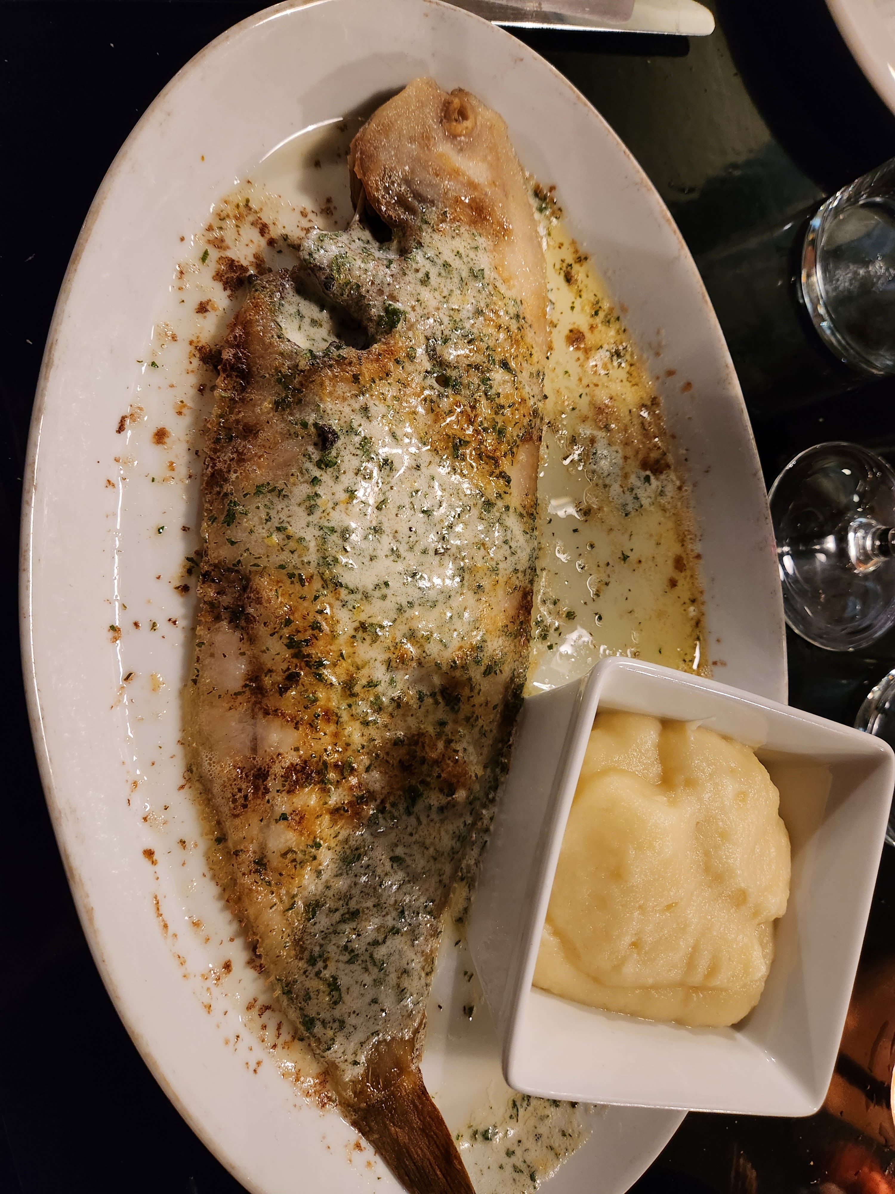 Exceptionnel. Endroit charmant. Belle terrasse. Poissons délicieux.