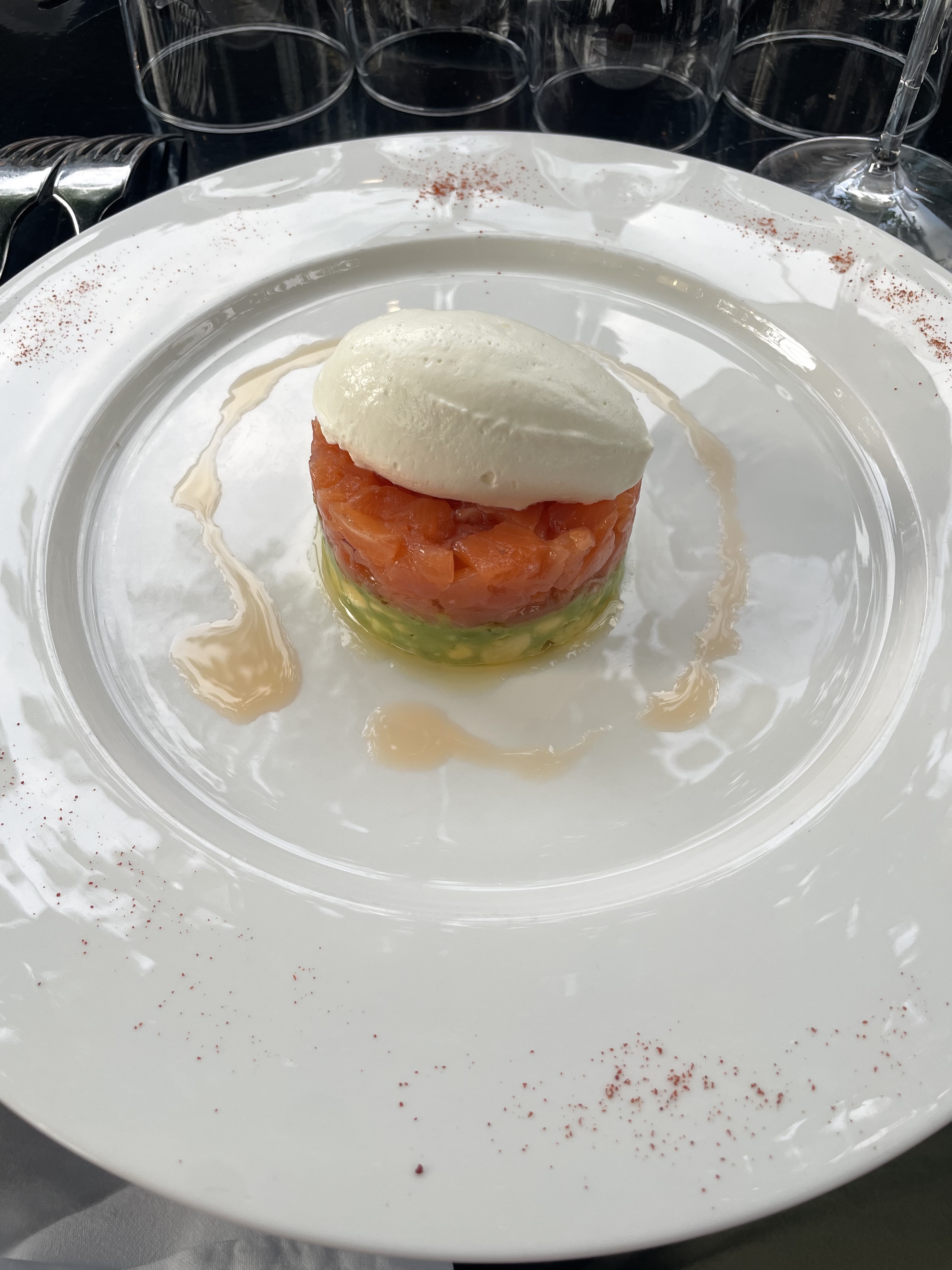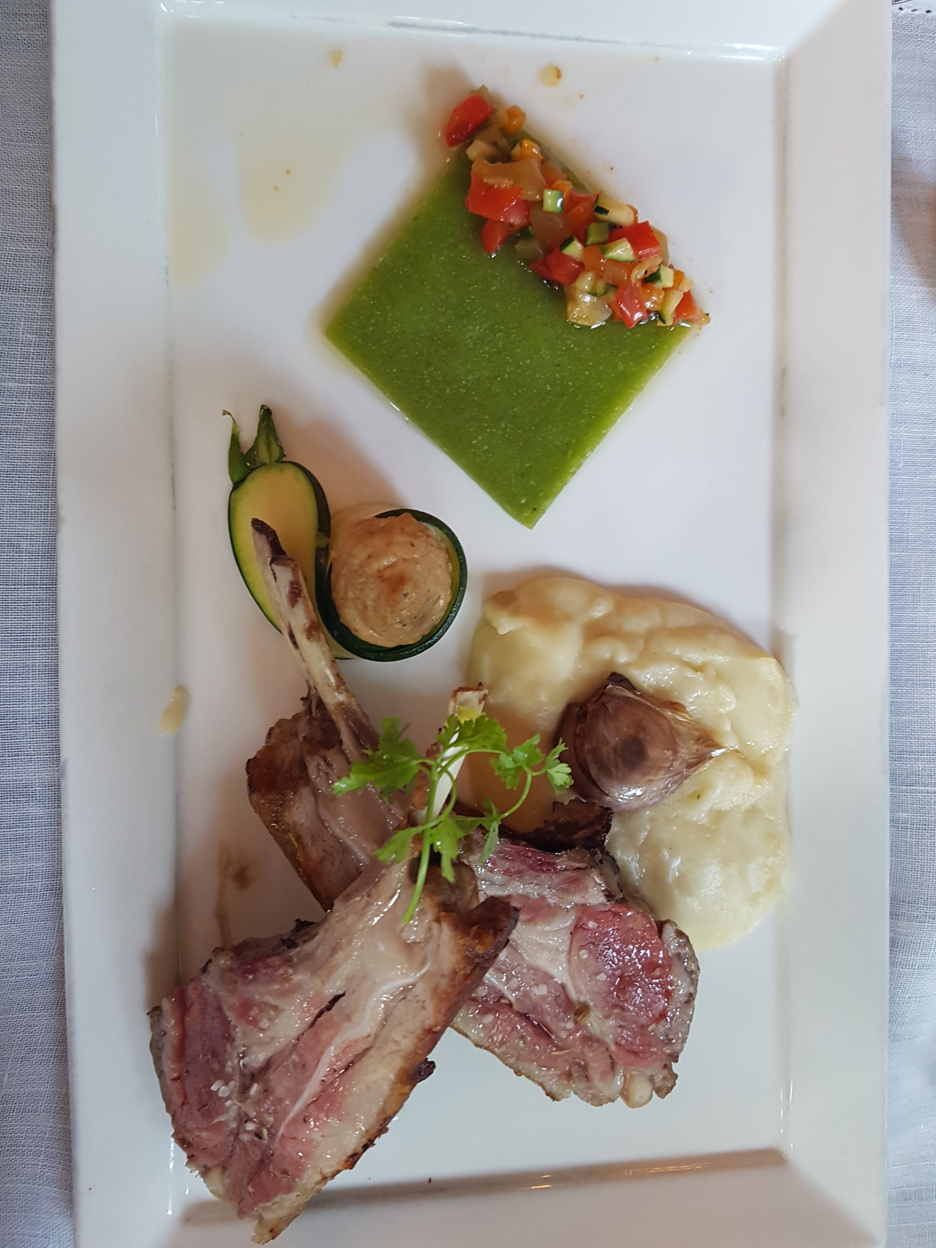 Nous avons passé un excellent moment dans ce cadre idyllique! Le rapport qualité prix est bon, surtout compte tenu de l’emplacement! La côte de cochon vaut le détour… tout comme le buffet de dessert! En même temps j’ai pris en photo l’entrée… ça veut dire que tout est bon. Merci