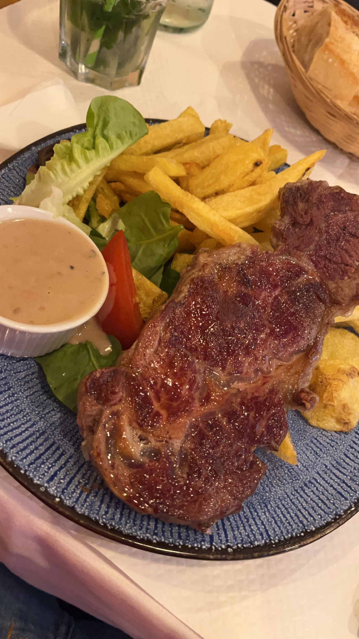 L'experience était excellente! Notre serveuse était efficace et revenais nous voir assez souvent pour verifier si l'on avait besoin de quelque chose, tandis que la nourriture était excellente! La viande était bien cuite et assaisonné, la salade était fraiche et la vinaigrette été très bonne bonne! Je dirais que la partie que j'ai le moins apprécié était les frites, que, je trouve, manqué de sel, mais cela me semble être motif en France. En tout, j'ai adoré mon experience dans se restaurant!