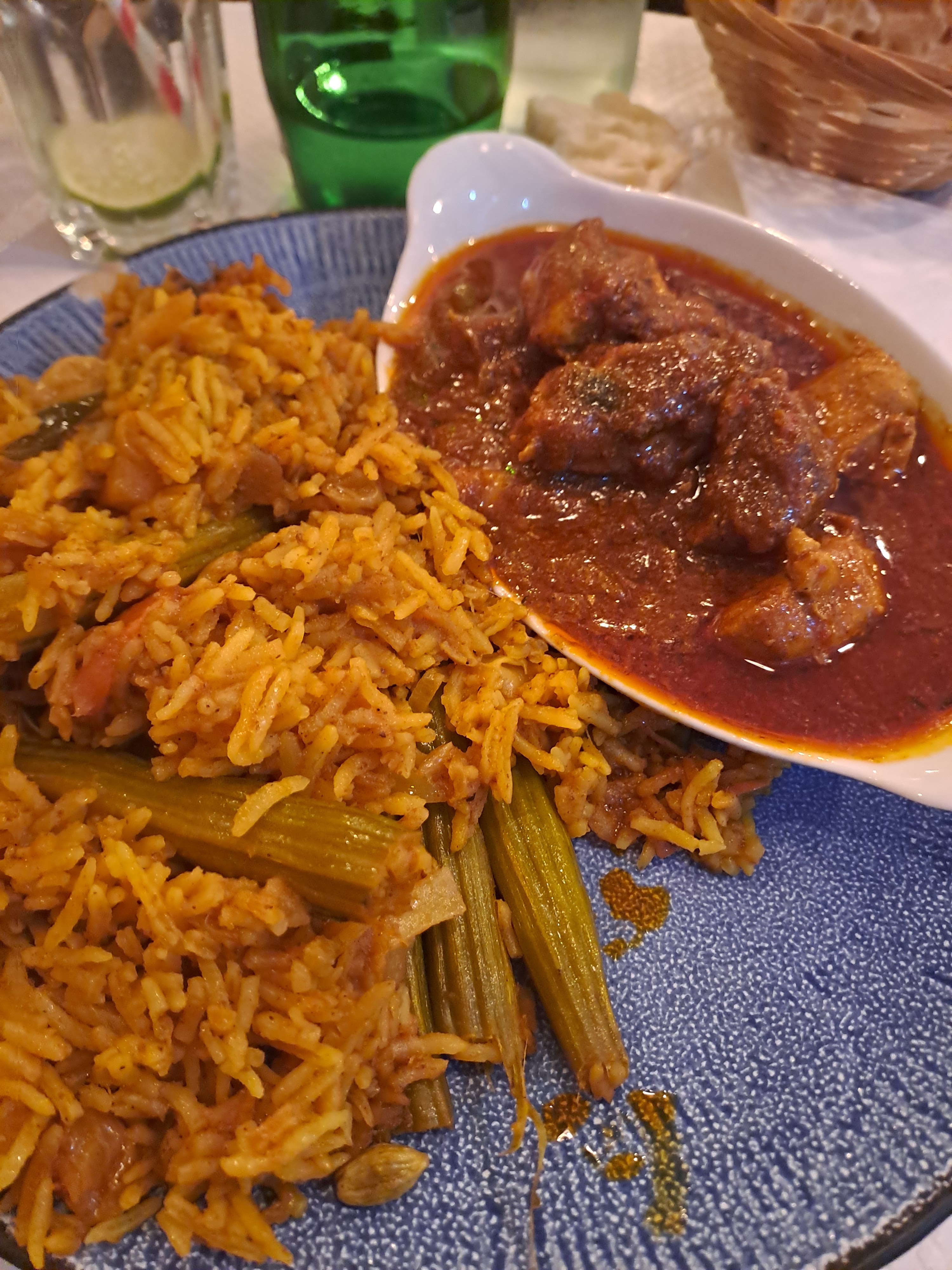 Super restaurant avec produit frais et maison, nous avons pris poulet biryani très copieux et souris d'agneau. Une menu entrée plat déssert ,super niveau rapport qualité prix !!! Le meilleur du coin