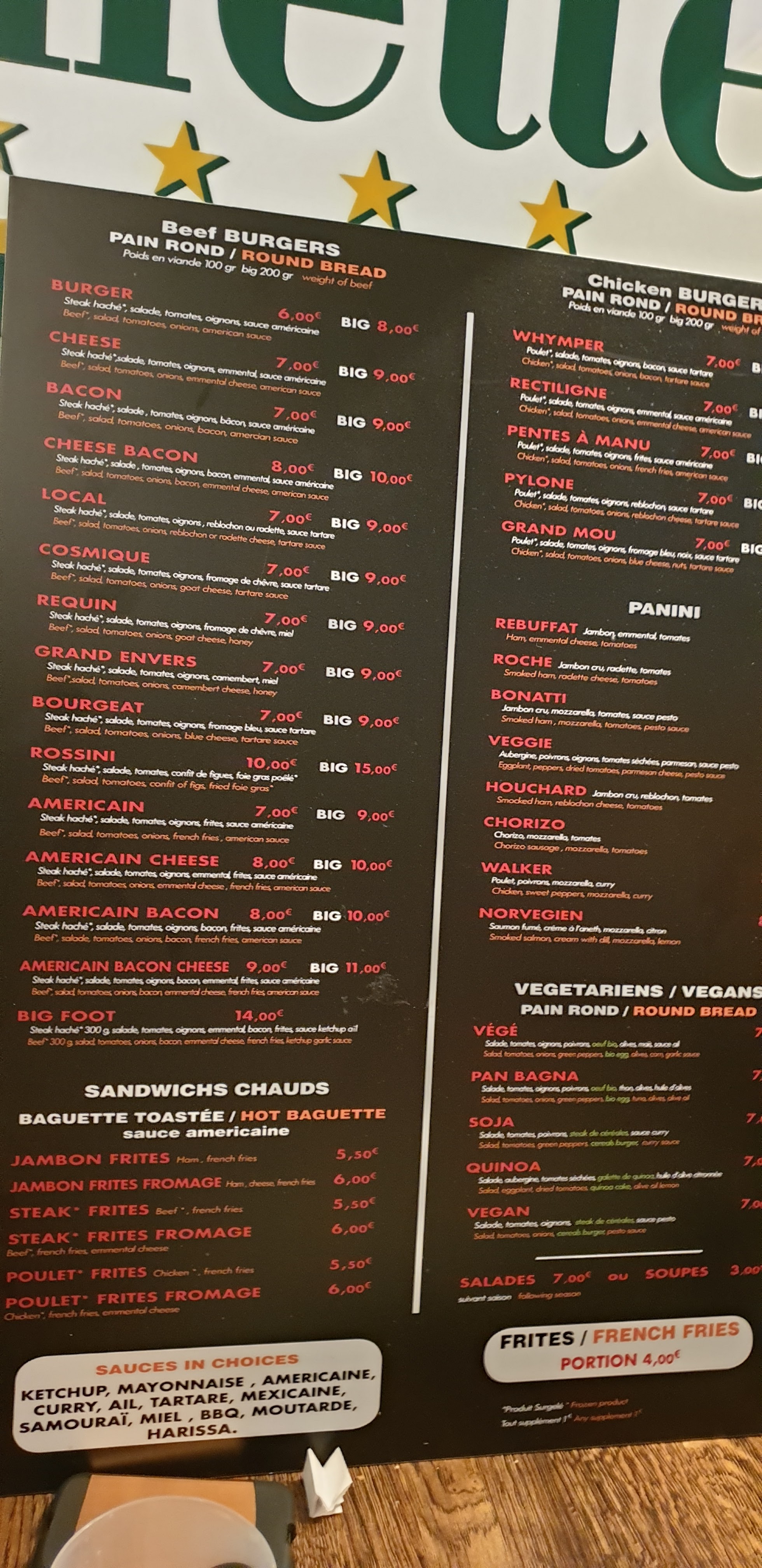 Endroit sympa avec de gros burgers savoureux. Idéal pour manger avec un budget limité ! Ils proposent des paninis, des baguettes grillées et des burgers. Vous pouvez vous asseoir à l'intérieur ou à l'extérieur.