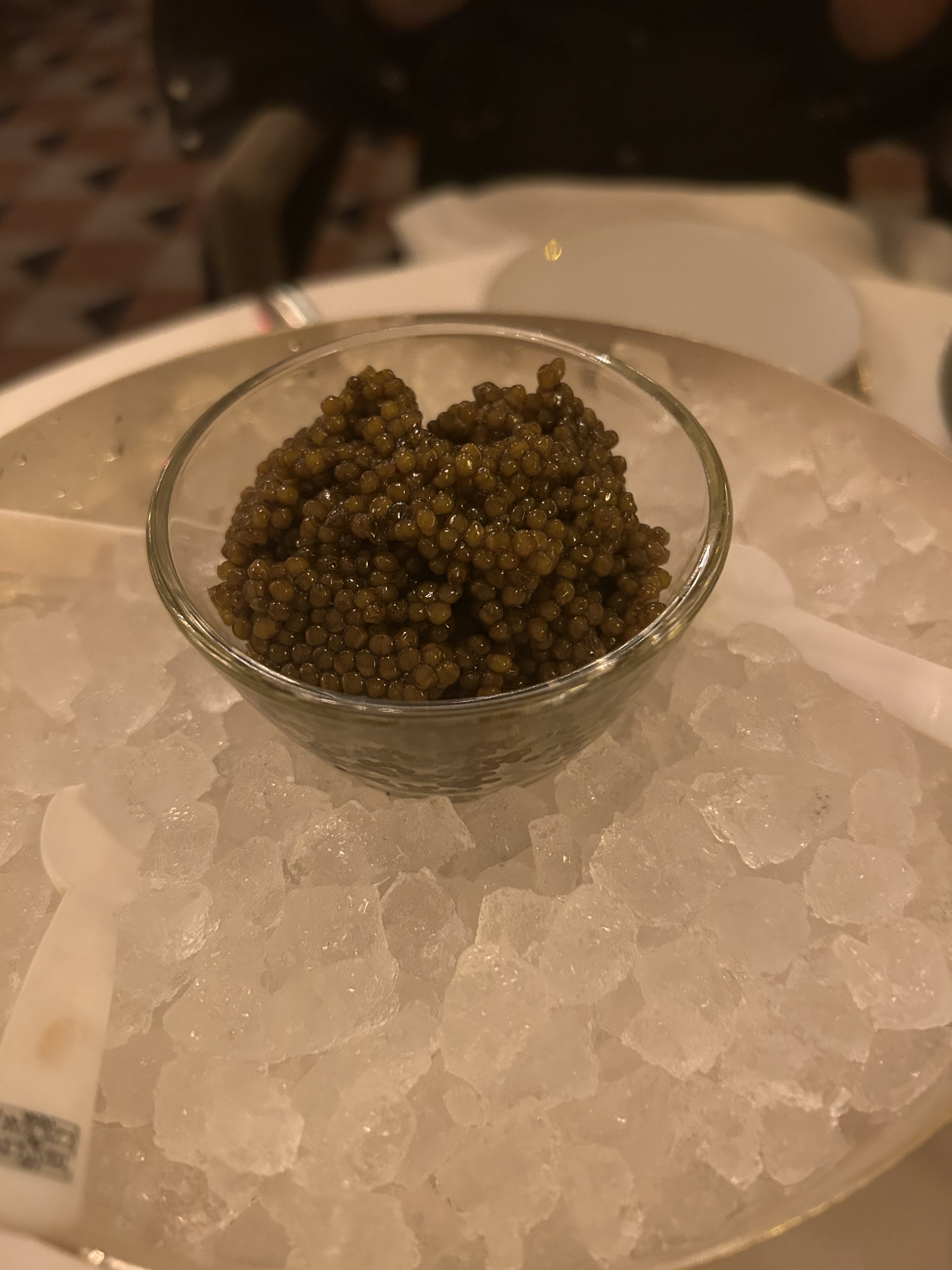 Caviar superbe, service presque parfait, fréquentation de qualité, excellente découverte.
