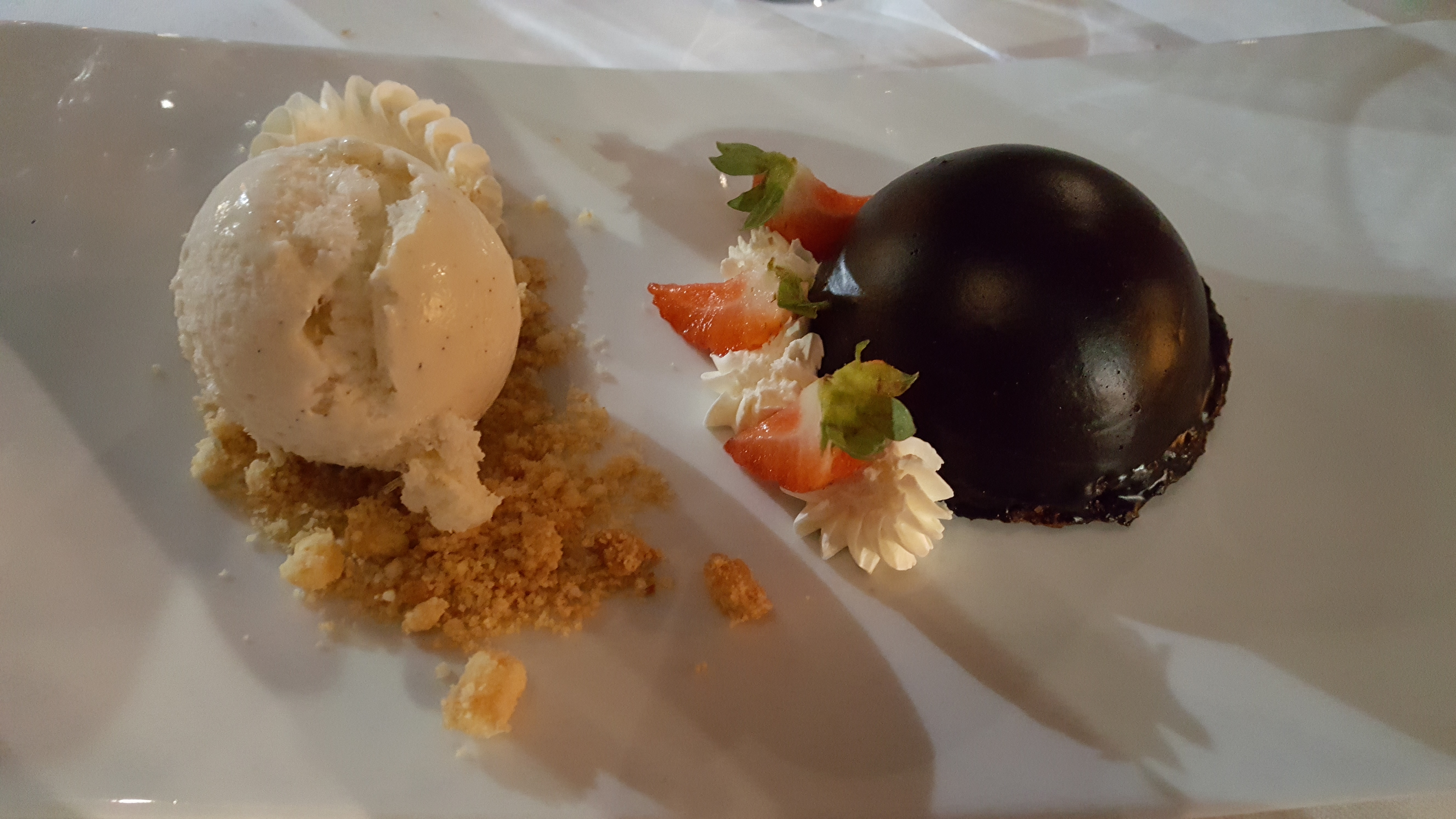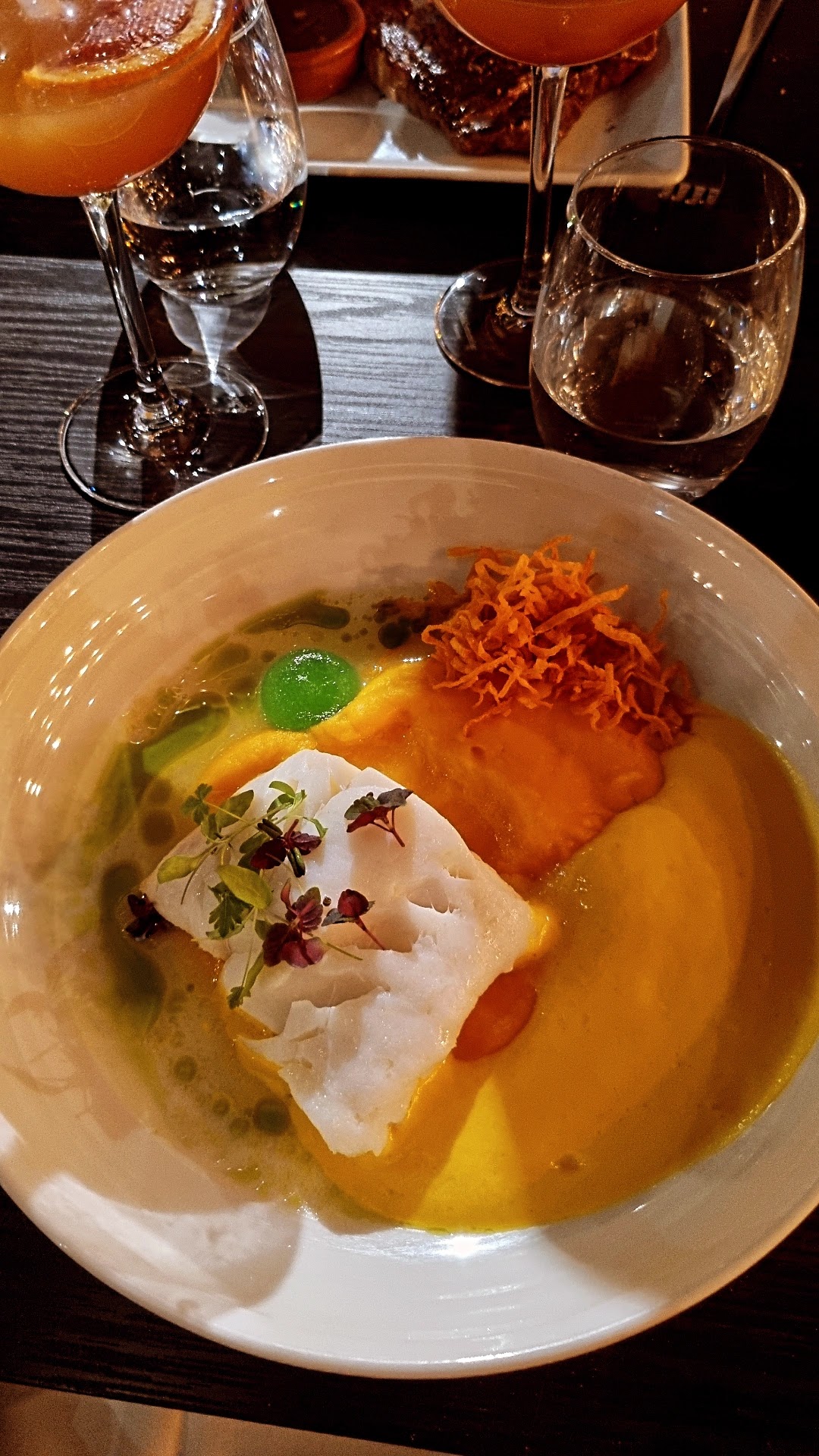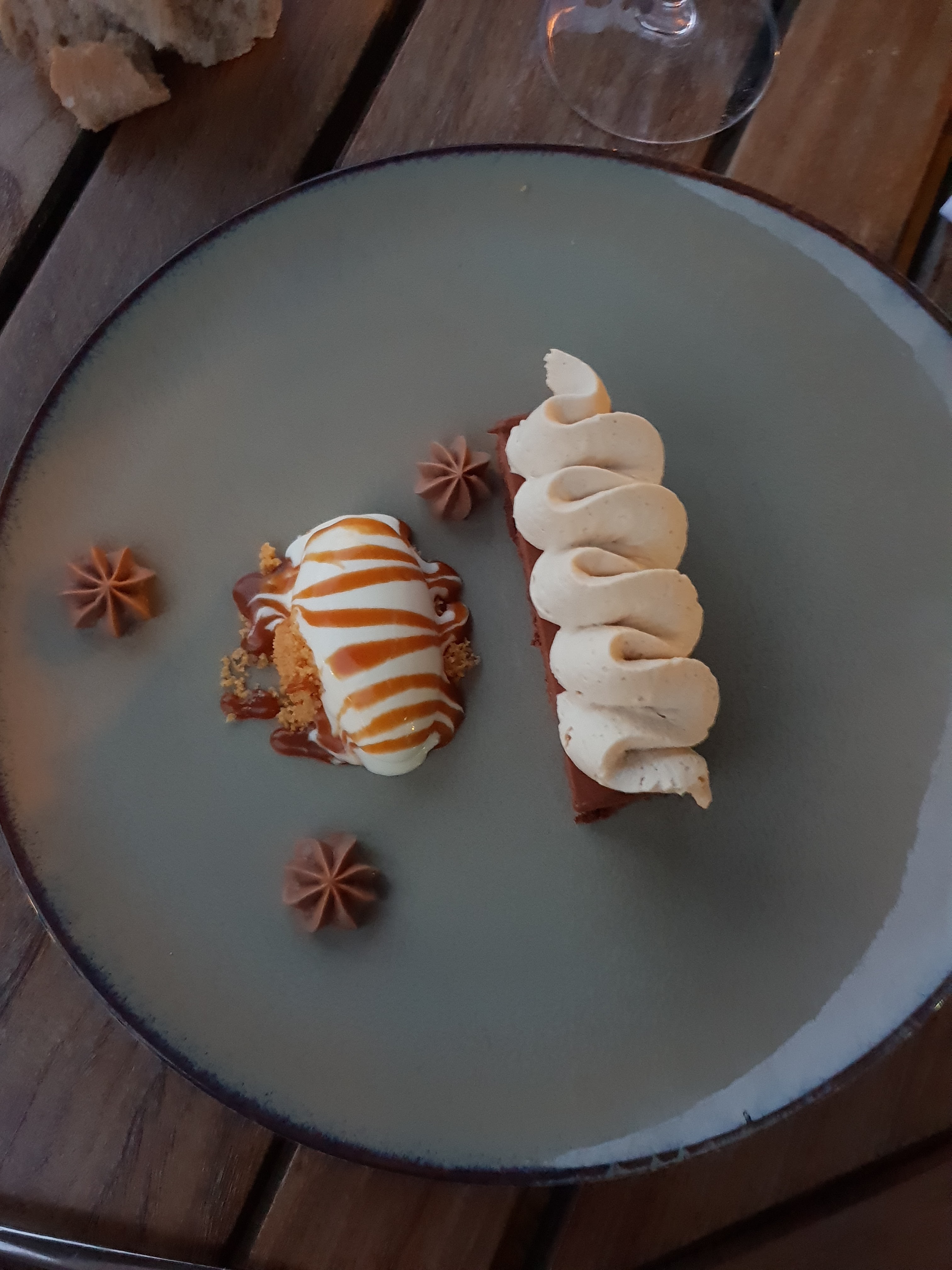 Emballée par l'entrée et le dessert. Le plat principal bien que parfaitement exécuté nous a moins transporté. Service rapide, parfois un peu trop 😁efficace et agréable.