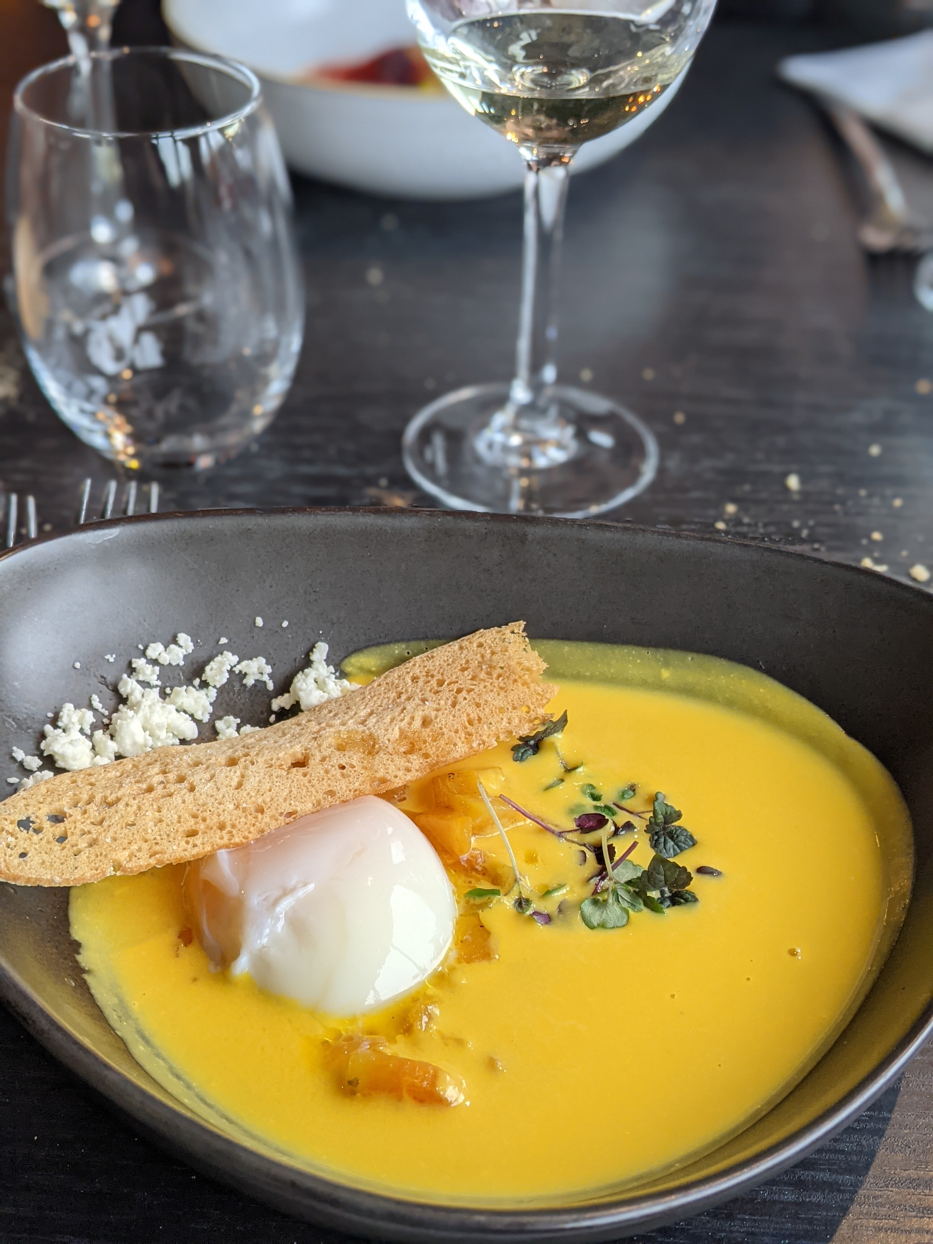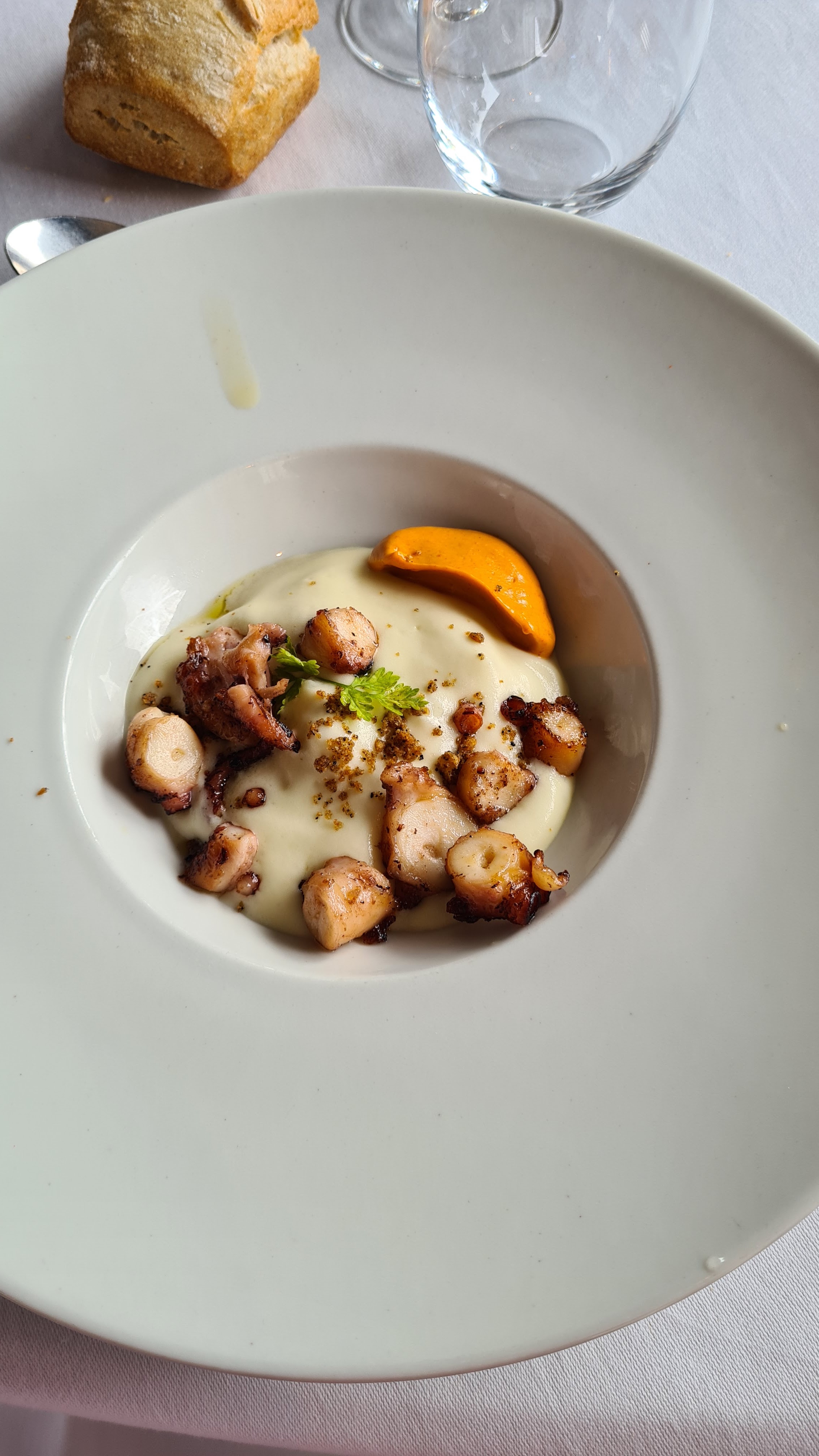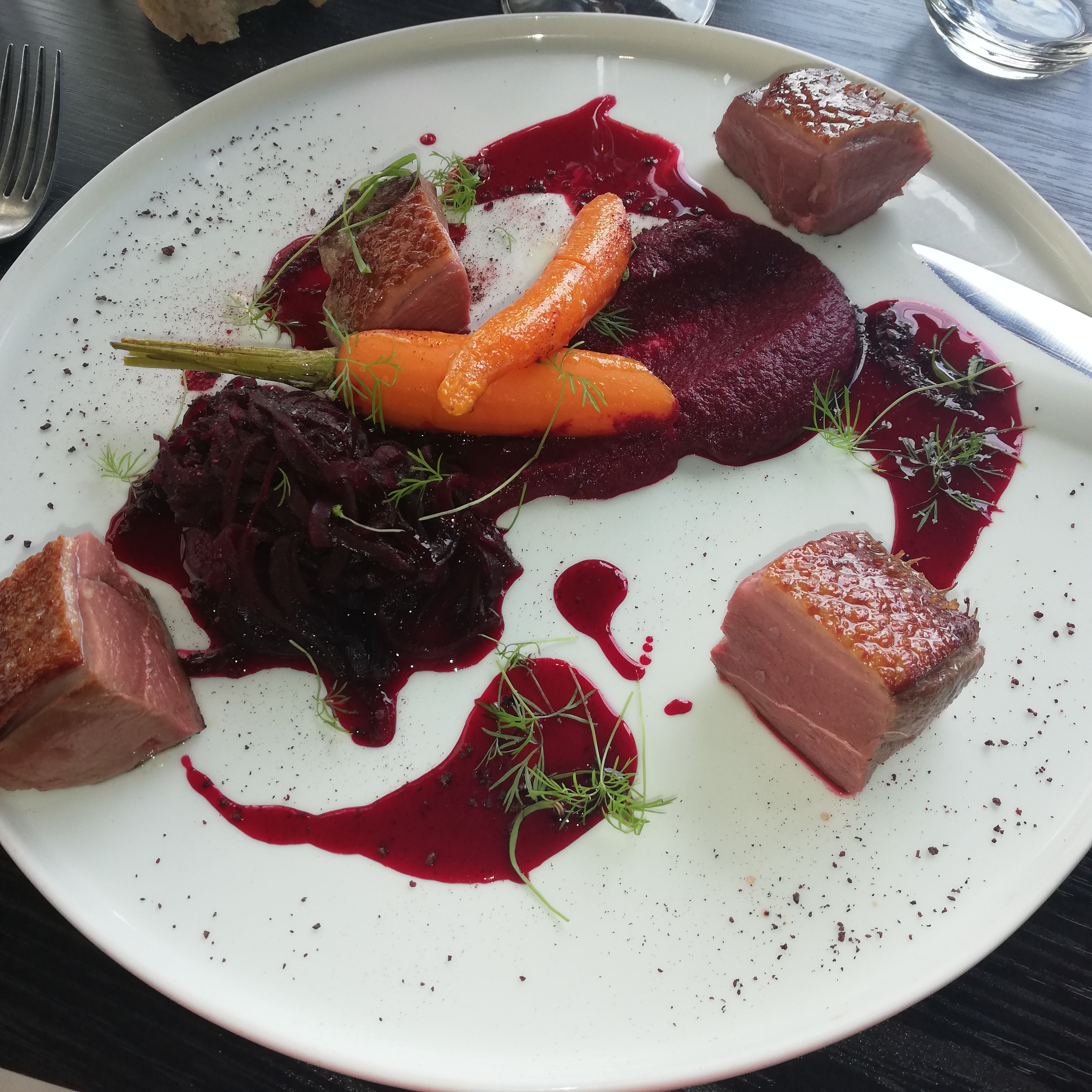 Emballée par l'entrée et le dessert. Le plat principal bien que parfaitement exécuté nous a moins transporté. Service rapide, parfois un peu trop 😁efficace et agréable.
