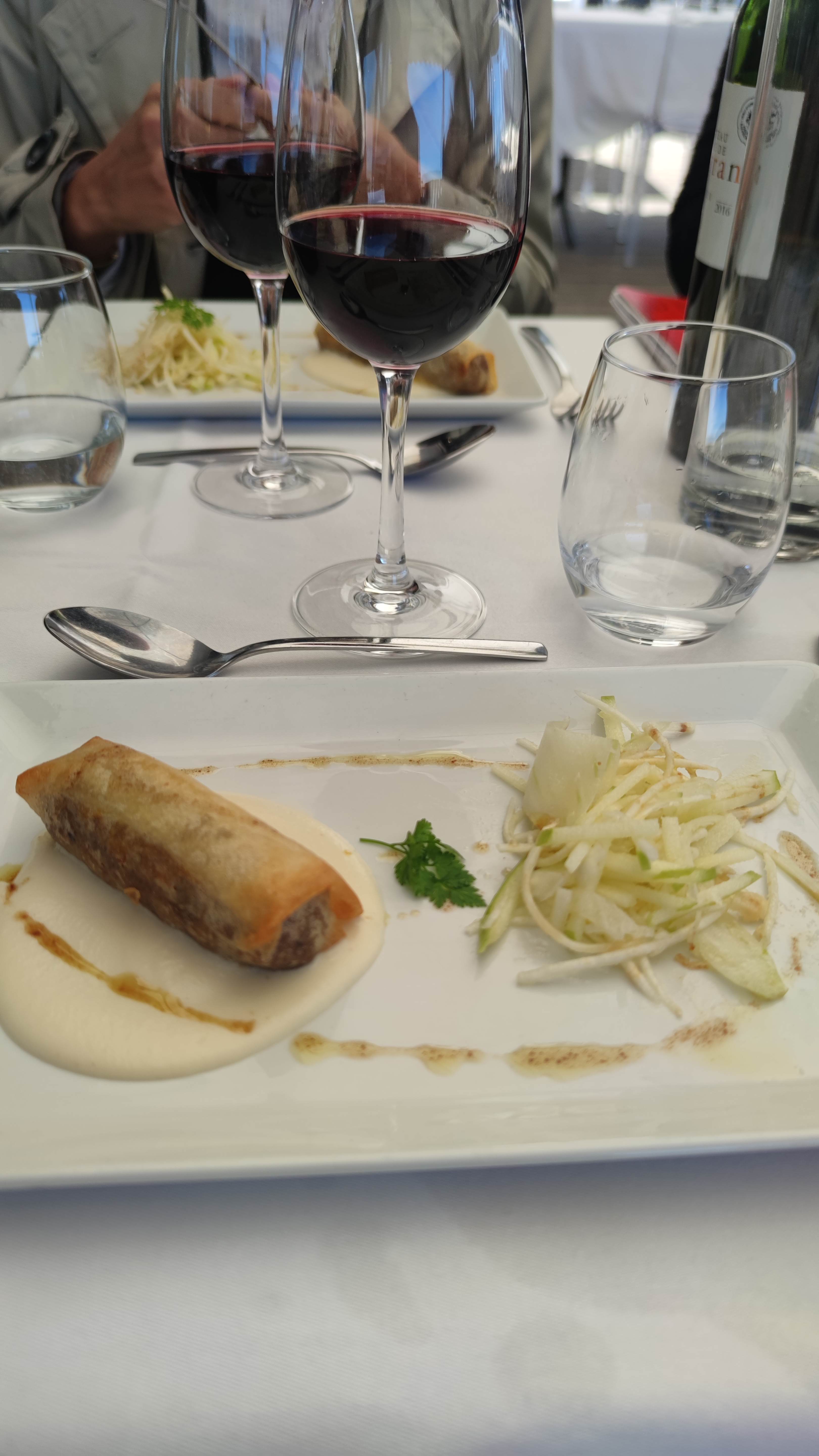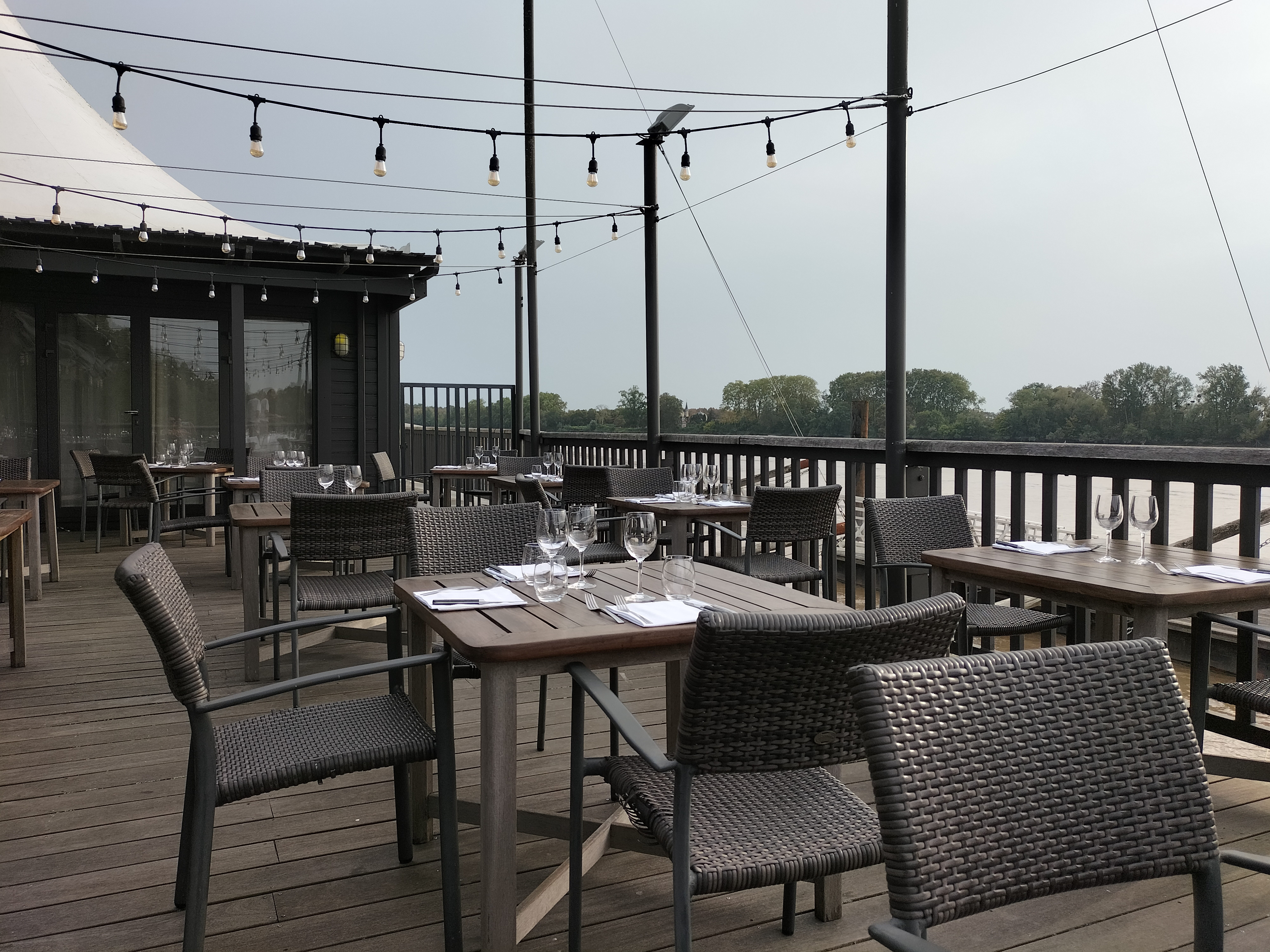 Les + : cadre très chouette avec terrasse sur la Garonne. Une bouffée d'air aux portes de Bordeaux. Les - : cher pour l'expérience. Rapport qualité prix décevant. De beaux plats bien présentés certes mais manque de saveurs (entrées, plats). Très bons desserts toutefois. Accueil mitigé selon le personnel. Vu les notations Google et 360 euros à 5, les attentes sont un peu plus élevées qu'un simple resto. Dommage.