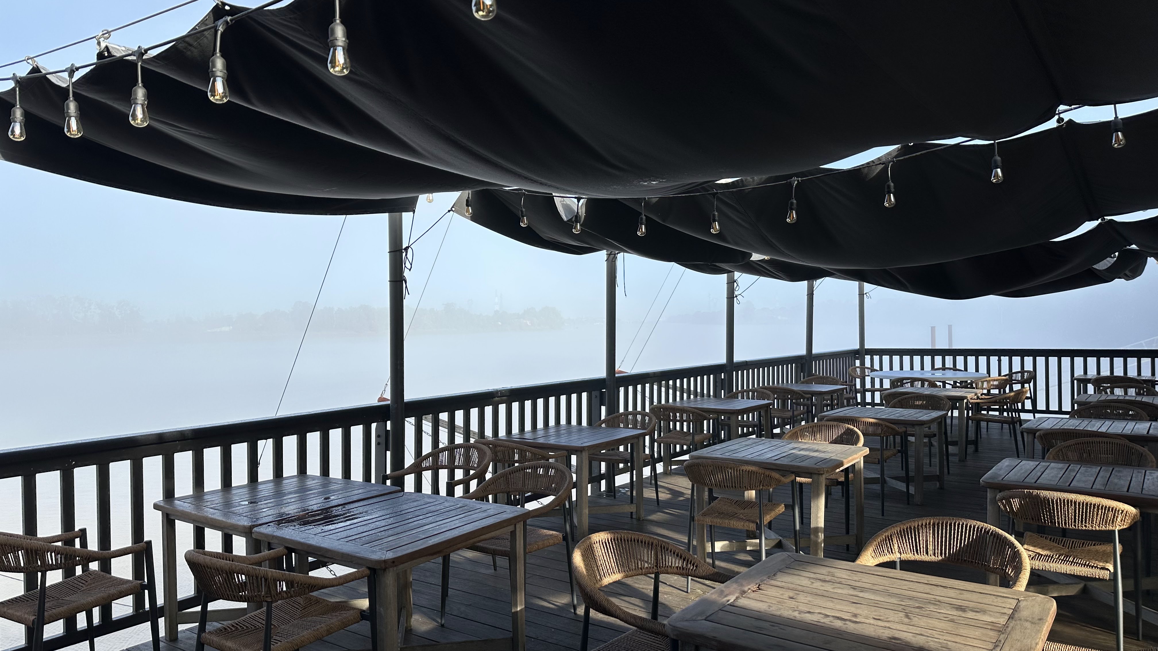 Lieu atypique et charmant. Ambiance assez chic avec différentes salles. Le plus beau étant la terrasse avec sa vue sur le fleuve. Plats savoureux et esthétiquement beaux.