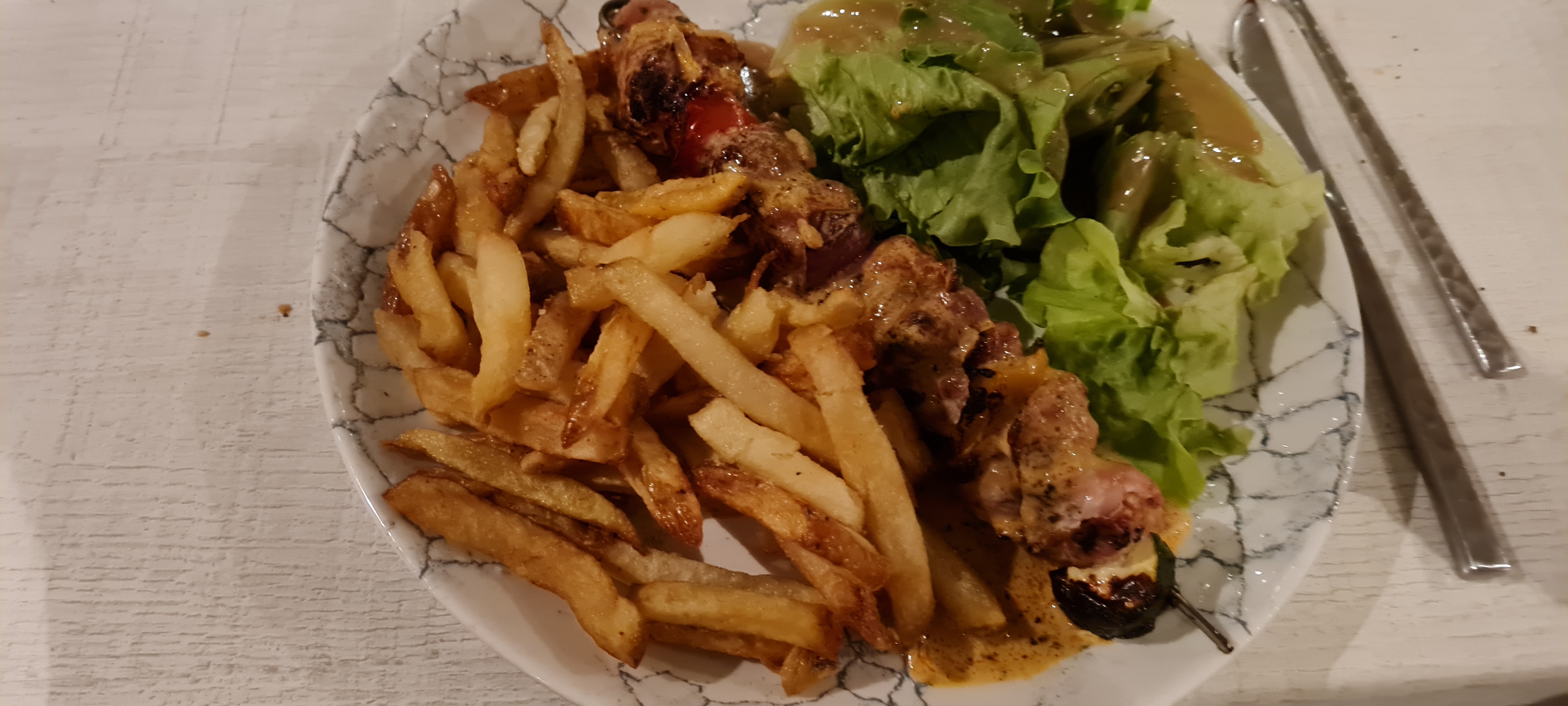 Si j'ai mis 2 étoiles c'est pour les frites de qualité médiocre que vous avez servi en accompagnement du plat. Mais rassurez-vous j'ai remarqué que dans les autres restaurants c'est pareil et je dois dire que c'est lamentable qu'on servent des frites réchauffees et grasses, sauf bien sûr si elles ne sont pas servi en accompagnement d'un plat là on vous sert de superbes belles frites bien dorées et croustillantes. Autrement pour le reste qualité prix c'était correct.