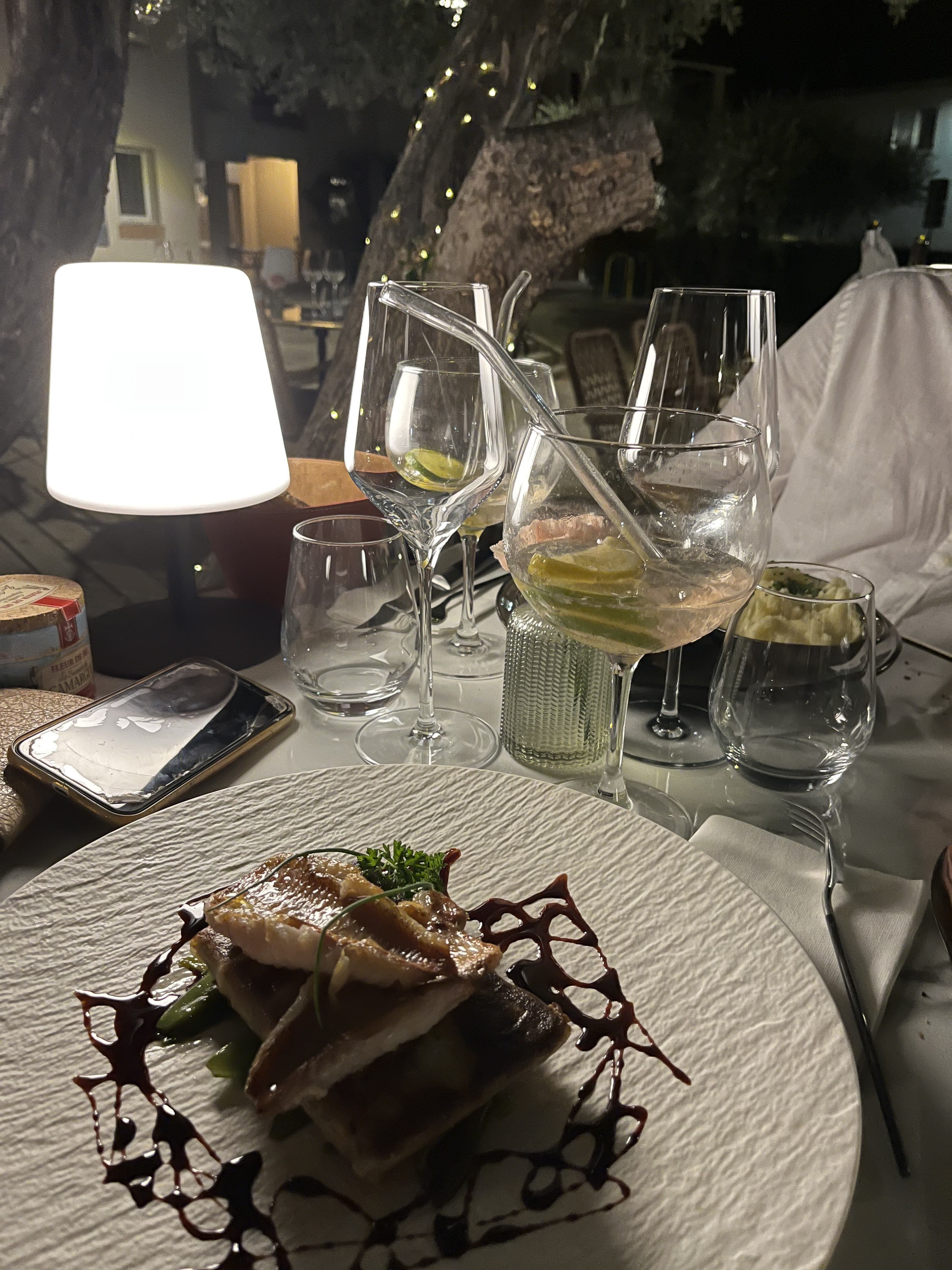 Une carte raffinée dans laquelle on retrouve des produits frais et locaux. Les plats sont originaux et les saveurs maîtrisées. L’équipe nous a offert un accueil chaleureux et des conseils personnalisés. Nous avons dîné sur la terrasse, décorée avec goût, sous un majestueux Olivier. Très belle soirée, nous reviendrons.