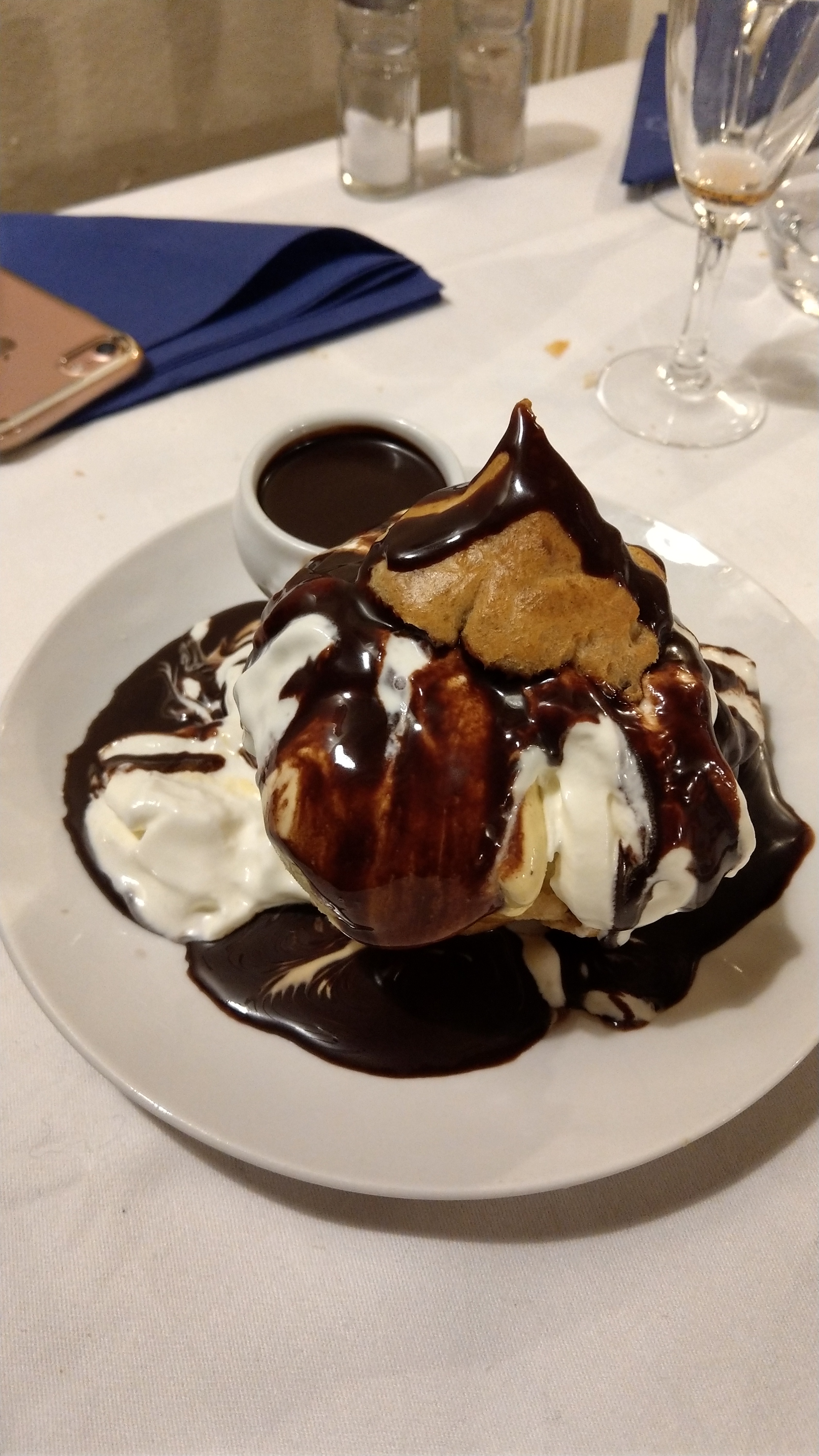 J'ai eu froid ( peu ou pas de chauffage) .N'aimant pas le fromage, j'ai pris une truite ( banale) , choux à la crème en dessert ( pâte à choux très sèche et dure, crème pâtissière sans goût) .La serveuse trop familière à mon goût