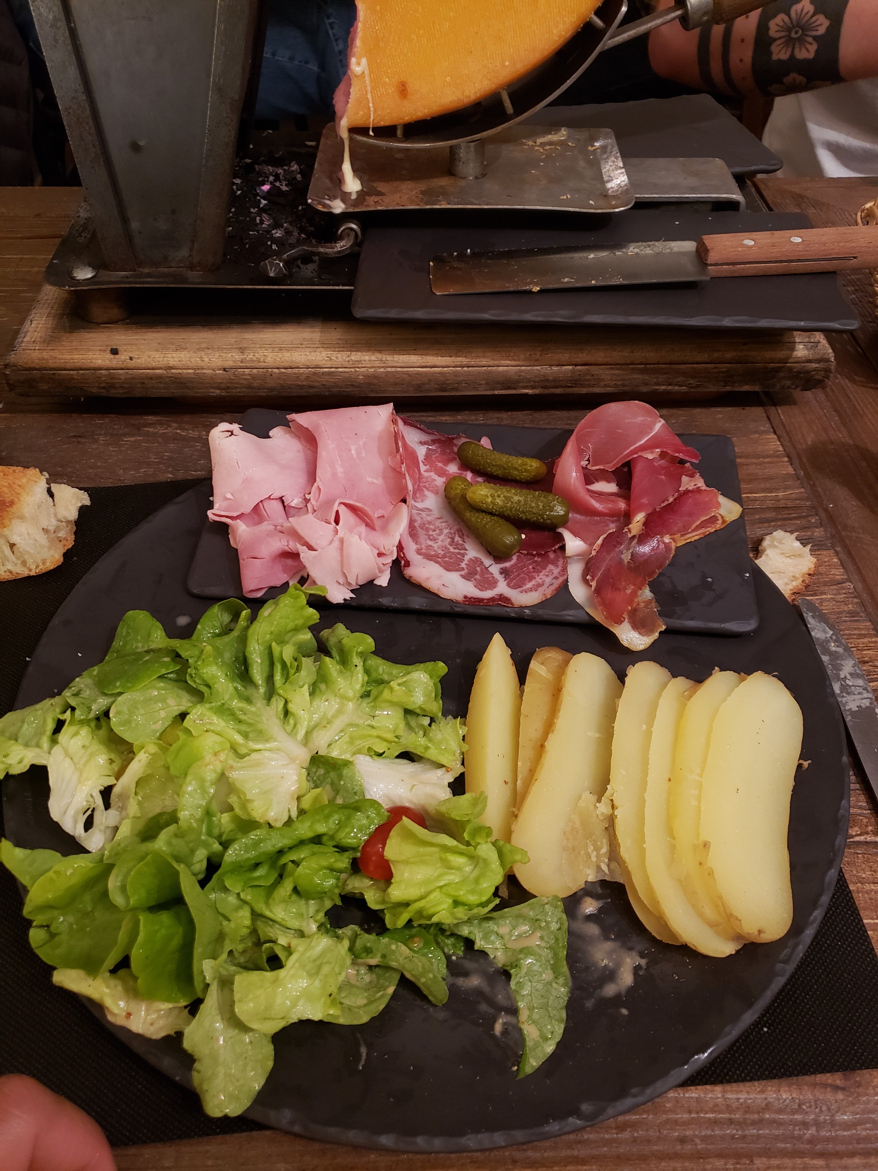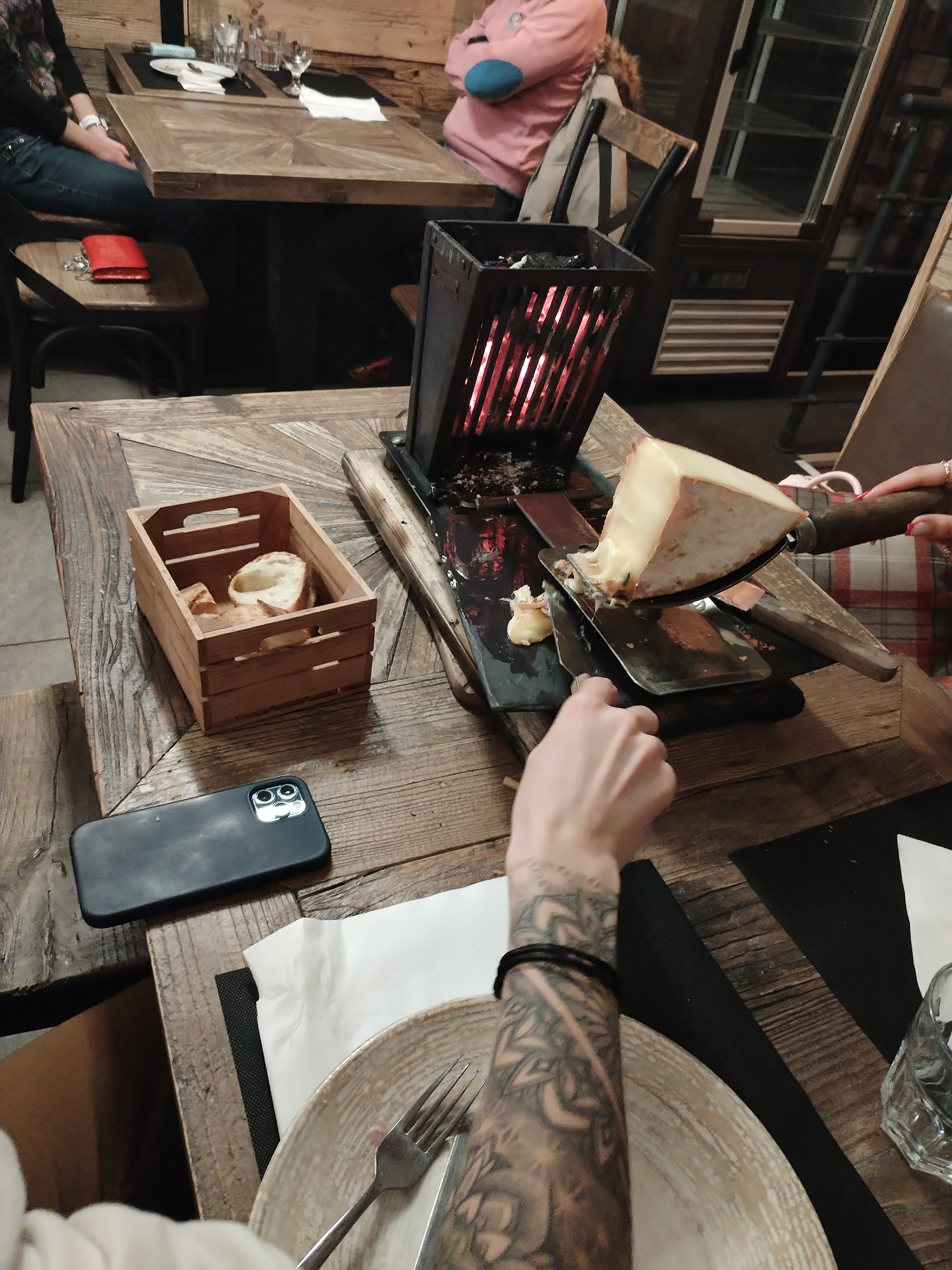Une raclette riche et délicieuse avec une technique de cuisson à la braise qui change les habitudes, à la fois ludique et convivial. Merci aussi aux serveurs très chaleureux.