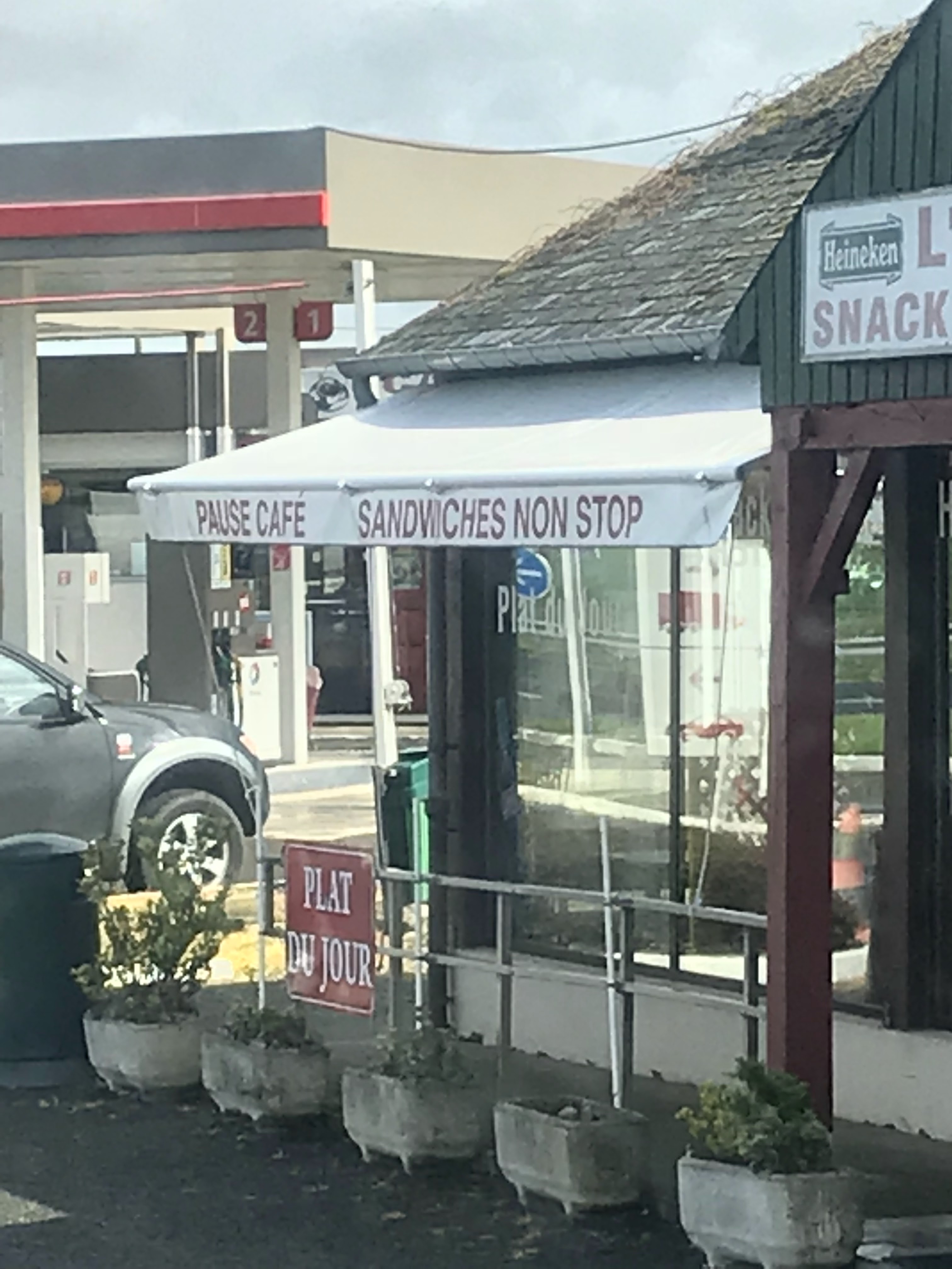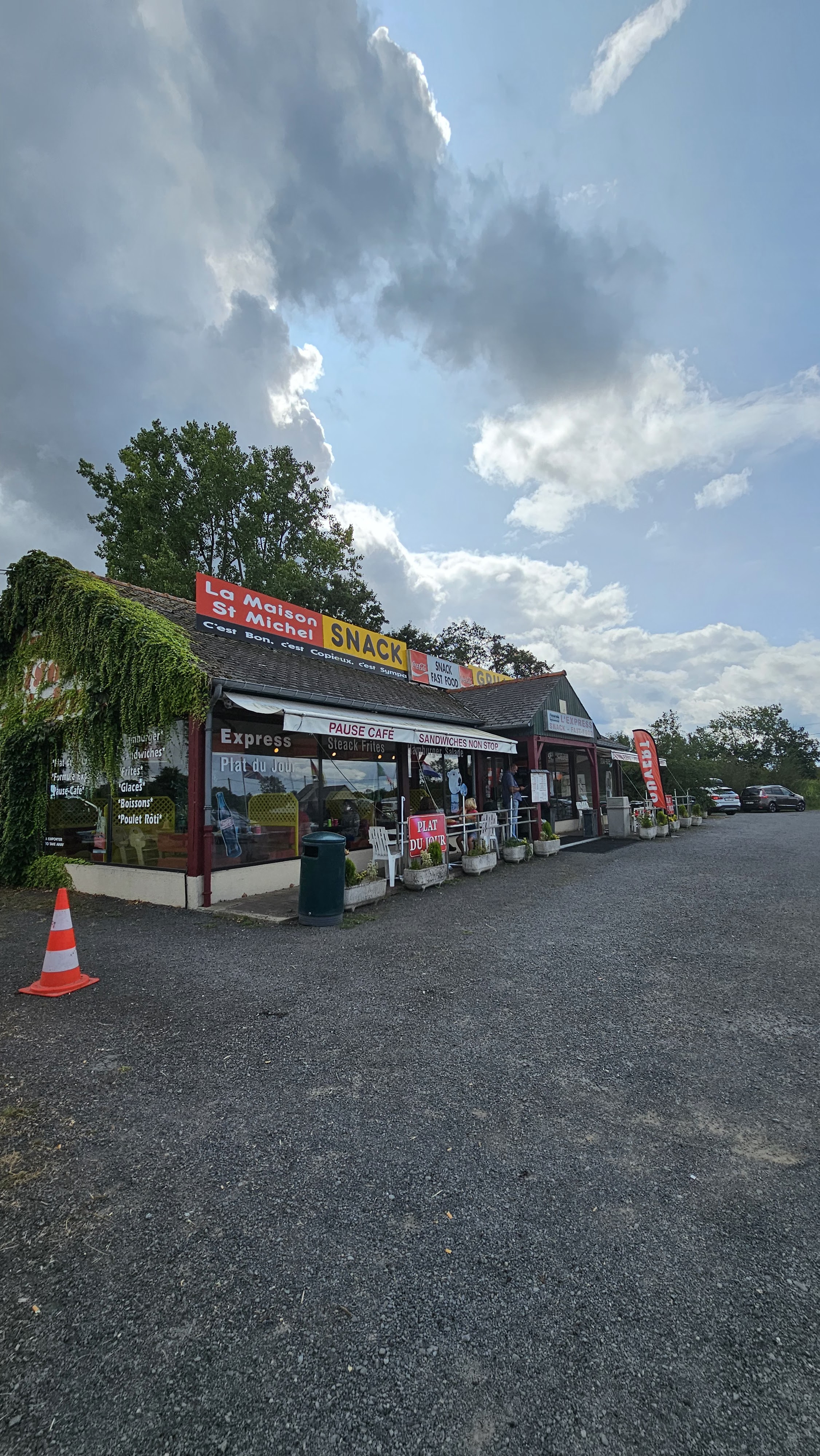 Ça deviendrait un lieu de pèlerinage sur la route pour la Bretagne. Snack rapide. Copieux et bon marché. Serveuse extrêmement agréable. Lieu atypique que l on repère de loin