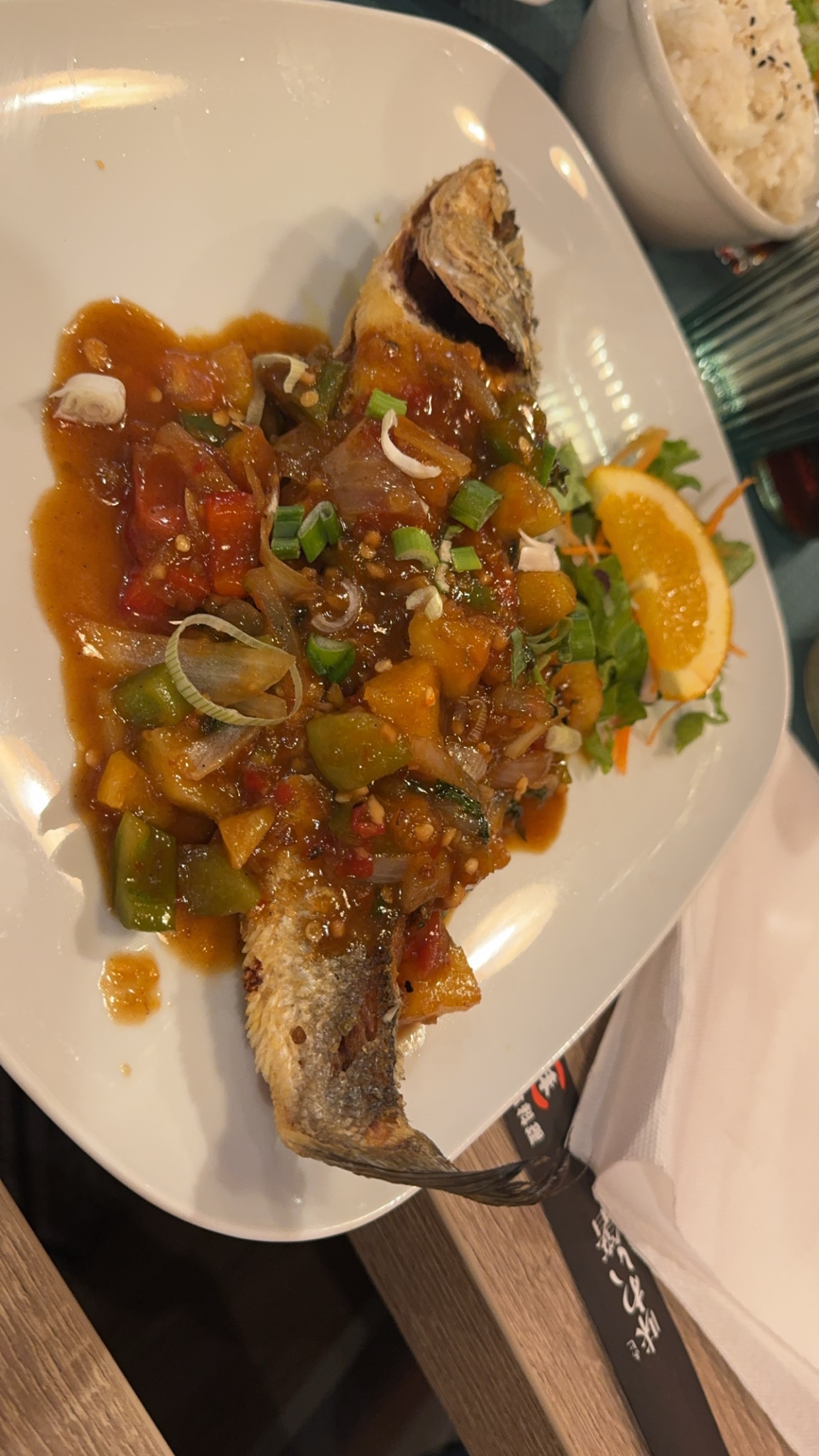 Un peu cher pour le montant mais le goût est authentiquement thaïlandais. J'ai adoré leur salade de papaye juste assez épicée et savoureuse. Malheureusement, le poisson que j'ai commandé est un peu trop petit et trop gras à mon goût. Mais le goût de la sauce sur le poisson est vraiment bon. L'entrée est un peu difficile d'accès en fauteuil roulant ou en poussette.