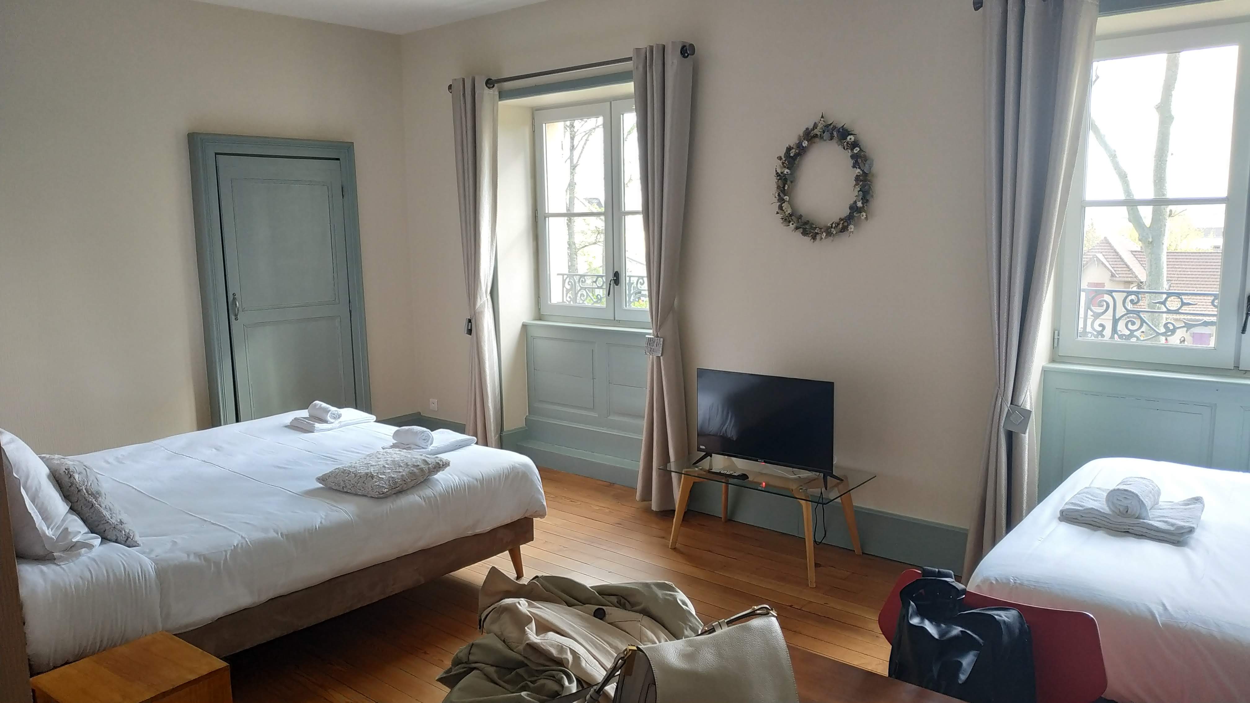 Selon les commentaires sur Booking par d'autres personnes, venir ici nous allions dans un établissement différent et confortable ! Nous vous le confirmons. Cette chambre, cette grande chambre et ce lit si grand est un régal pour passer du temps dans ce beau village ! A visiter SVP. La salle de bains est moderne (nous avions la chambre 11) au 1 er étage avec ascenseur. A l'étage 2 il y a des salles communes que nous n'avons pas eue le temps de visiter ! mais nous pensons que c'est vraiment bien, vu le style . Nous vous conseillons vivement cette établissement un peu différent, vous allez aimer nous en sommes sur. Un grand merci pour l’accueil et le petit déjeuné. C'est très confortable en tout ! il y a un restaurant dans le village LE OVALE : excellent et très bonne viande Charolaise pour finir vous pouvez arriver dans le parking gratuit par en haut ou par en bas ! il y a de la place. Ici c'est idéal pour rester aussi plusieurs jours, par exemple pour aller au LE PAL.