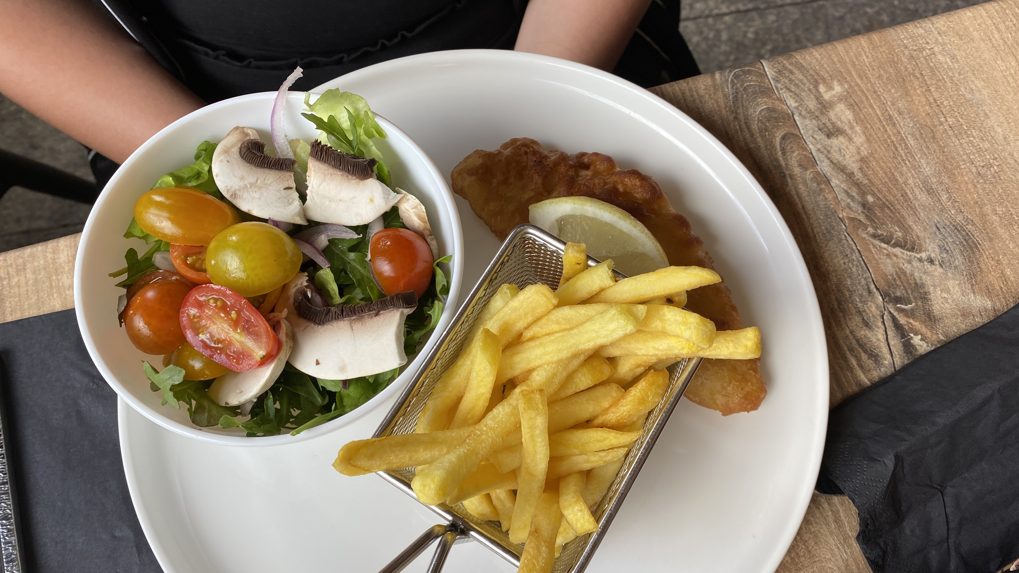 J'ai pris une petite assiette de salade melon et jambon pour 8€90, je ne m'attendais pas à de grosses quantités mais là c'était abusé ! Rien dans l'assiette à ce prix c'est honteux. 2 morceaux de pastèque, melon et charcuterie qui se baladent et 2 feuilles de salade ! Mon repas s'est constitué de pain, heureusement offert. Vraiment déçue, ne prenez pas de petite assiette. De plus la serveuse s'est presque moquée car je ne connaissais pas le munster et ai demandé de quoi étaient constituées les salades.. Mon amie qui a pris fish & chips n'a pas eu beaucoup de frites non plus. Le seul point positif est l'esthétique des assiettes. Il faut bien cacher les défauts 🙈