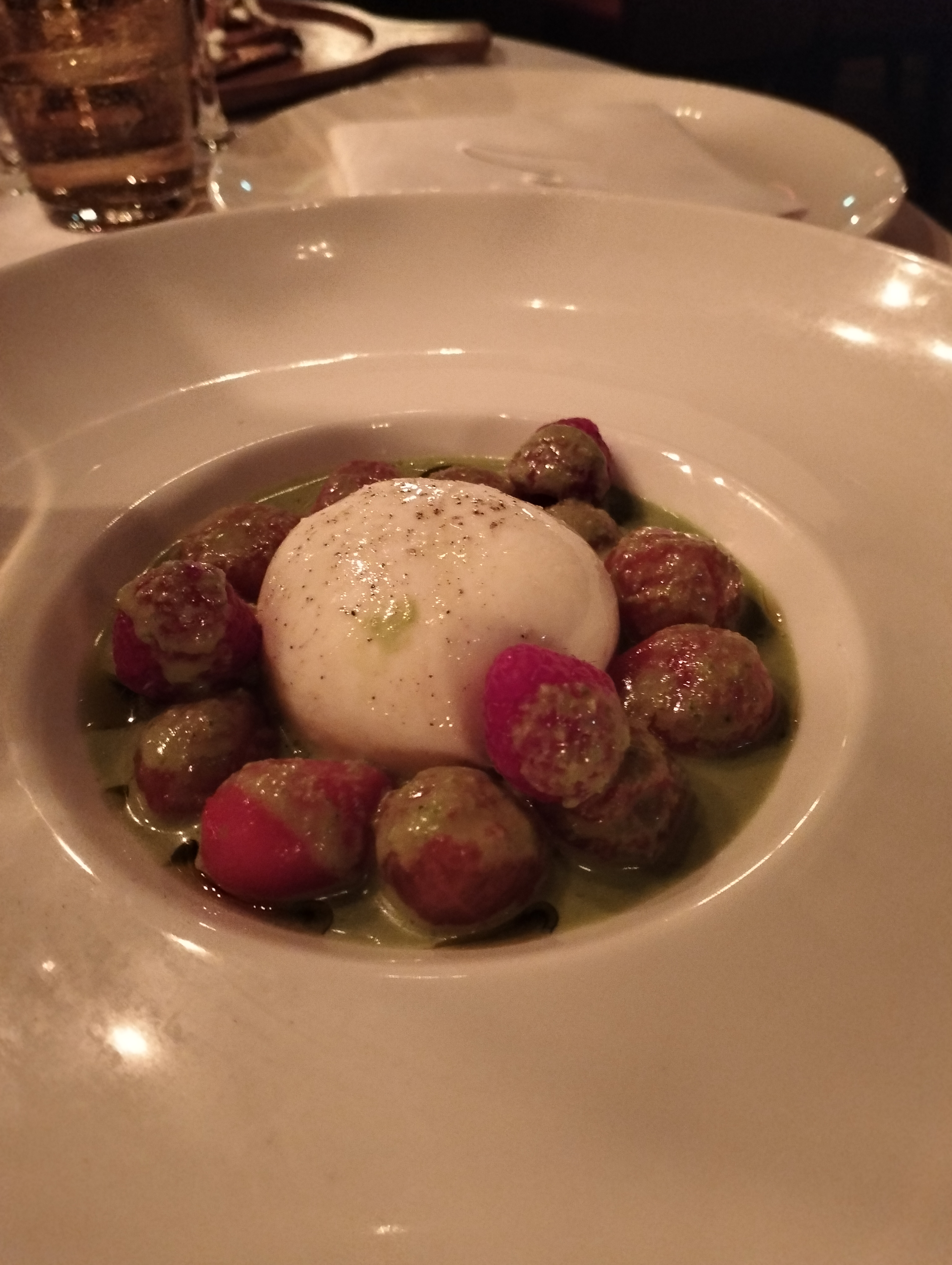 Nous avons eu une expérience horrible en célébrant Noël à cet endroit. La nourriture était vraiment décevante, des entrées de qualité supermarché à un prix insensé nous sont servies avant même que le vin n'arrive à table. Sans oublier que nous avons dû renvoyer le vin deux fois (!!!) avant de le boire. L'espace était rempli de monde, ce qui signifiait que nous devions constamment nous déplacer autour de la table et être frappés par les voisins. Les serveurs versaient du vin dans des verres à eau. Je n'avais jamais reçu un service aussi médiocre pour une telle somme d'argent.
