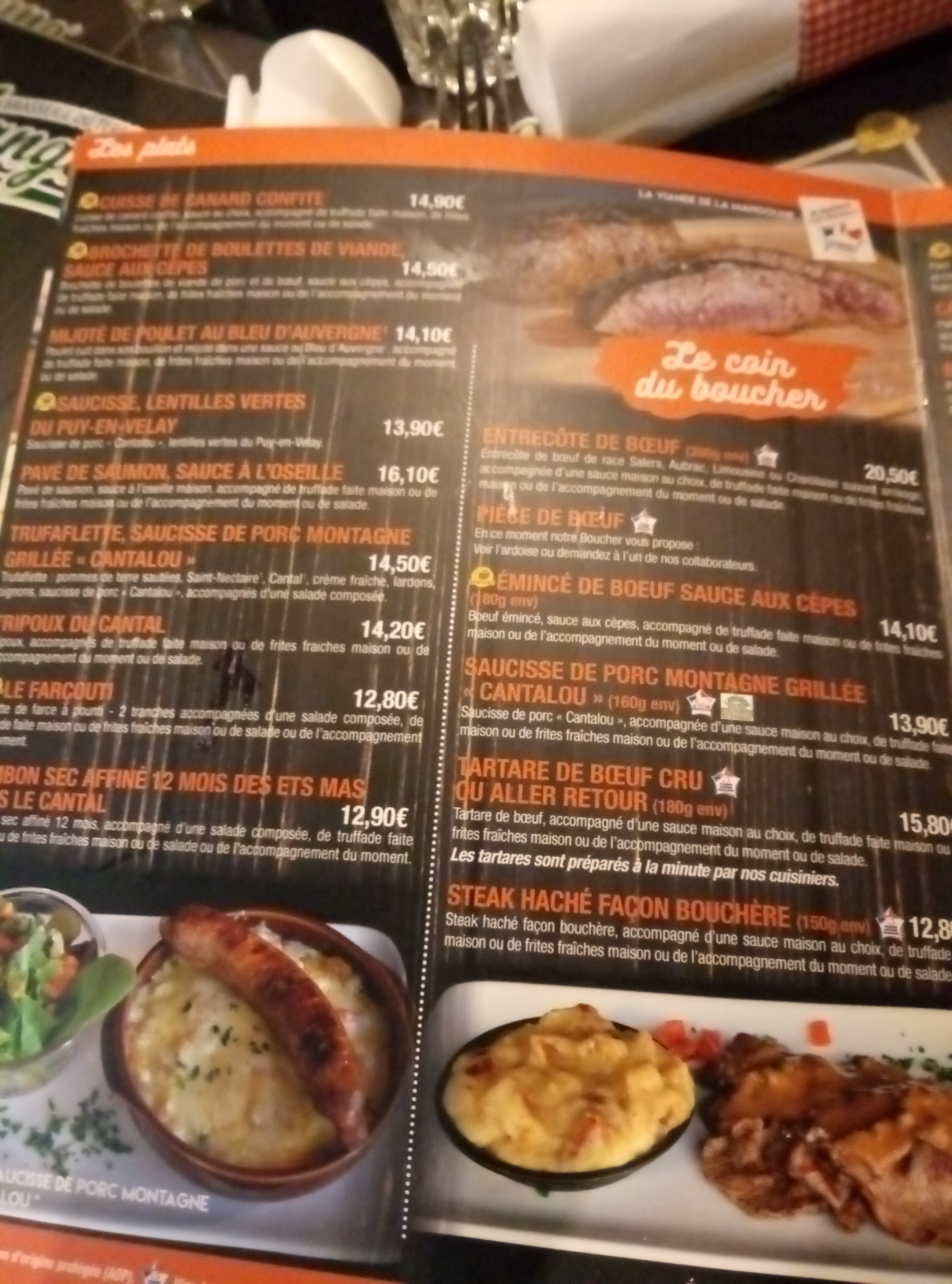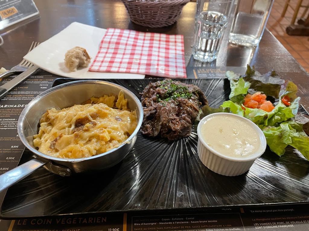 D'excellents produits du Cantal (le summum niveau charcuterie et fromages) très bien préparés, dans un cadre super sympa et avec un excellent accueil, le tout pour un tarif plus que raisonnable. Que demander de mieux ? Mention spéciale pour la viande de Salers, fabuleuse et parfaitement cuite.