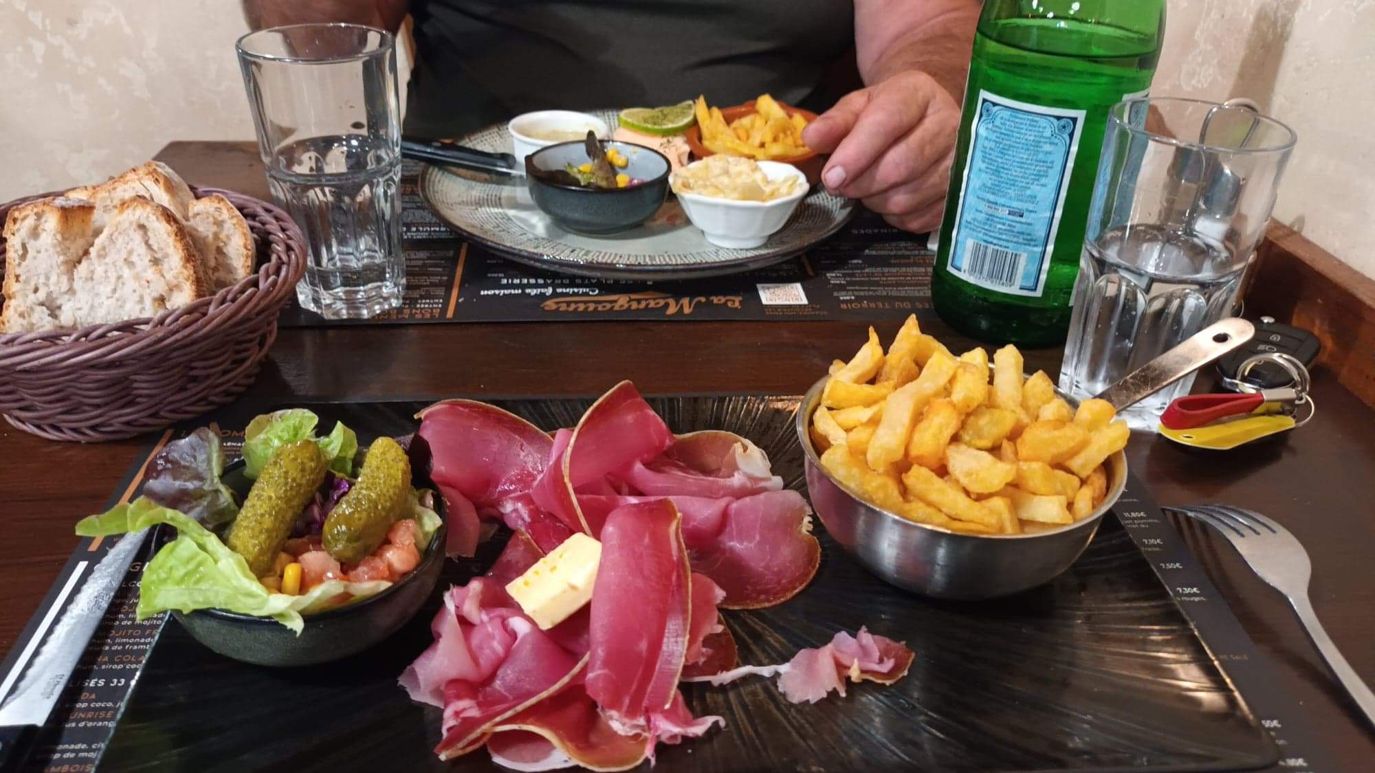 Très bien, petit jarret mais très bonnes frites maison. Une décoration sympa en plusieurs salles, un fromage délicieux. Une service avec le sourire et pro. L'intérieur est très sympa, ne pas s'arrêter a l'aspect extérieur du restaurant. Allez y pour y découvrir les spécialités.