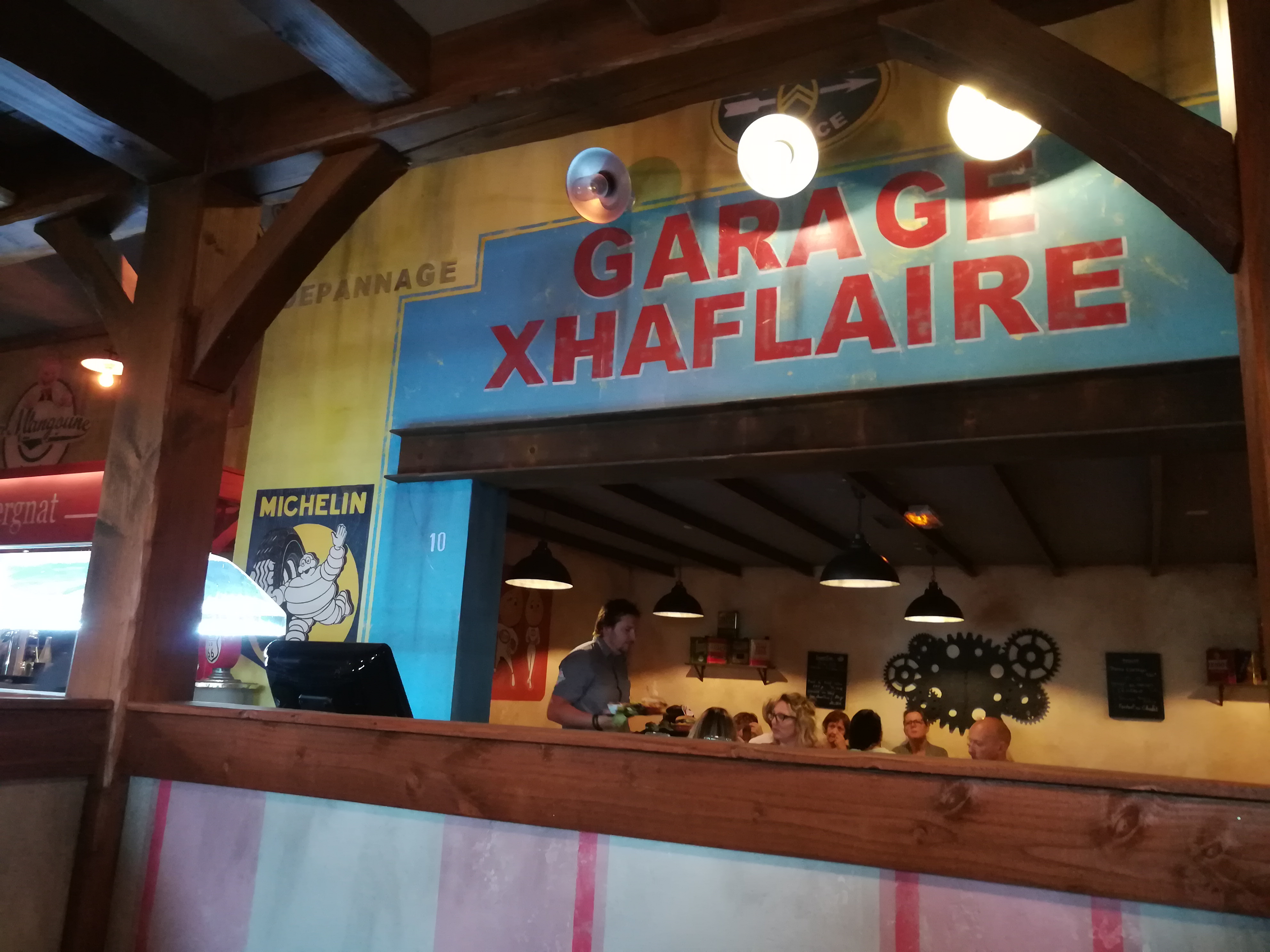 Naufragés de la route....on échoue ici ! Le cadre est vraiment top ! On découvre cette franchise franchement sympa....cela me rappelle un peu mon enfance... Pas N7...mais plutôt les autoroutes chaudes italiennes des années 70... Chacun mange à la carte ....pas decu du tout de mon andouillette...mon épouse se régale d une salade XXL !! Zero defauts... Pris par le temps on file...après une discussion avec la jolie patronne ! 😉👍