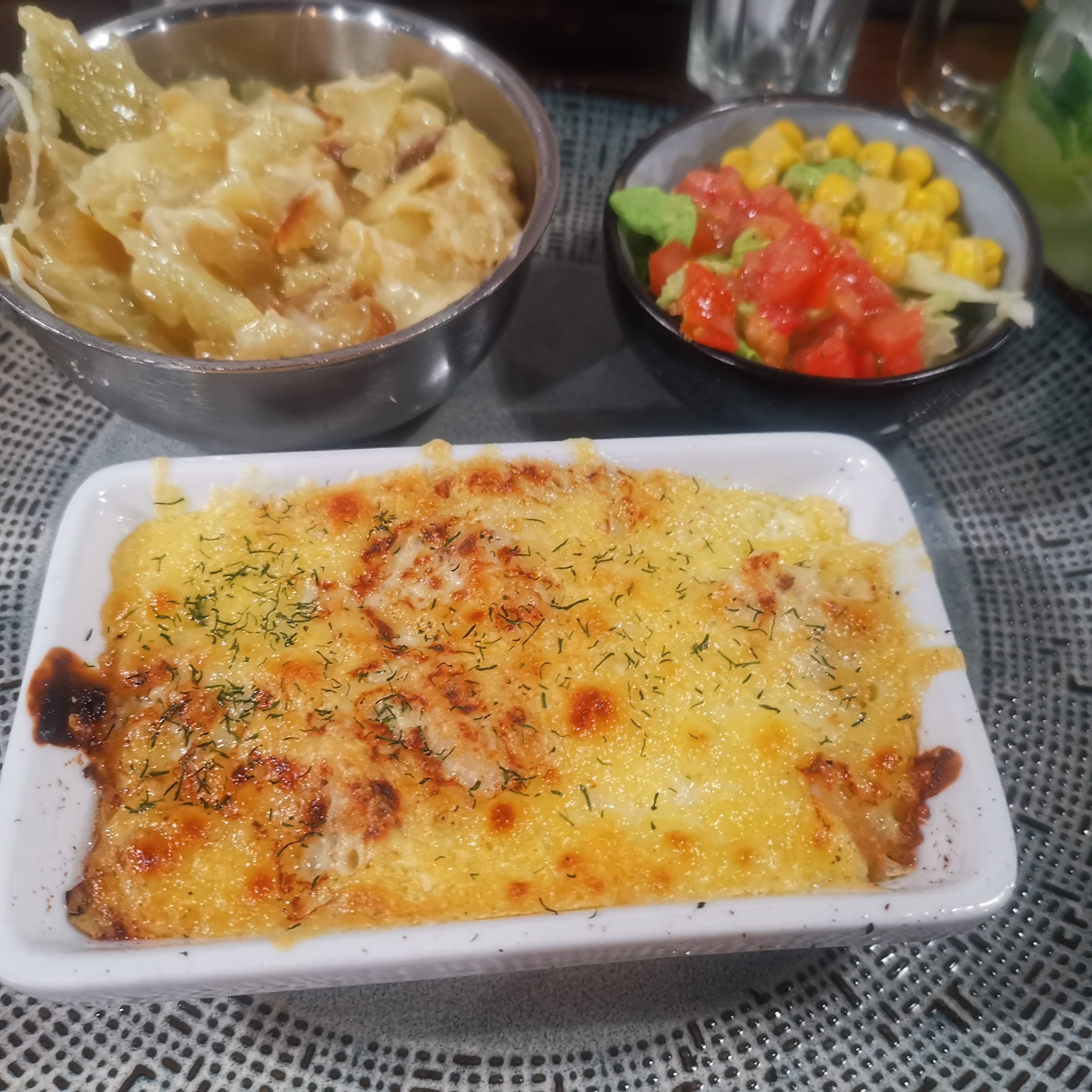 Repas relativement bon, malgré un cheveux dans une salade. Ce qui laisse à désiré est le service. Serveuse perdu avec toutes c tables, attente trop long entre chaque plat. Surtout oubli un plat d'une personne à table. Ce qui a fait que cette personne a mangé en décalé avec nous au vu de la non rapidité pour nous ramener ce plat.