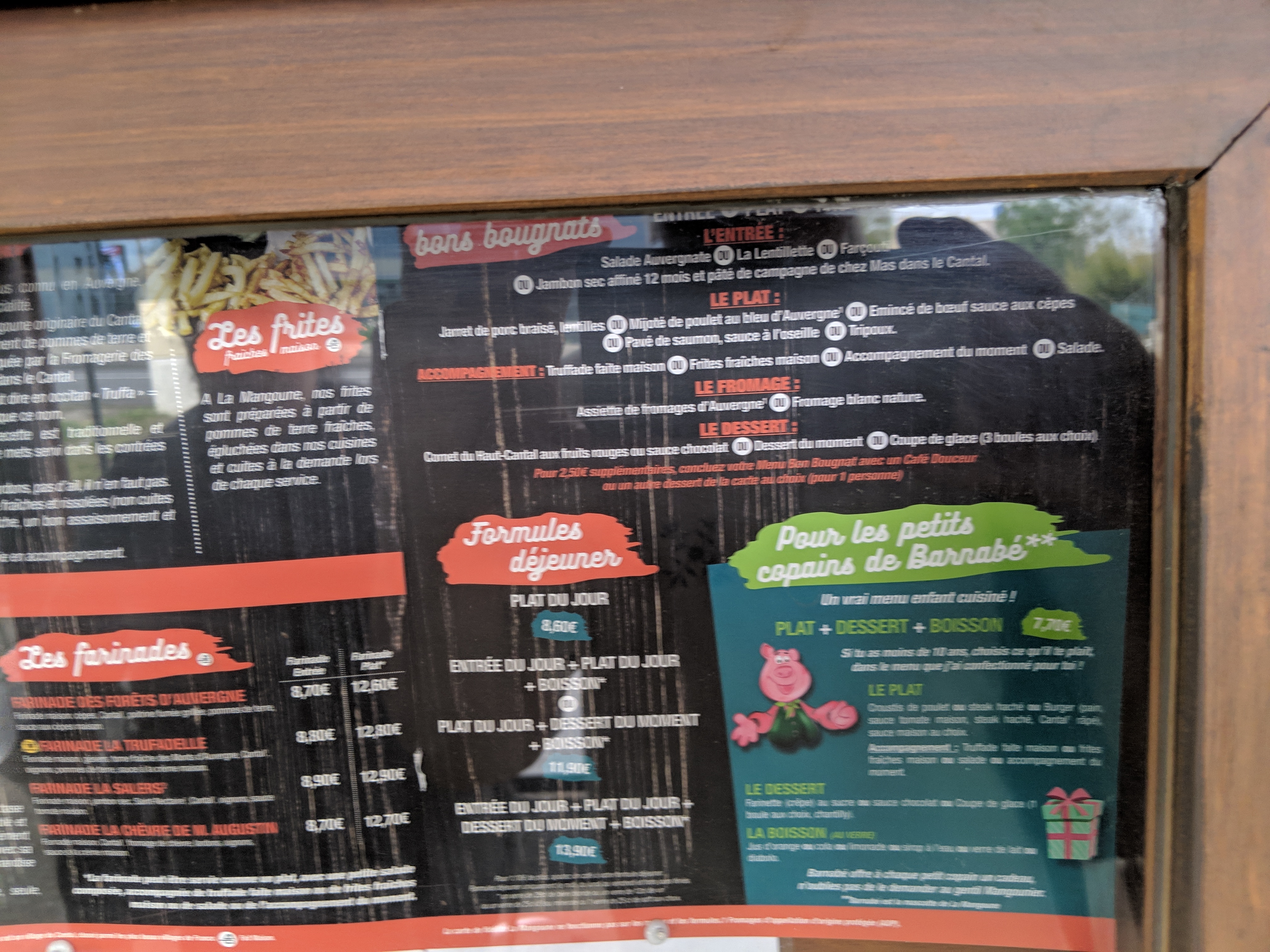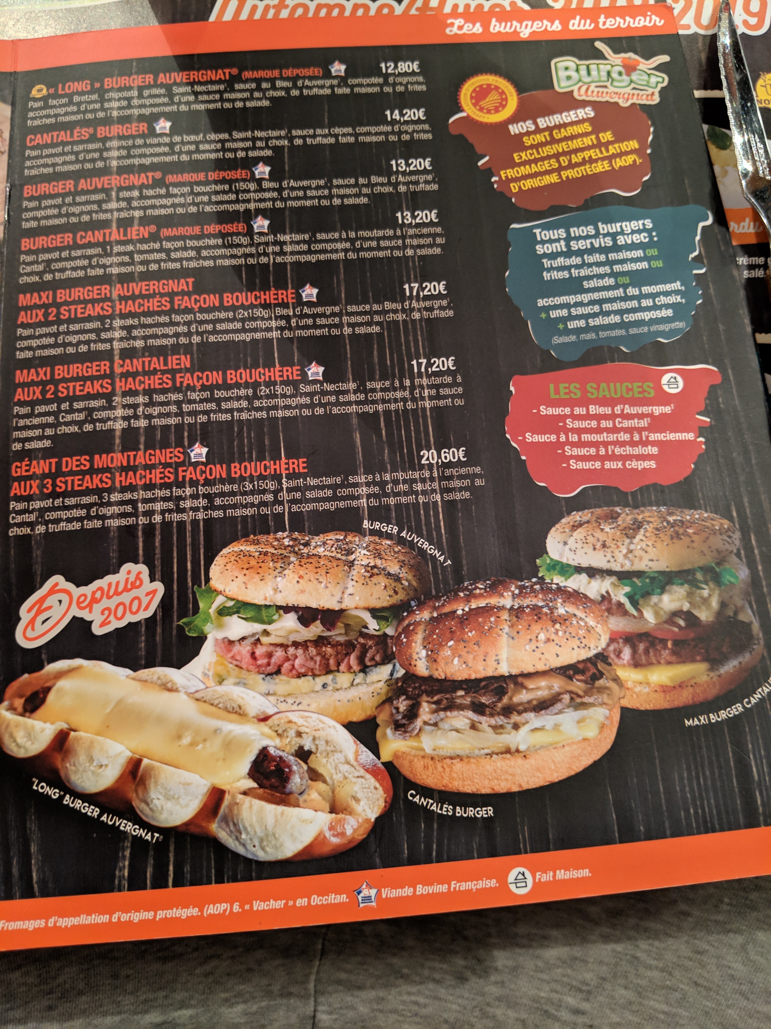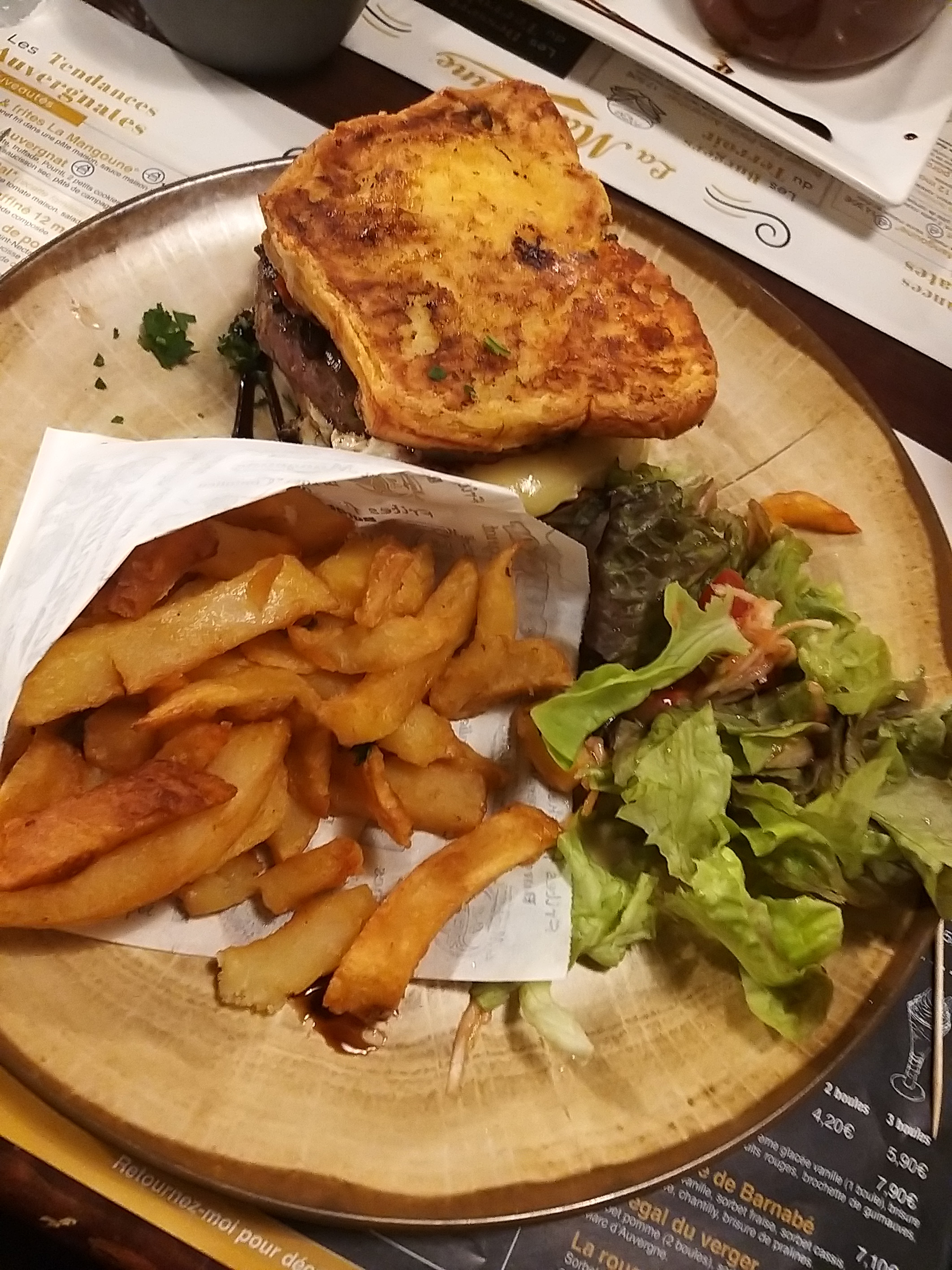 Excellent rapport qualité prix : un burger maison avec des aliments frais, des frites maison pour 12,90 (le burger Auvergnat). Avec un goût excellent, un des meilleurs burgers que j'ai pu manger (avis partagé par ma femme et ma fille qui ont pris le même burger mais avec en accompagnement une truffade, mélange 1 base aligot, pomme de terre, oignon, fromage, excellent). Mon fils a eu des filets de poulets panés, là encore de beaux morceaux de filets. Bref, on y était allé en 2017, on y est retourné en 2018 avec délice. Personnel efficace et rapide, service assez rapide. Joli restaurant, atypique et charmant.