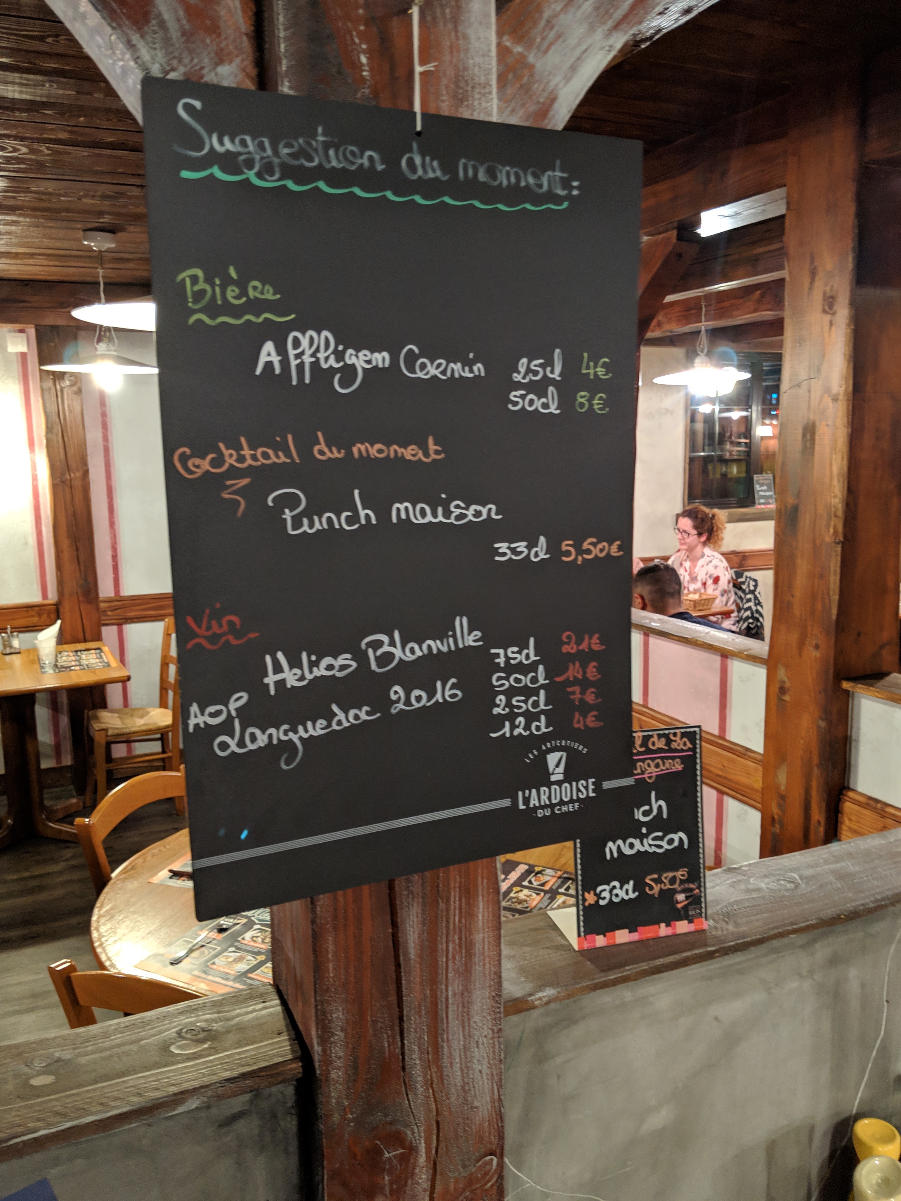 Tellement bien que nous y sommes retournés 2 soirs de suite. Carte diversifiée. Possibilité de menus midi et soir. Personnel aimable et serviable. Bon rapport qualité/ prix. Petit bémol: l'attente mais c'est normal : elles ne sont que 2 pour servir de nombreux convives. Chaque soir : il y avait pas mal de monde donc c'est un signe n'est ce pas ? Cuisine avec des produits du terroir. Bref je recommande.