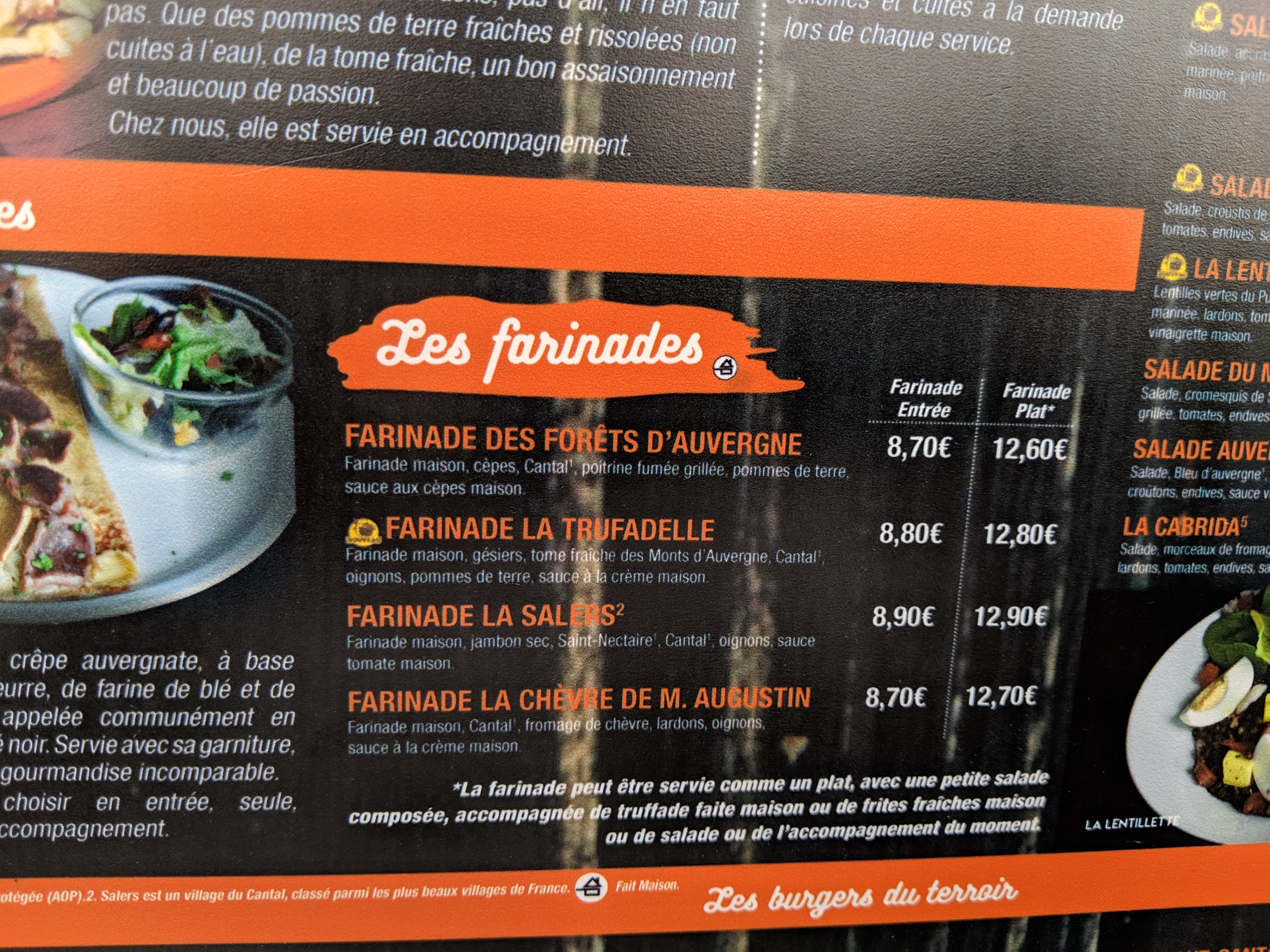 Si tu veux manger des plats locaux généreux c'est top ! Mangé une farinade fermière et le collègue truffade saucisse c'était parfait !