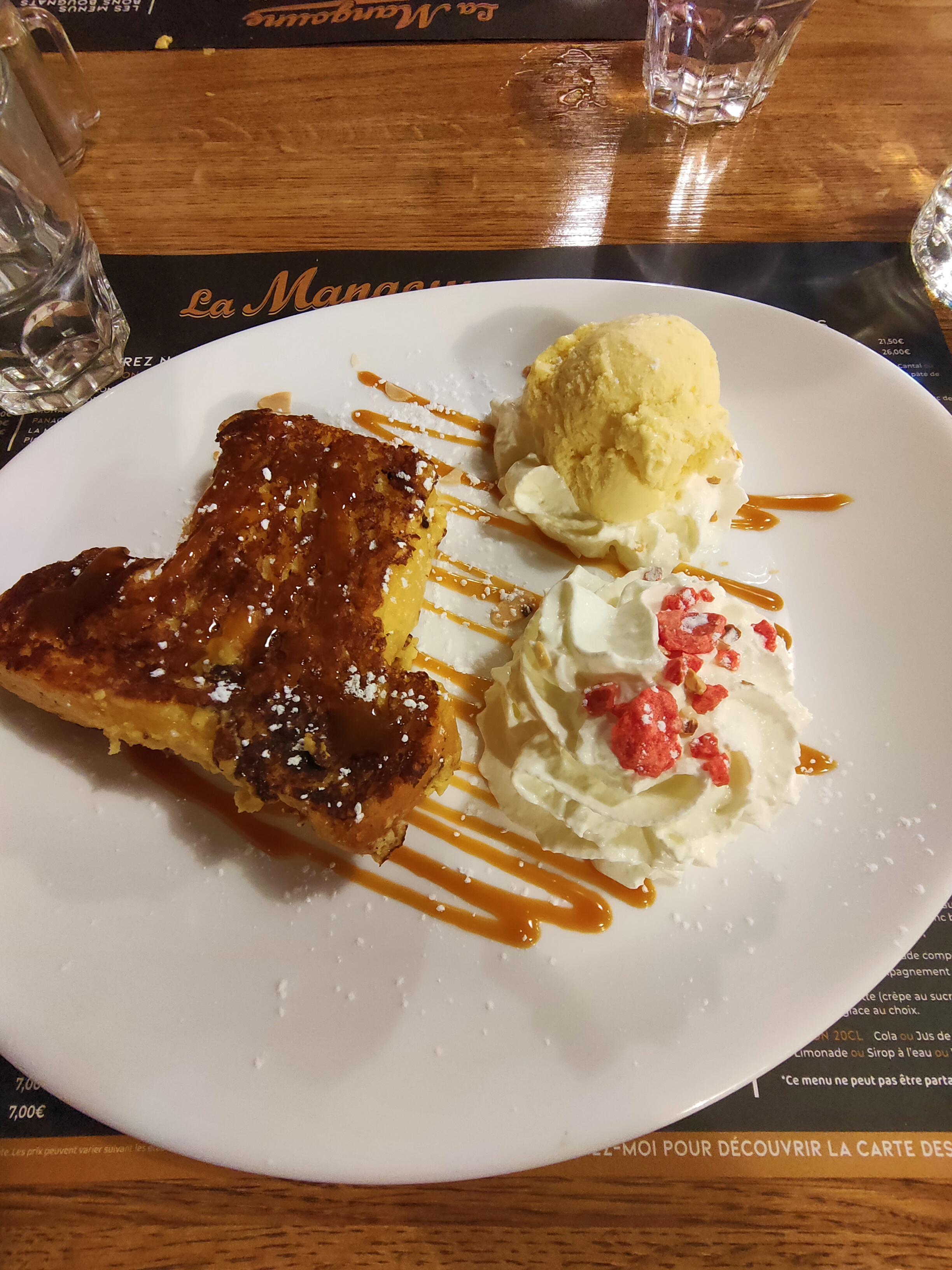 Accueil vraiment super . Serveur (se),dynamique et agréable.ambiance chaleureuse et patron au top. Dommage quon ne soit que de passage. J ai prit le burger pain perdu. Un pur régale. Je recommande vraiment ce restaurant