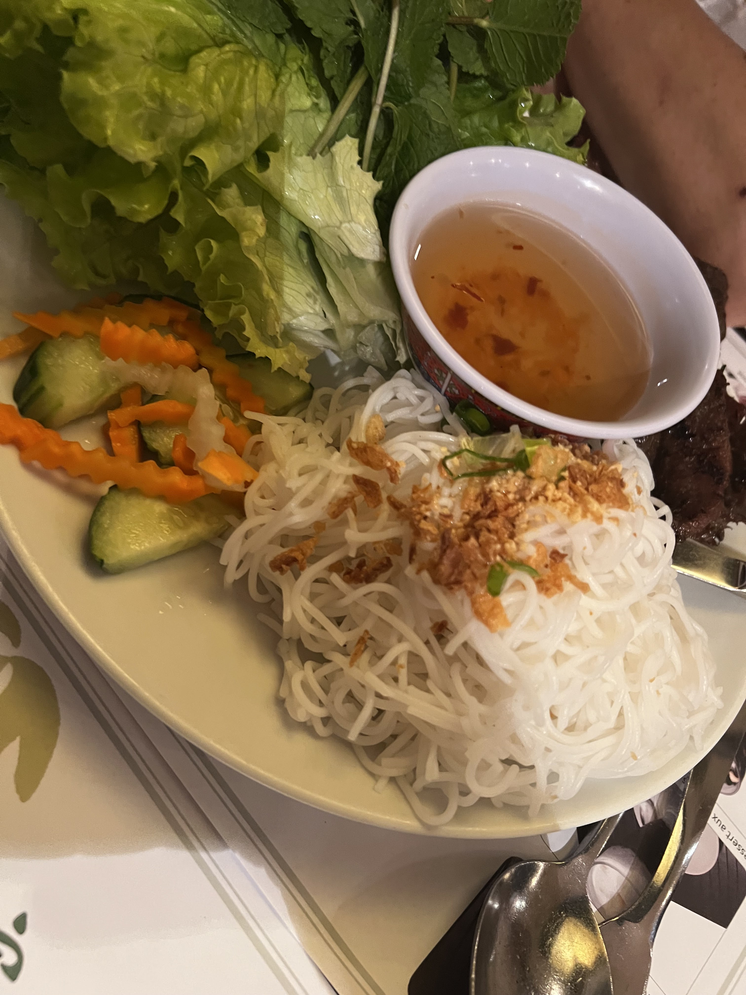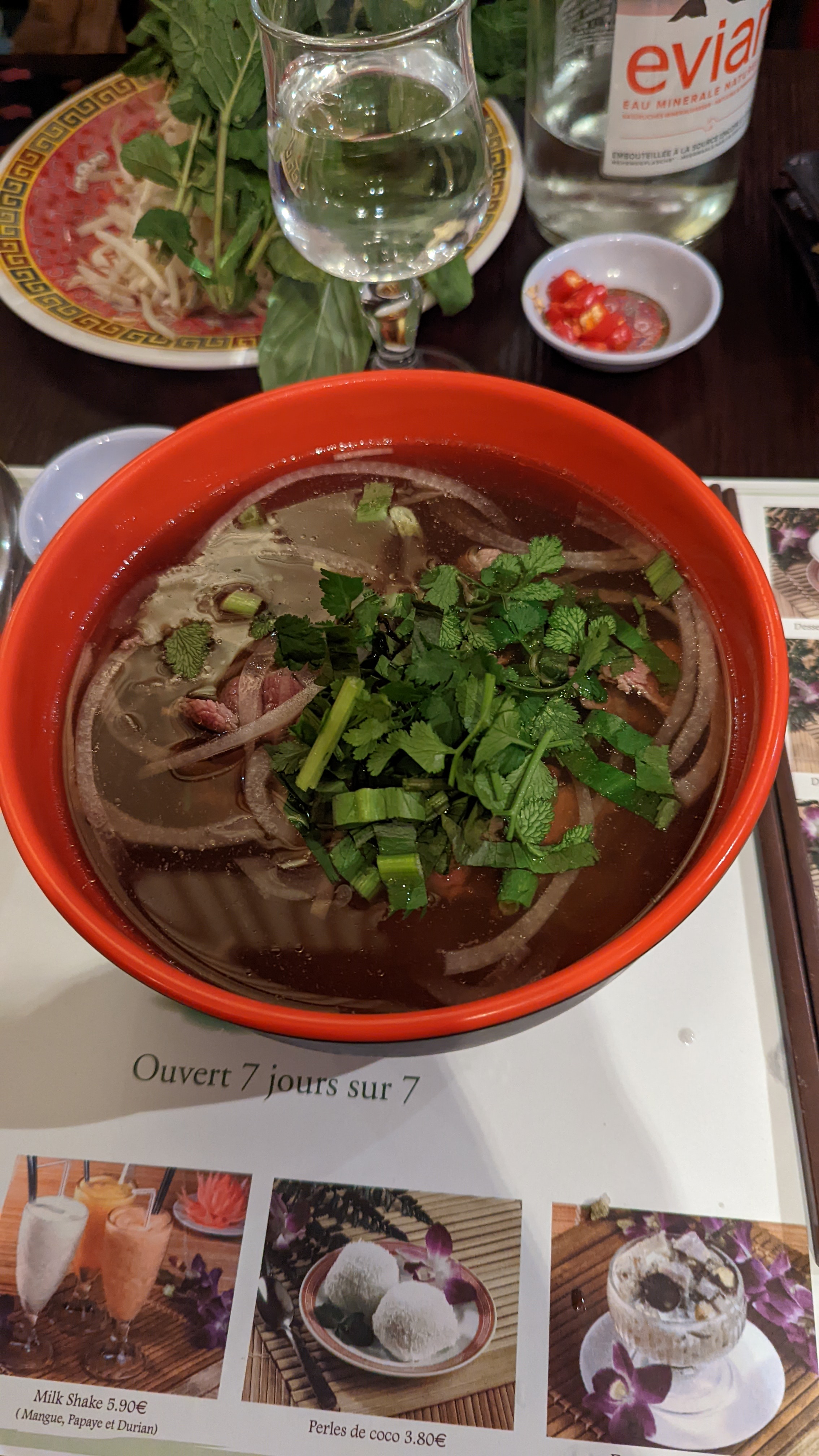 Le repas était bon. Les crevettes en entrée étaient magnifiques. Par contre j'ai trouvé Pho trop sucré. Mais en vue globale on a trouvé que cette endroit très bon adresse.