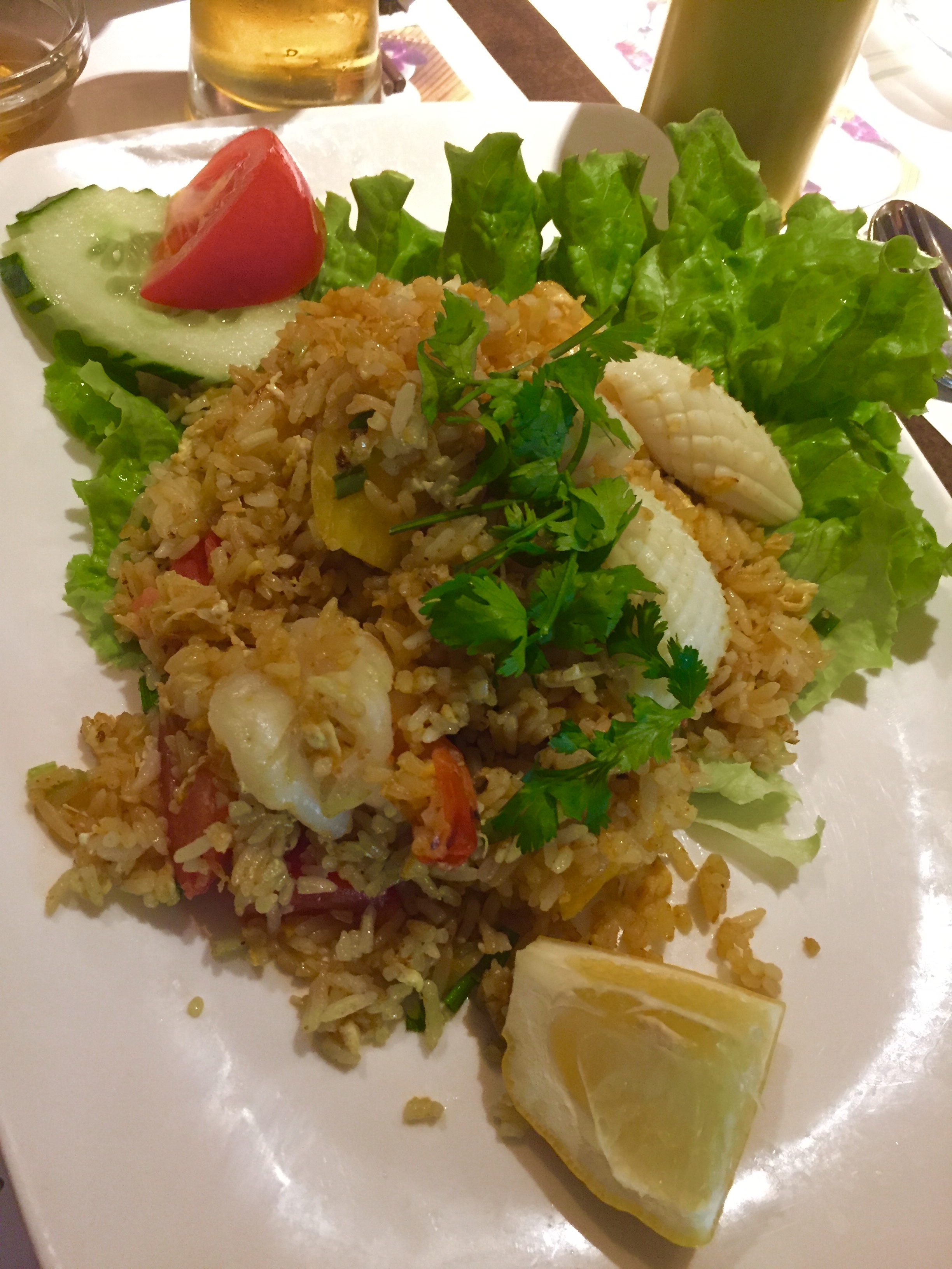 Comme je travaille pas loin d’ici, je déjeune souvent dans ce restaurant. Dans l’ensemble tout est correct mais les plats ne sont pas ceux du chef. Je vous mets une photo du riz sauté aux fruits de mers.