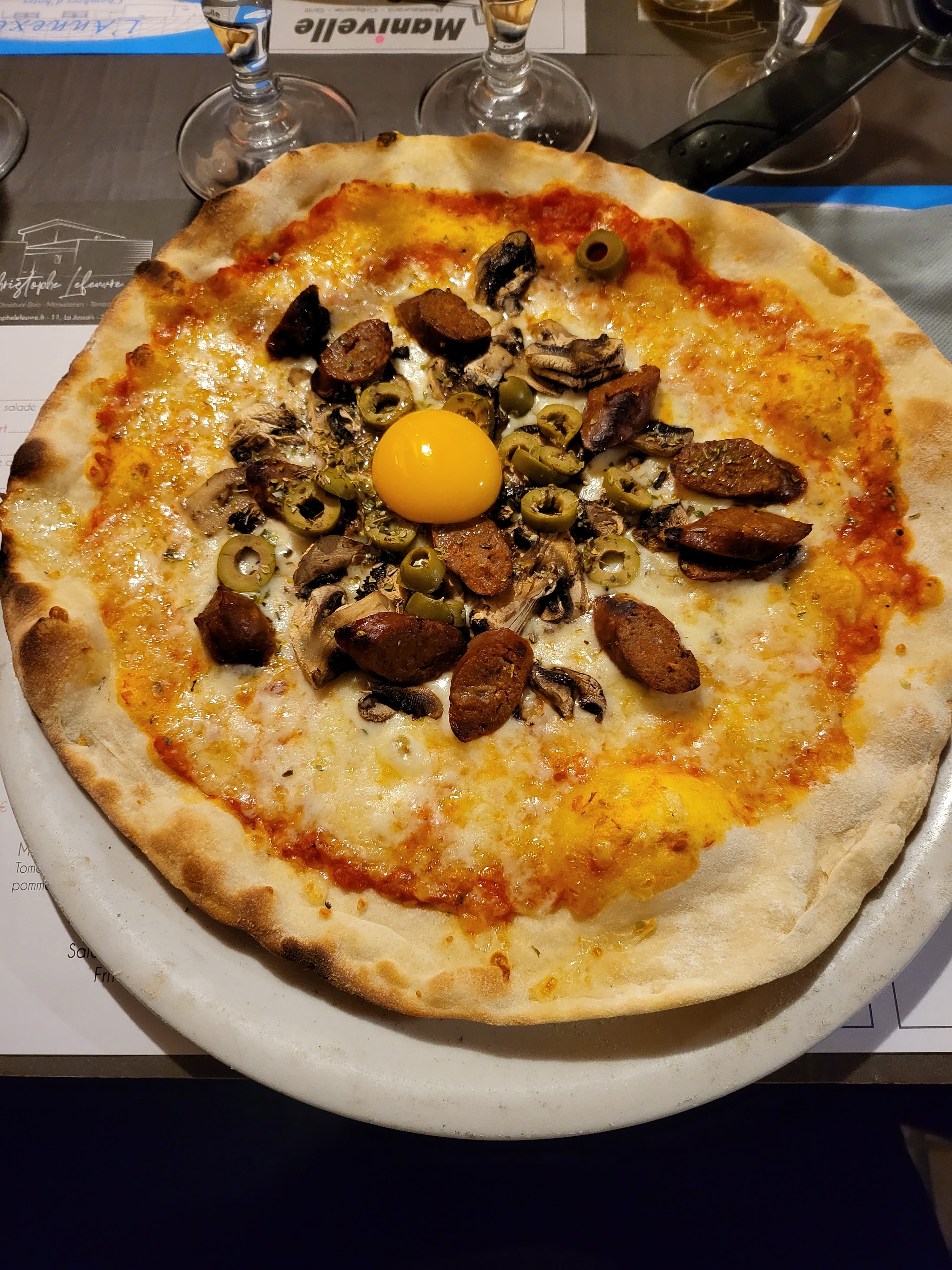 Bonjour, Je suis déçu de la pizza (la montagnarde). Pas de saveurs. Un simple jambon blanc en garniture, un fromage raclette avec très peu de goût et des pommes de terre. Des herbes rapidement étalées dessus La pâte de cette pizza était bonne. Concernant le café gourmand, c'est une petite crème dans une verrine très simple accompagnée de simple morceaux de crêpes avec un sirop d'érable. Il faut bien vérifier le ticket de caisse. Nous étions 2. 2 pizzas montagnardes (2×15€) 1 café gourmand. (6,90 €) 1 crêpe beurre salée. (6,50€) Soit 43,40 euros. Seulement attention une ligne apparaît: Crêpes 1,50 € qui ne correspond à rien donc 44,90€. Pas d'alcool. Uniquement une carafe d'eau. Soit c'est trop cher où les produits ne sont pas adaptés.