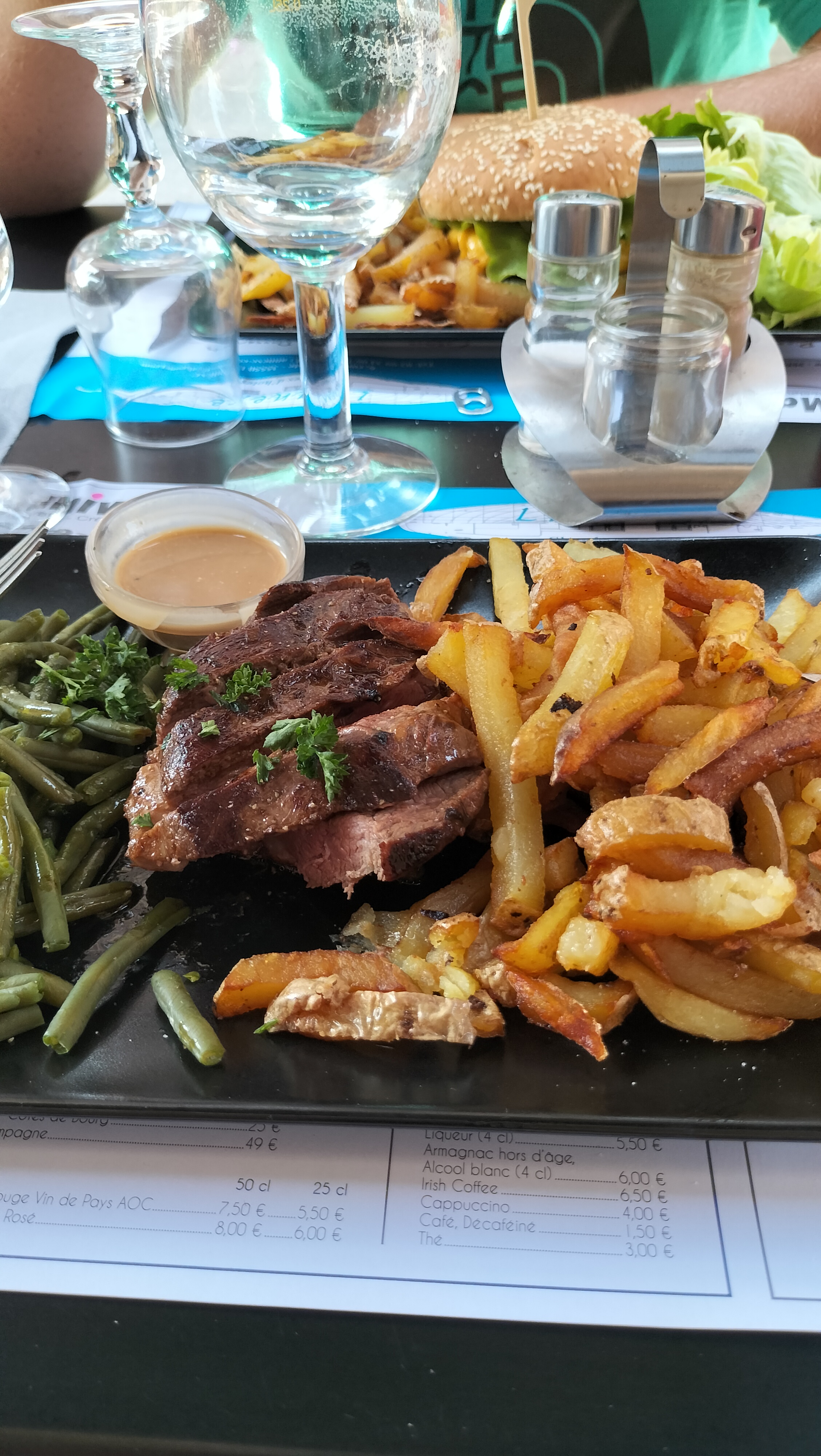 Cadre Sympa , accueil très moyen, manque de sourire des serveurs Carafe d'eau non proposée La viande très bonne mais les frites laissent à désirer peut etre réchauffées n'étaient pas bonnes