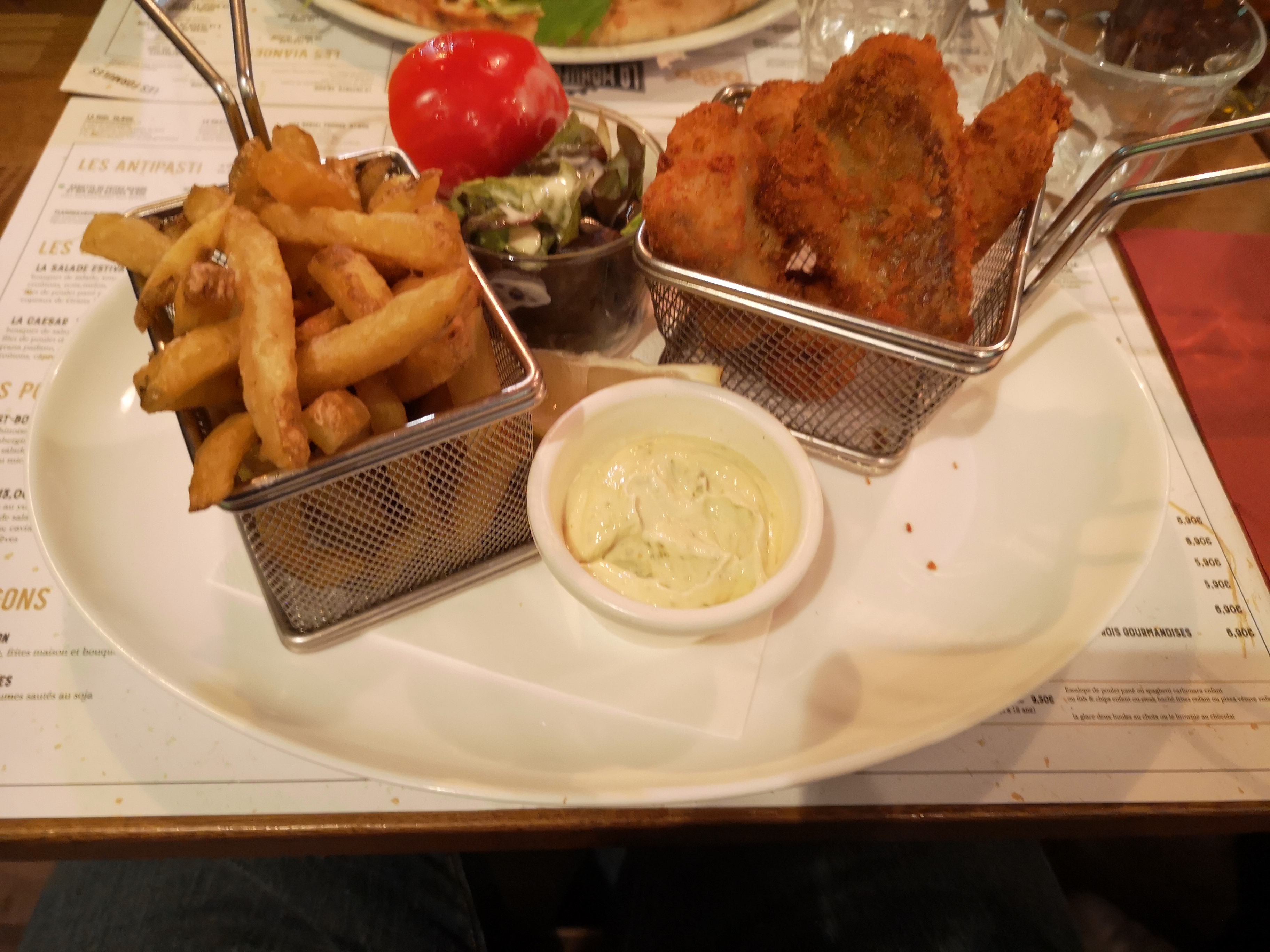 Beaucoup d’attente pour que le serveur vienne prendre ma commande, m’avait il oublié ? J’ai choisi une poutine (frite avec une sauce cheddar) et une salade César. La poutine est arrivée avec du cheddar + du Saint-Maur ou je ne sais quel autre fromage, c’est sympa quand on aime pas ça, surtout que ce n’est pas précisé sur la carte. Il faut alors trouver la solution pour manger les frites qui n’en ont pas. Pour la salade César, déçue de l’assiette et le poulet pané était trop sec. En revanche je reviendrai quand même, pour boire un verre et prendre une planche, mais ce n’est pas ici que je mangerai.