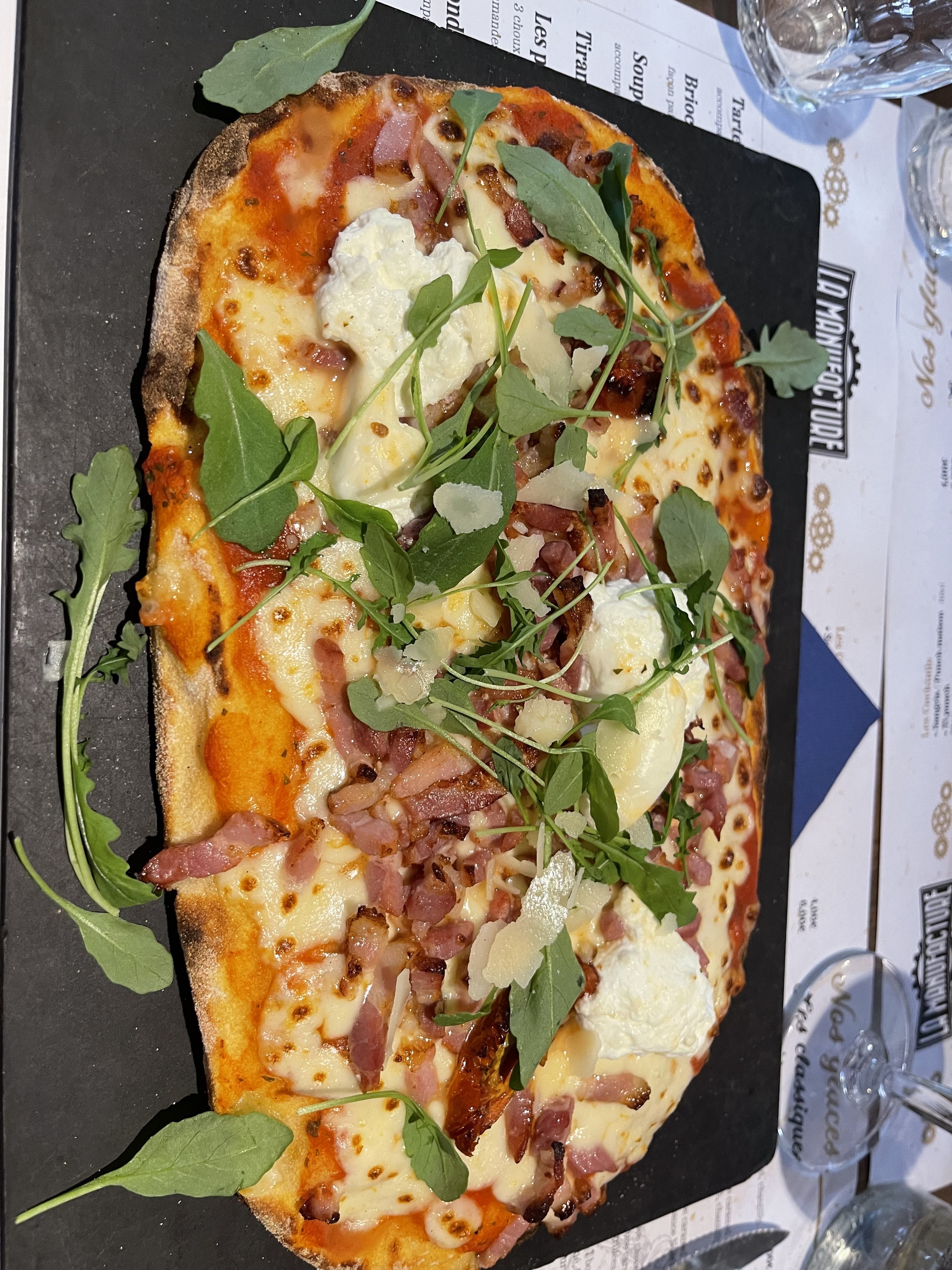 Directement placée sur la place, le restaurant est bien bondé ! Mais on comprend pourquoi. Les planches sont généreuses et les plats le sont tout autant. Le goût est là et il fait bon passer du temps dans la salle à côté du four à pizza. Très bon moment