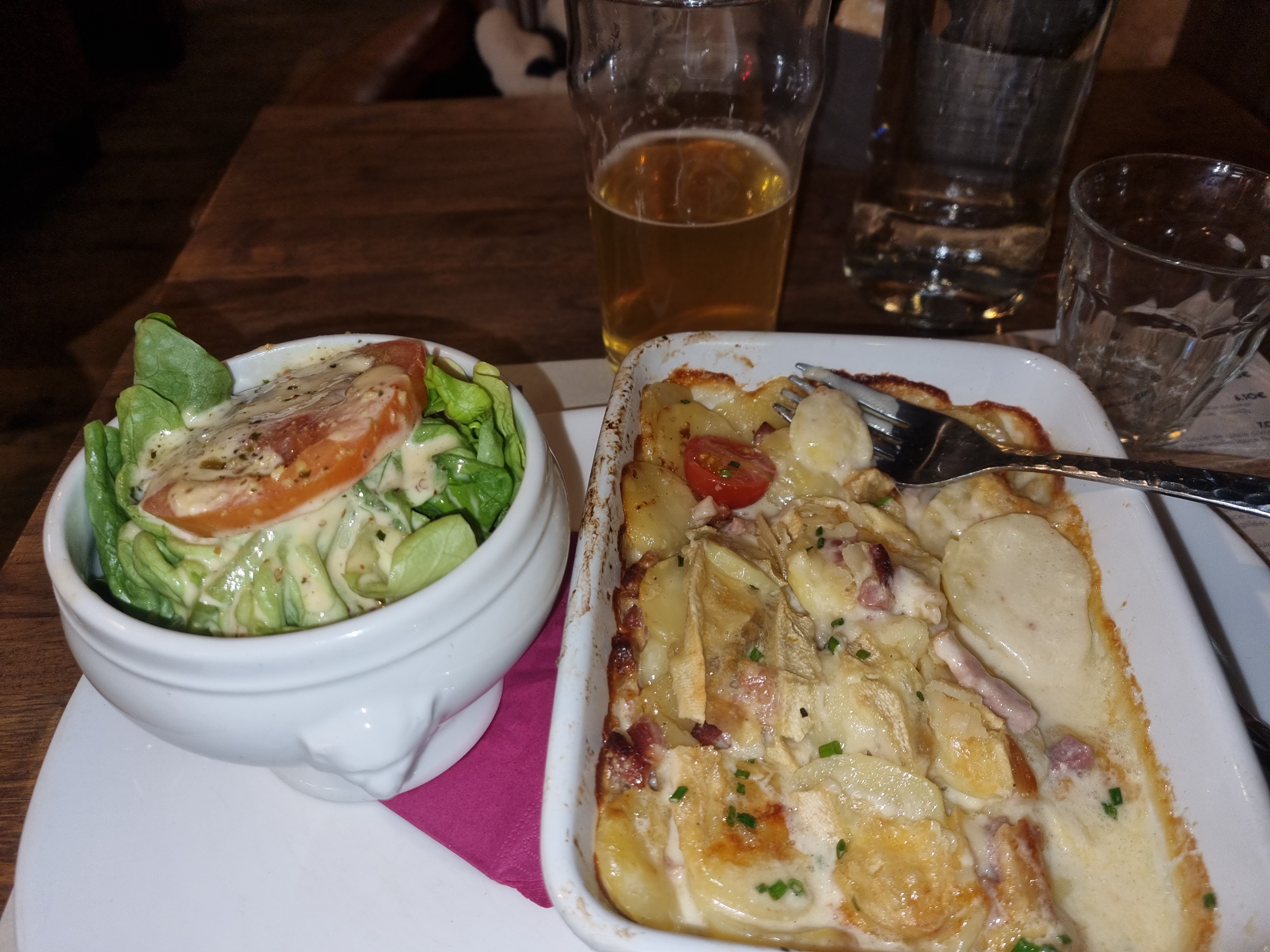 Un bon restaurant, avec un large choix de plats (viandes, pâtes, salades, poissons, crêpes, gaufres, glaces, boissons) : on s'est régalés, c'était délicieux ! En plus, la vue sur la place et les vieilles maison est magnifique. La décoration est belle et l'atmosphère agréable. On peut être en terrasse ou à l'intérieur : il y a de la place. En revanche, l'attente est parfois un peu longue : beaucoup de tables et de commandes à gérer... Mais le personnel est très sympathique !