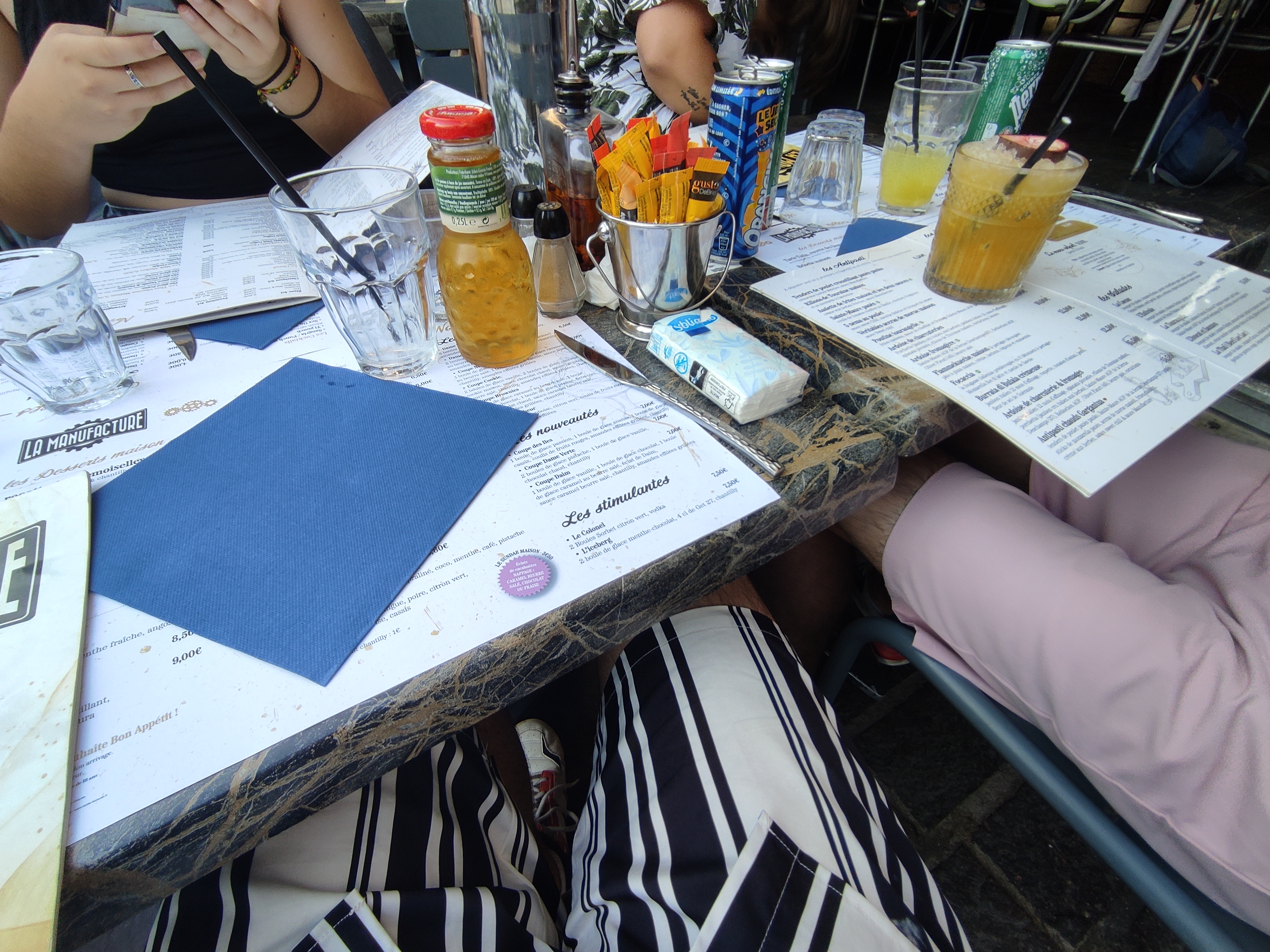 18 h20 nous sommes 11 et nous voulons juste boire un verre place plume entre amis nous déplaçons des tables et chaises et une fois installé le serveur nous explique que si nous ne mangeons pas il faut se mettre ailleurs mais la place est bondée et on lui explique qu'on va devoir aller consommer à la concurrence ce qu'il nous invite à faire ! Merci à lui car le bar opposé nous a accueilli à bras ouvert en s'arrangeant pour nous trouver de la place en terrasse ! La manufacture à perdu nos consommation et n'en a pas gagné d'autre pendant ce temps là car les tables sont restée vide !...