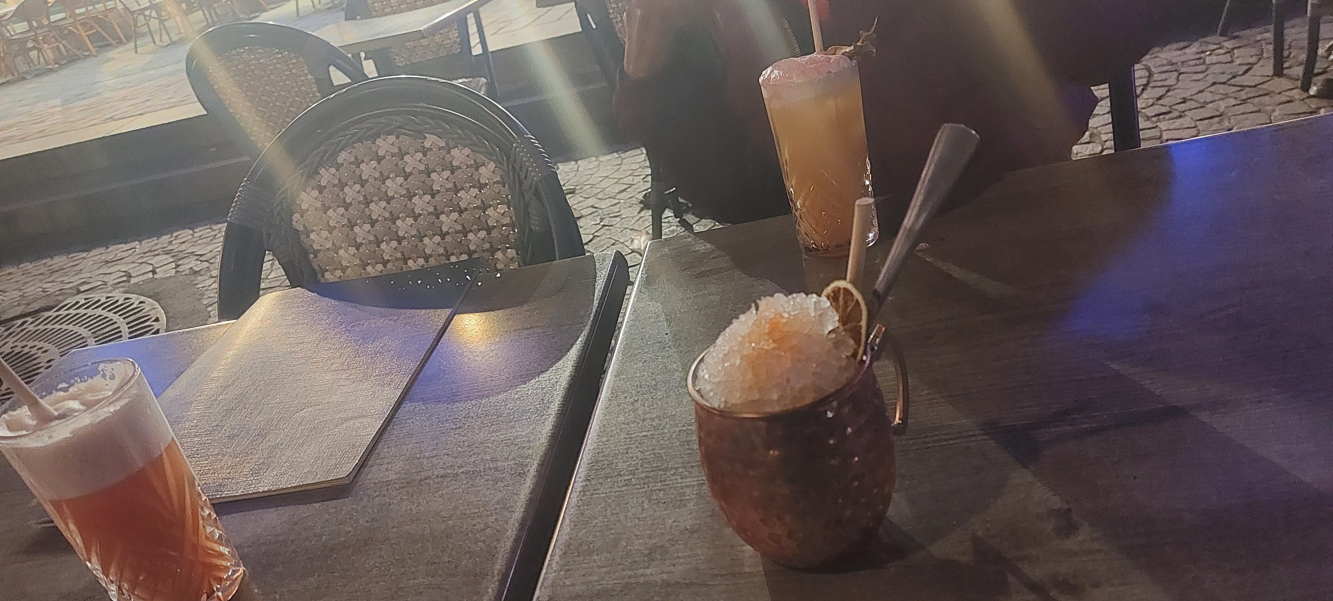 Très mauvais cocktails, smoothie clair comme de l’eau et gin fizz plus proche d’une citronnade. Le serveur était plus occupé avec ses copains, qu’avec les clients. Nous voulions rester y manger, nous avons fuit dès que les verres furent terminés et après 30 minutes d’attente pour prendre notre commande. (Pas beaucoup de monde en terrasse et personne à l’intérieur, heureusement…)