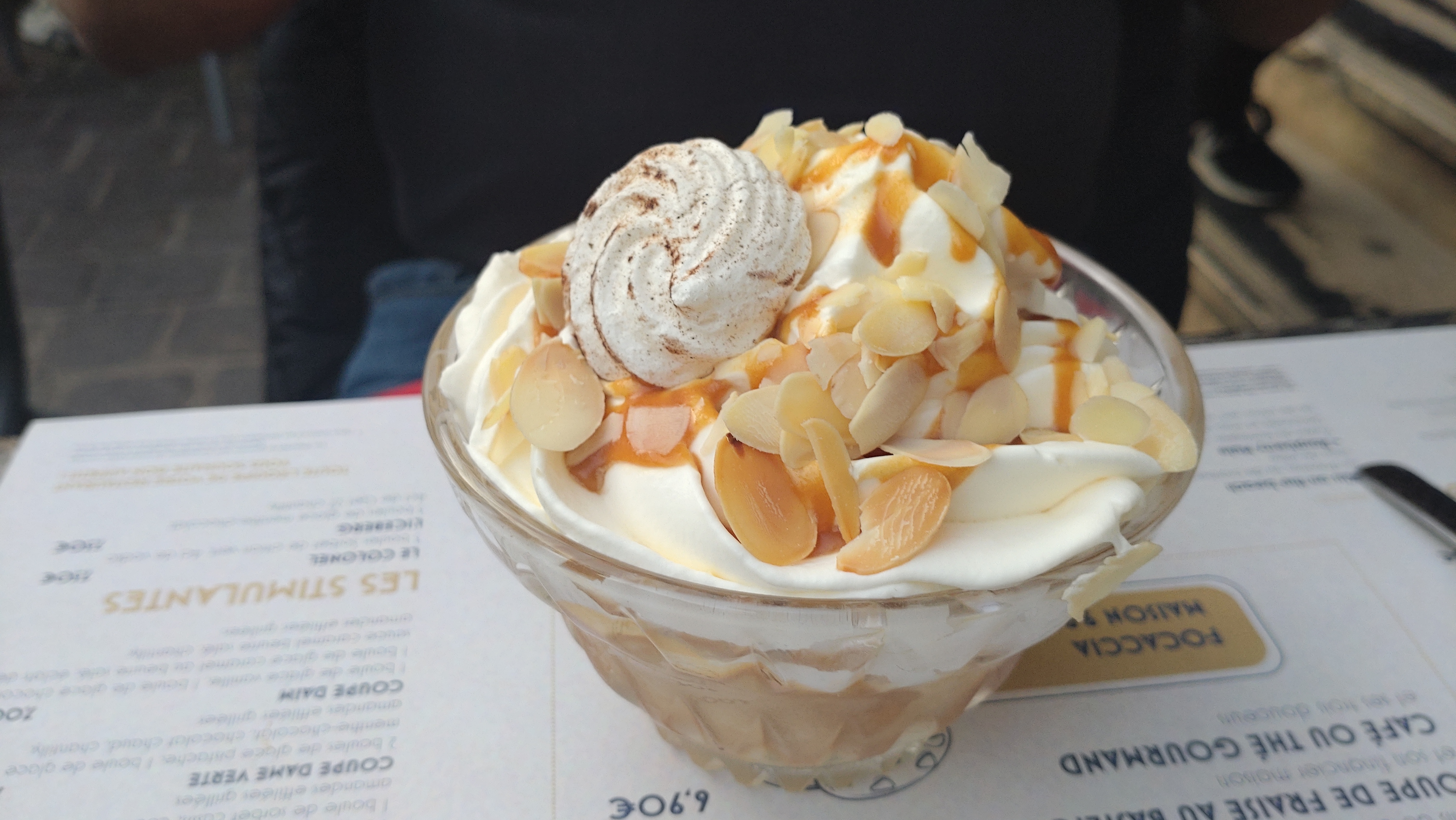 Une envie de manger une Gauffre à 16h ☺️et bien pas top 😔,Gauffre pas terrible, enfin, demi-gauffre voir quart de Gauffres tellement petite qu'ils ne les servent plus dans des assiettes maintenant mais dans des coupelles. Trop cher. Frustré, je suis aller en chercher une vrai au Tutti gusti.... Je précise également qu'il à fallu demander le nettoyage de notre table dégueulasse, sinon ça ne les gênaient pas de nous servir par dessus.Bon après tout, pourquoi faire des efforts ils sont bien placés et toujours blindés 🥴
