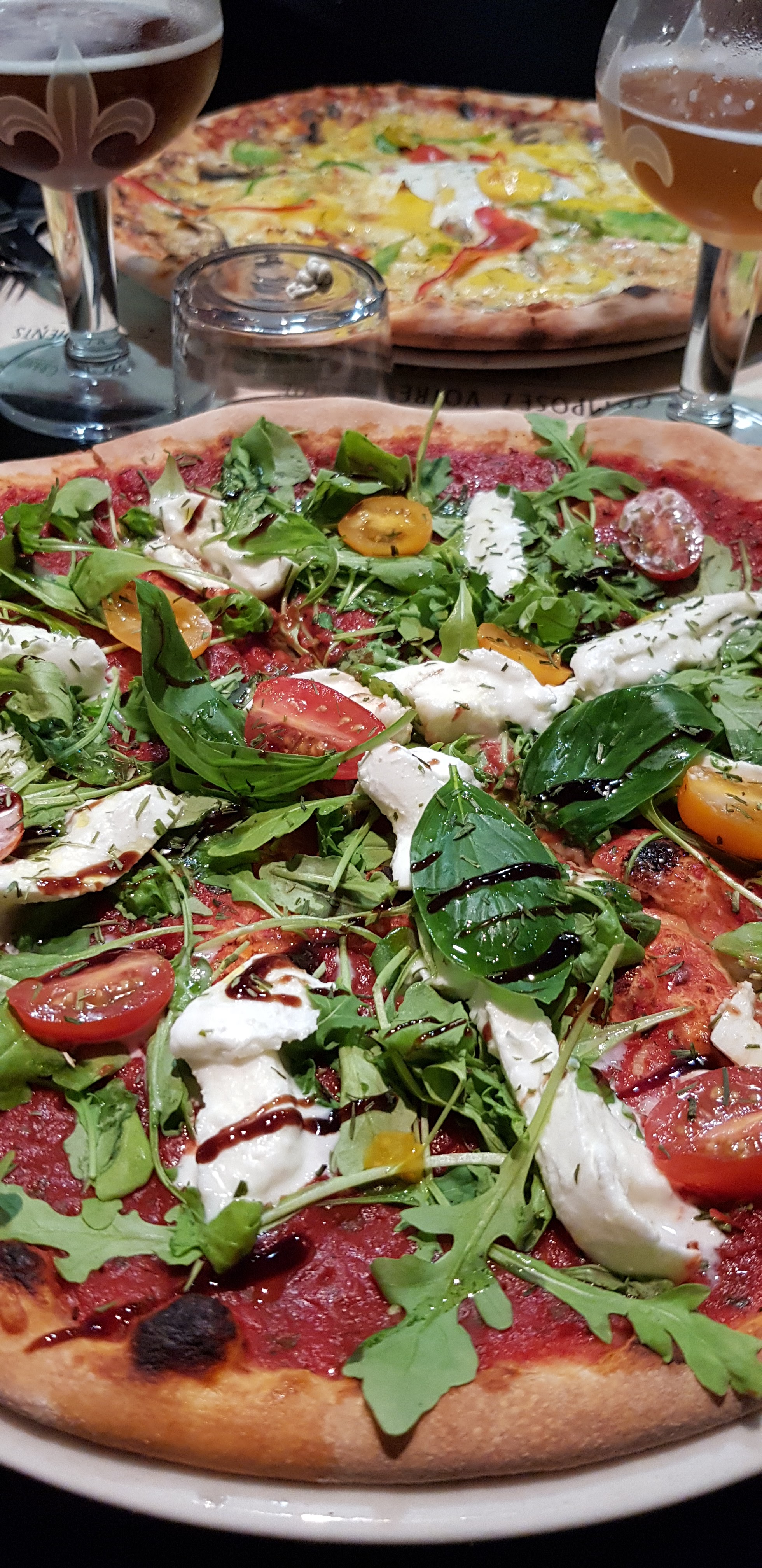 la pizza roquette, mozza, vinaigre balsamique et tomate cerises était délicieuse!!