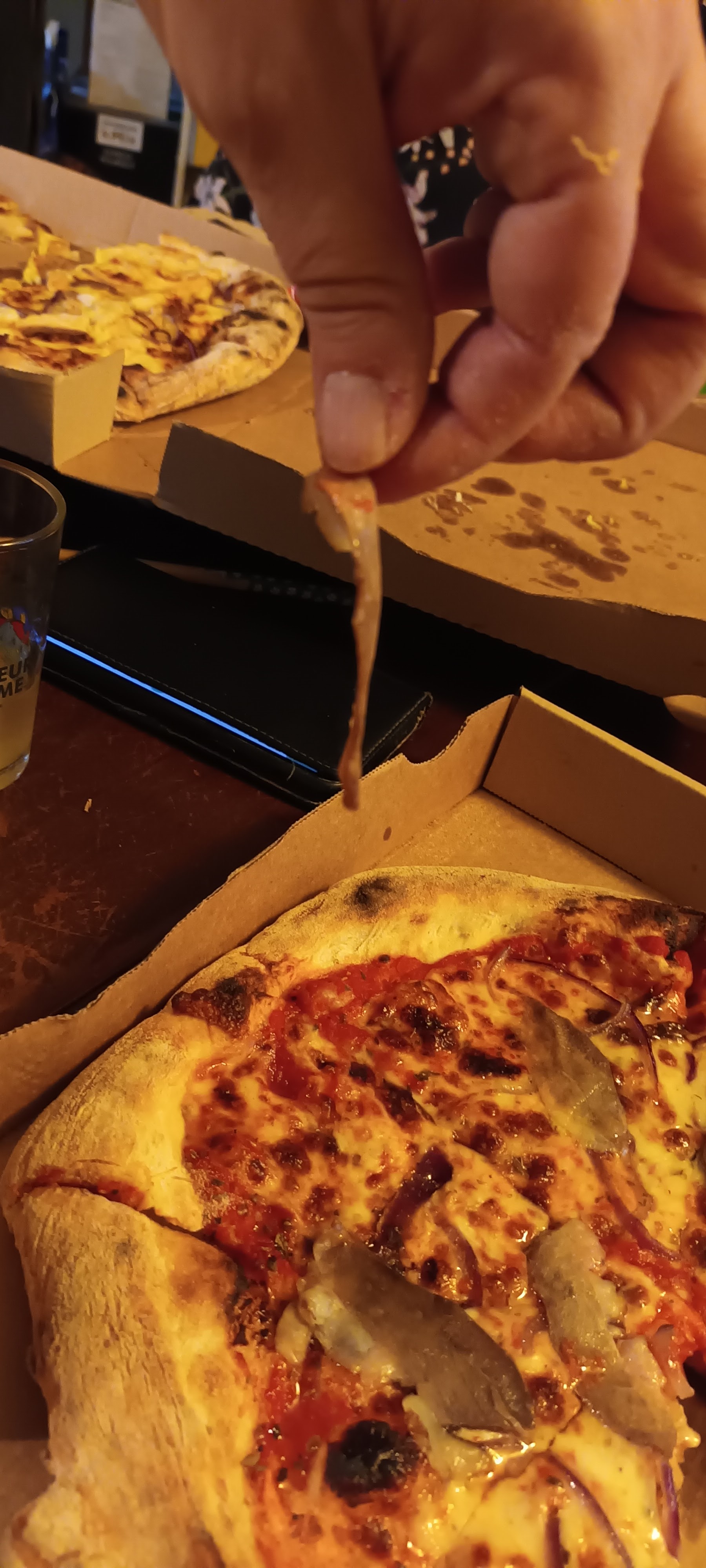 Très content et superbe pizza bien garnies pas pu finir on les a emmené bonne ambiance ts très sympas je recommandes