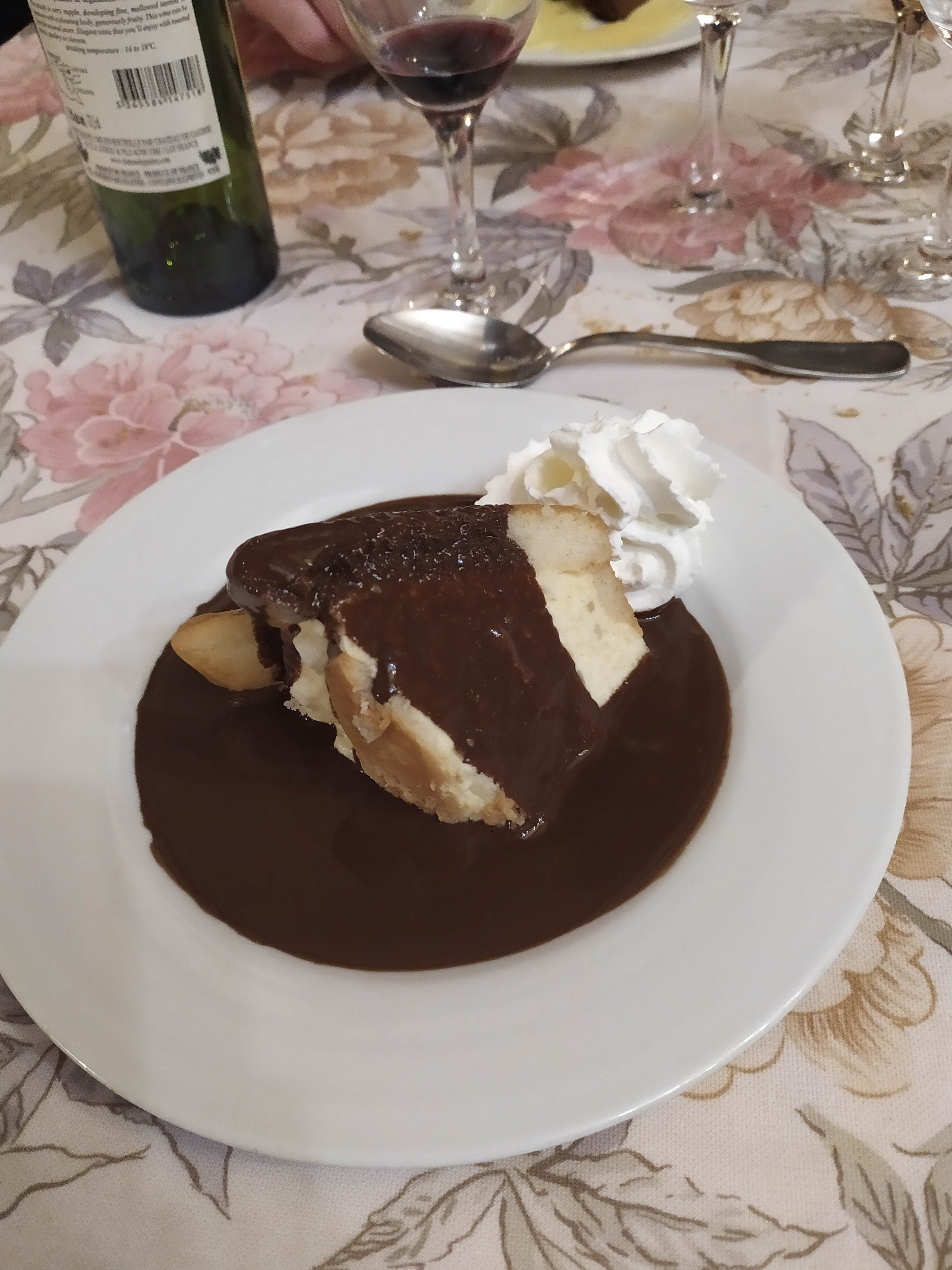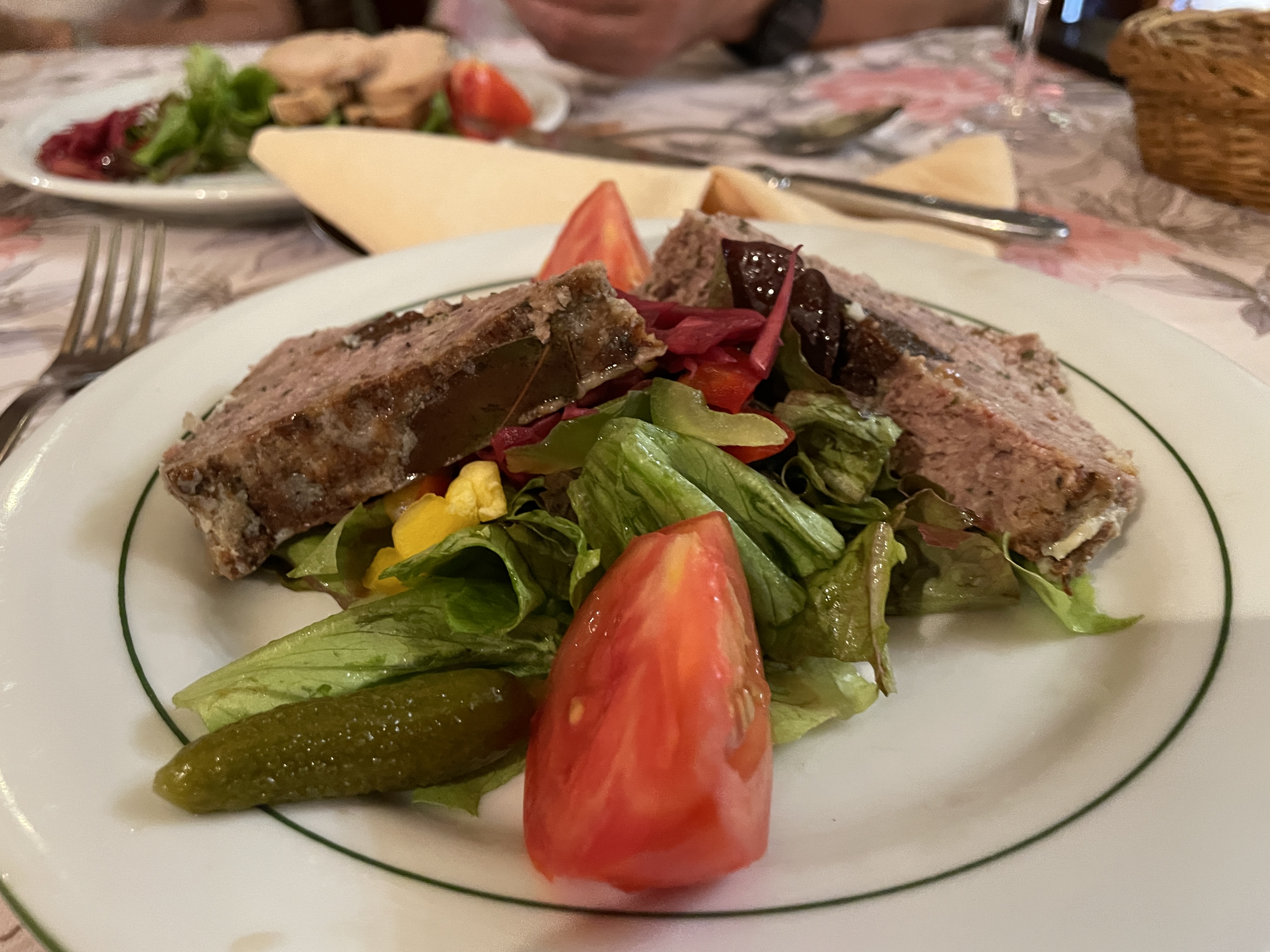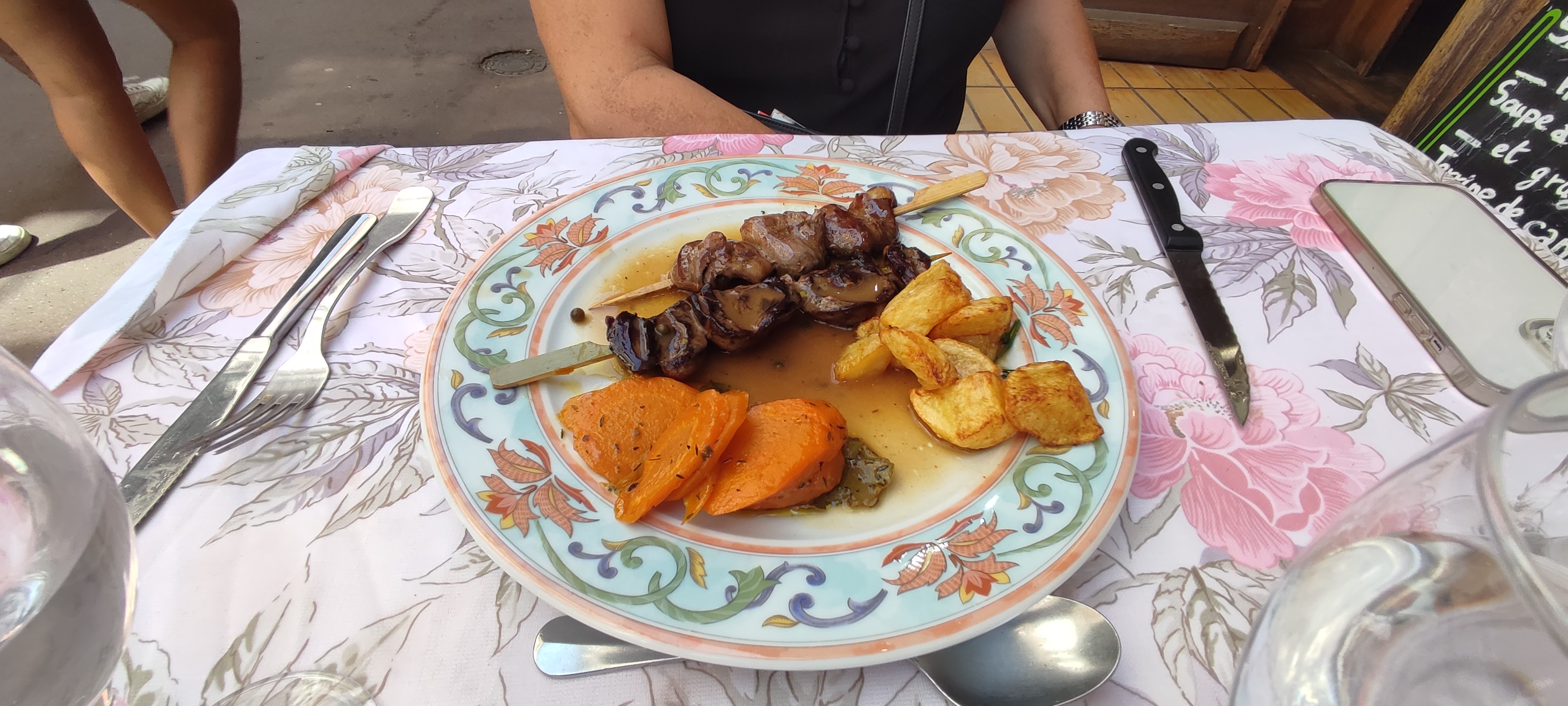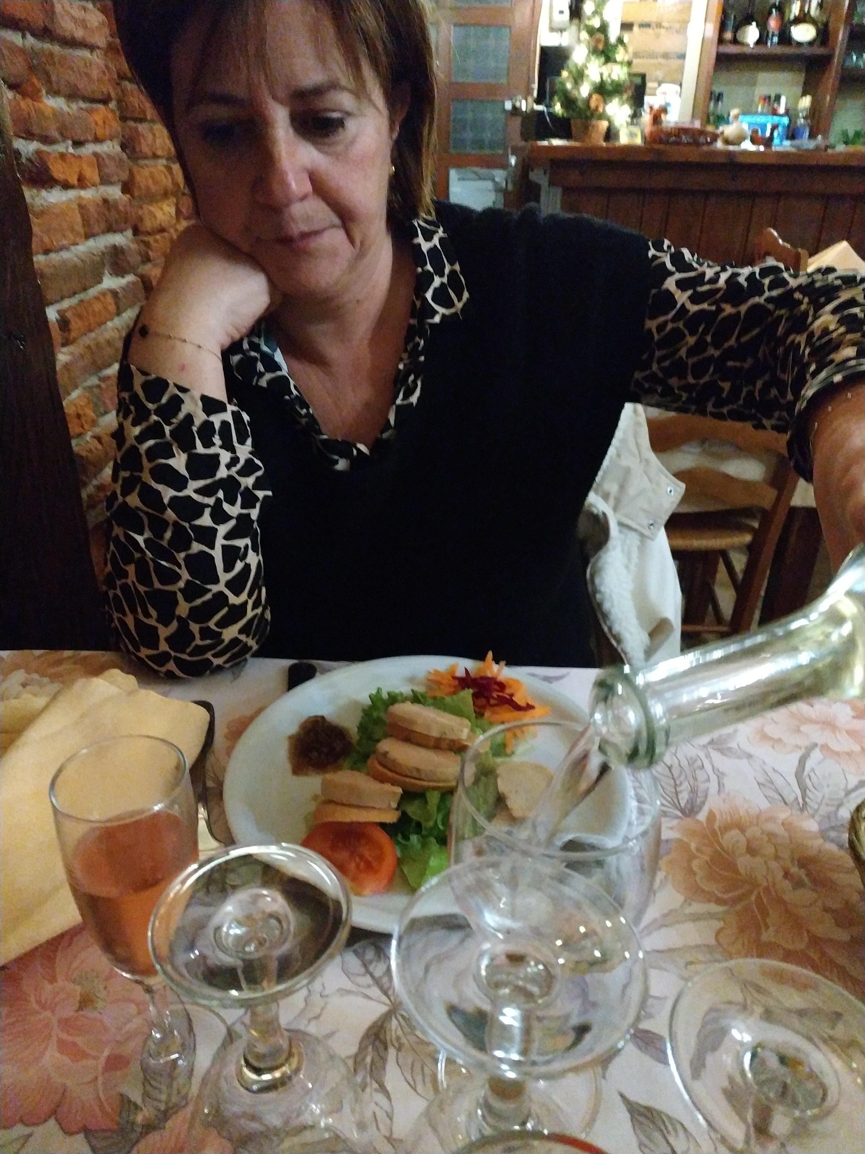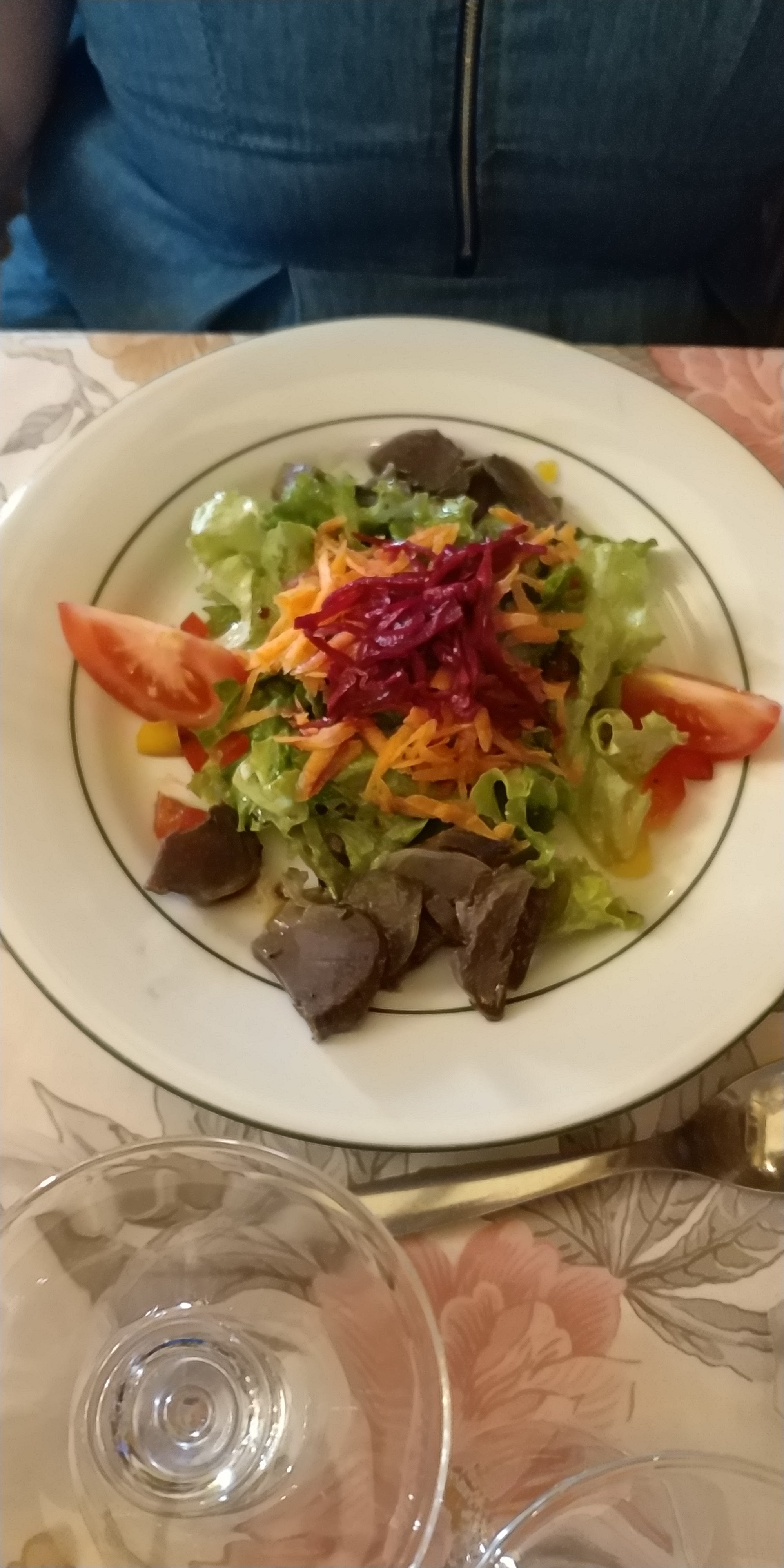 Nous avons bien mangé. J'ai réservé en pensant trouver une ambiance du Sud-Ouest, un patron avec accent... Le seul hic, c'est que nous avons eu à faire avec du personnel indien. Le serveur était dépassé par le service, je passe les détails. Mon mari avait demandé une terrine de canard, il s'est vu servir une salade de gésiers 😟 On réclame, l'assiette part...et revient identique à la précédente, mais avec 3 tranches de magret fumé 😏 On réclame une fois de plus, et l'assiette tant attendue est enfin arrivée ! 😀 Nous avons aussi demandé une carafe de vin, mais le serveur nous dit qu'il n'y a que des verres.... De 25cl !!! Mon mari lui pose une fois de plus la question, le serveur confirme qu'il aura bien un verre de 25cl 🤪 tout compte fait, il est arrivé avec un verre de vin rouge, chaud, et de 12 cl !!! Je n'ai pas insisté, in a laissé tomber l'affaire 😉 J'avoue que nous avons été patients, ça nous a fait plutôt sourire. Le pauvre serveur... il va vraiment falloir une formation.