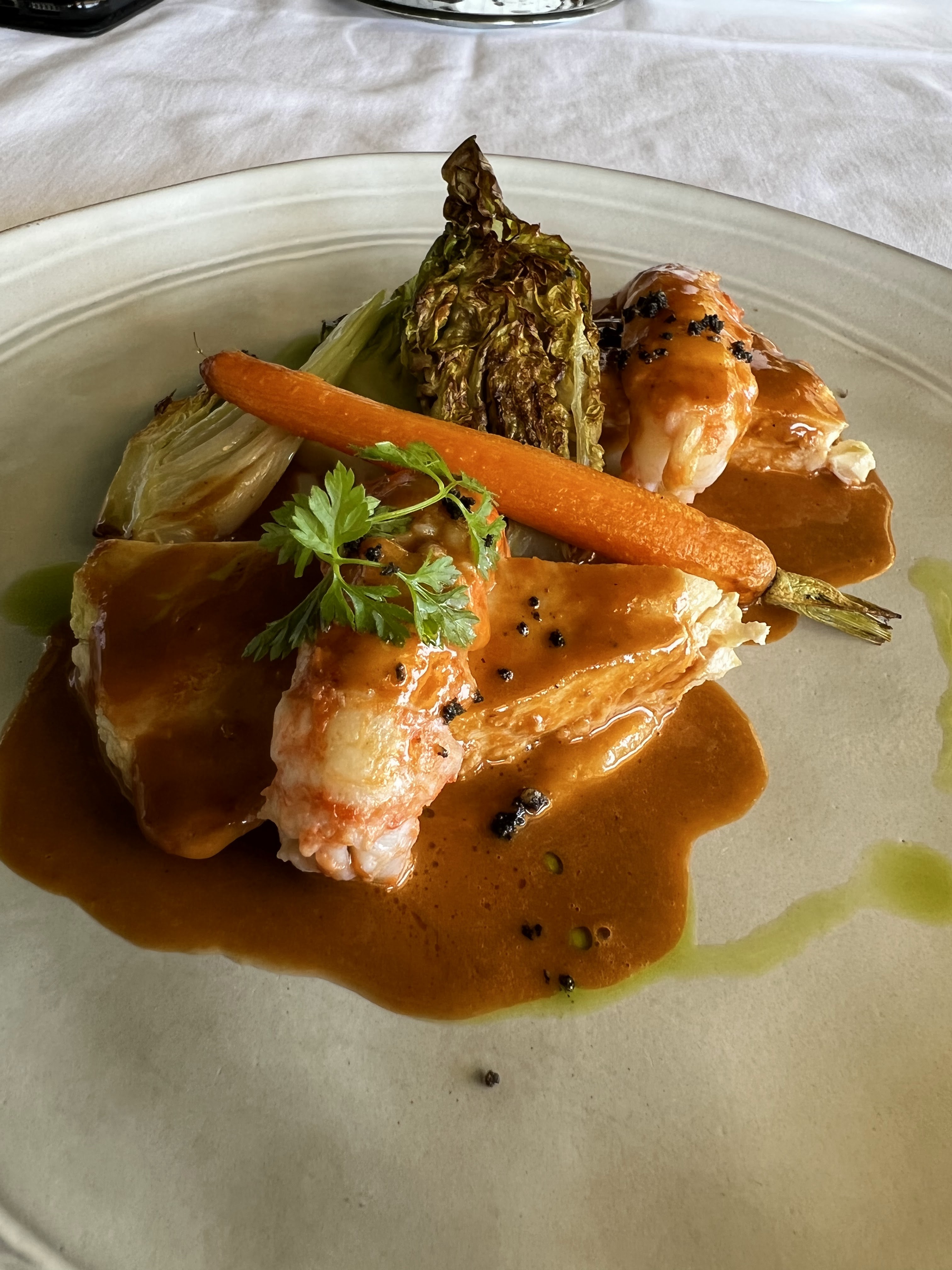 Cadre très agréable et reposant. Personnel aux petits soins tout en n'étant pas intrusif. Les plats sont excellents mais la soupe de poisson est particulièrement succulente. Les plats sont magnifiques. On en prend plein les yeux. Nous avons passé une bonne soirée.