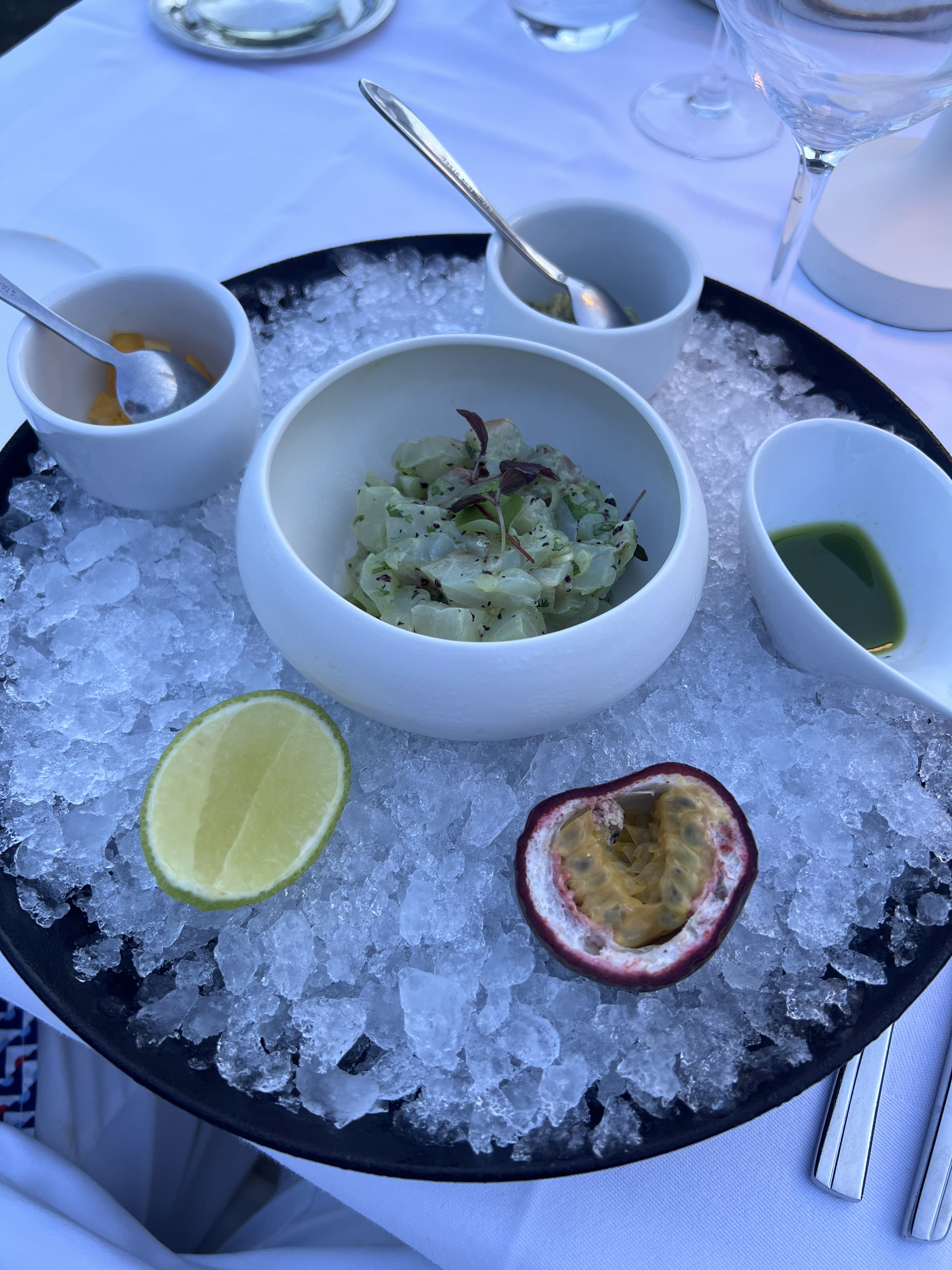 Absolument sensationnel à tous égards. Le restaurant a la plus belle ambiance et la présentation et la qualité des repas méritent 6 étoiles sur 5. De plus, l'explication approfondie des repas en français lorsqu'ils sont servis à table vient de compléter une expérience culinaire aussi parfaite.