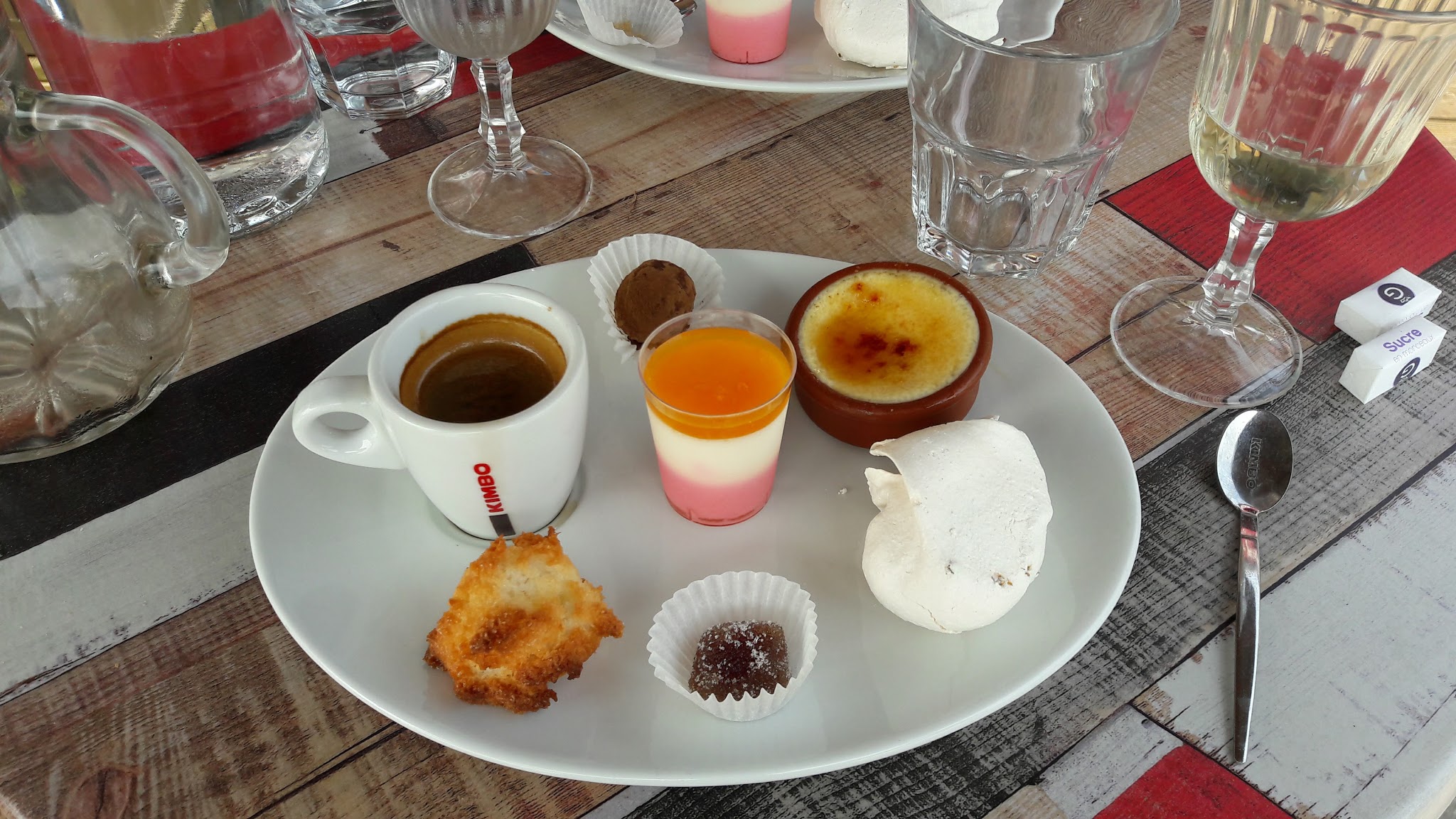 Repas en terrasse Service rapide Bon plat les moules étaient délicieuses La panna cotta du café gourmand demande à être retravaillée... dommage