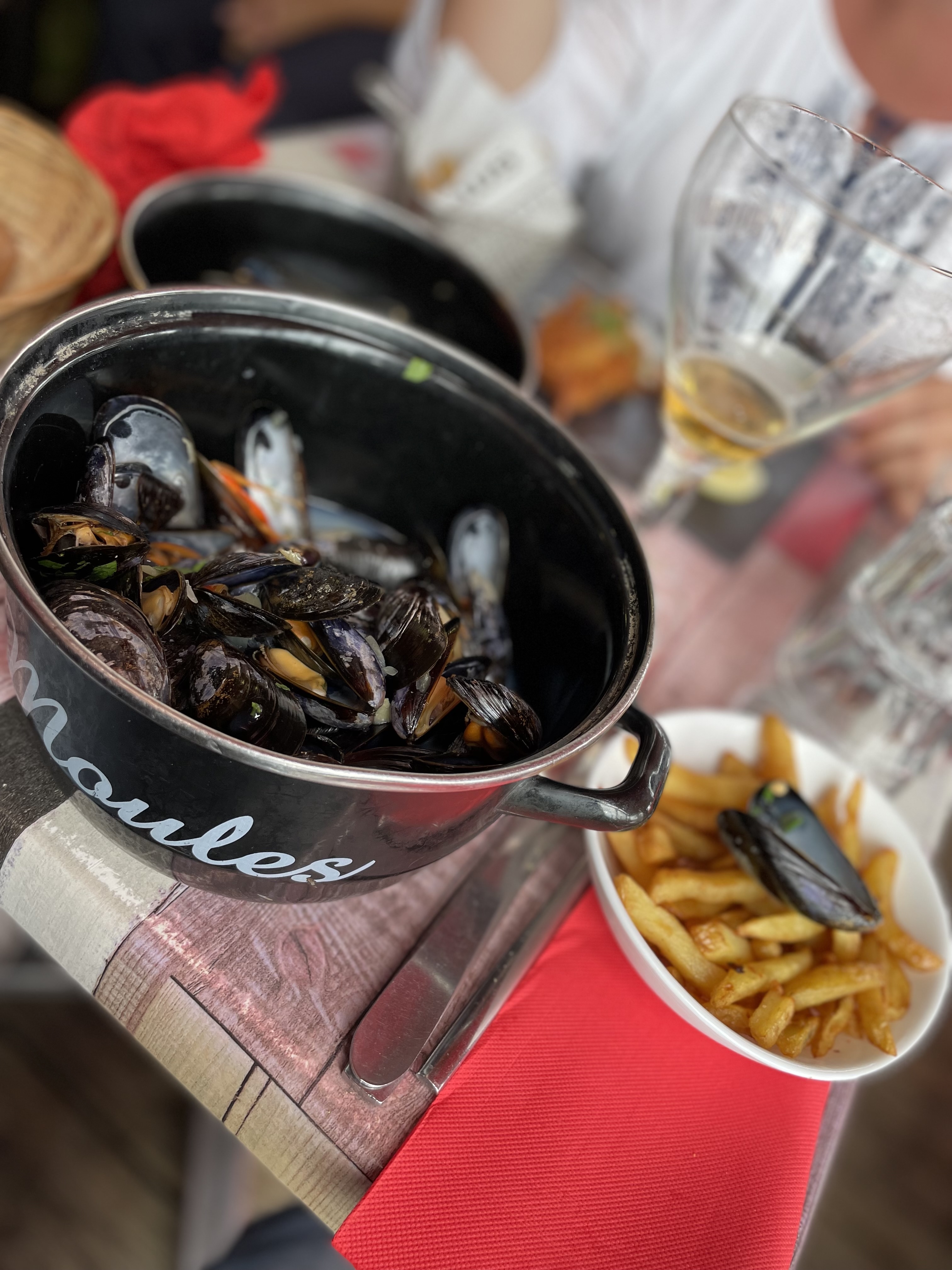 Nous sommes allés avec mon mari manger des moules frites, elles étaient bonnes. Mon mari ancien cuisinier a trouvé qu'il manquait de vin blanc dans la sauce. Nous n'avons pas pris de dessert, beaucoup trop de monde, les tables les unes contre les autres, très bien pour faire augmenter le taux de COVID !.
