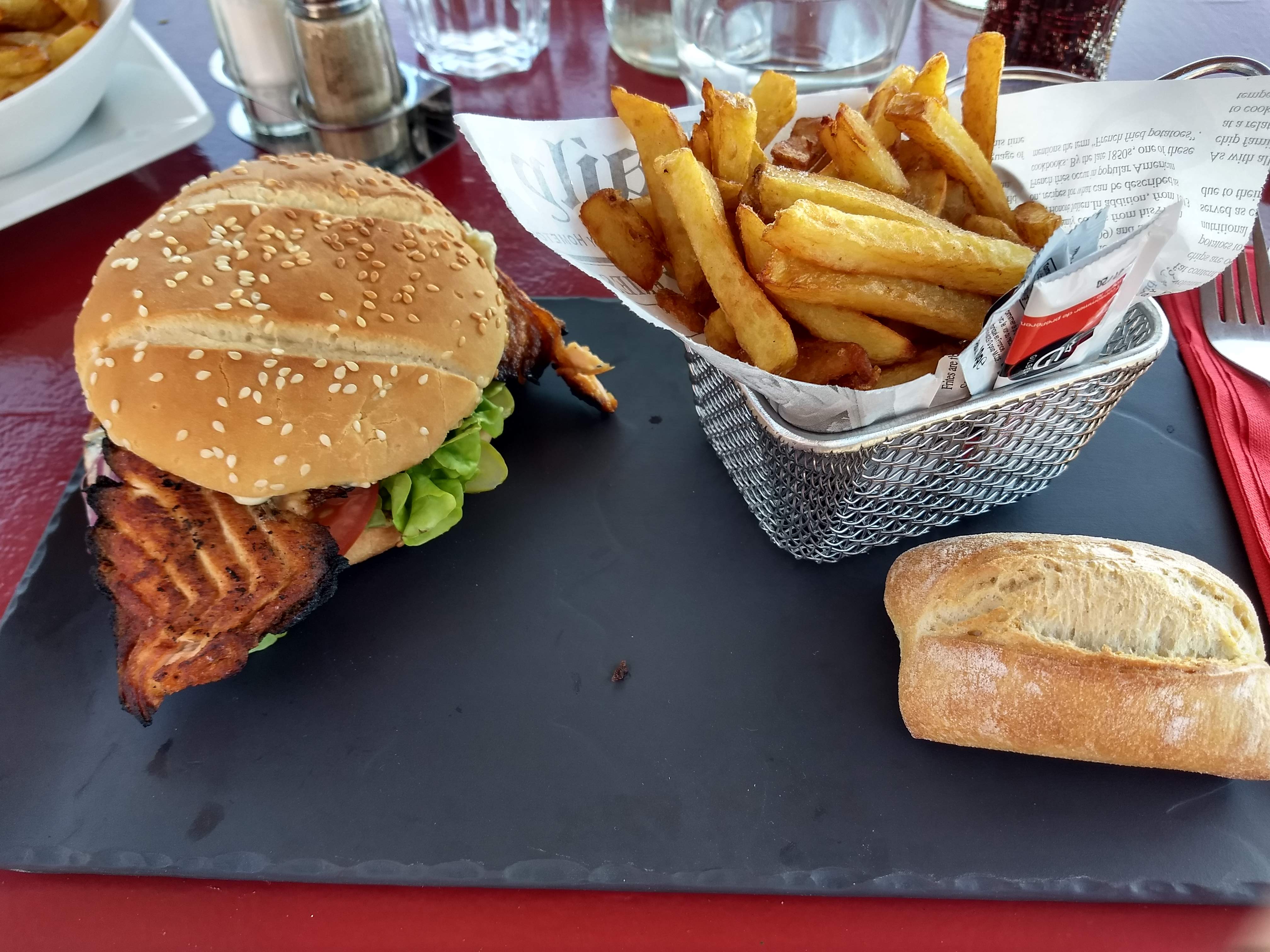 Très bon accueil, ns avons pris burger saumon et fish en chips, cuisson parfaite. Nous reviendrons.