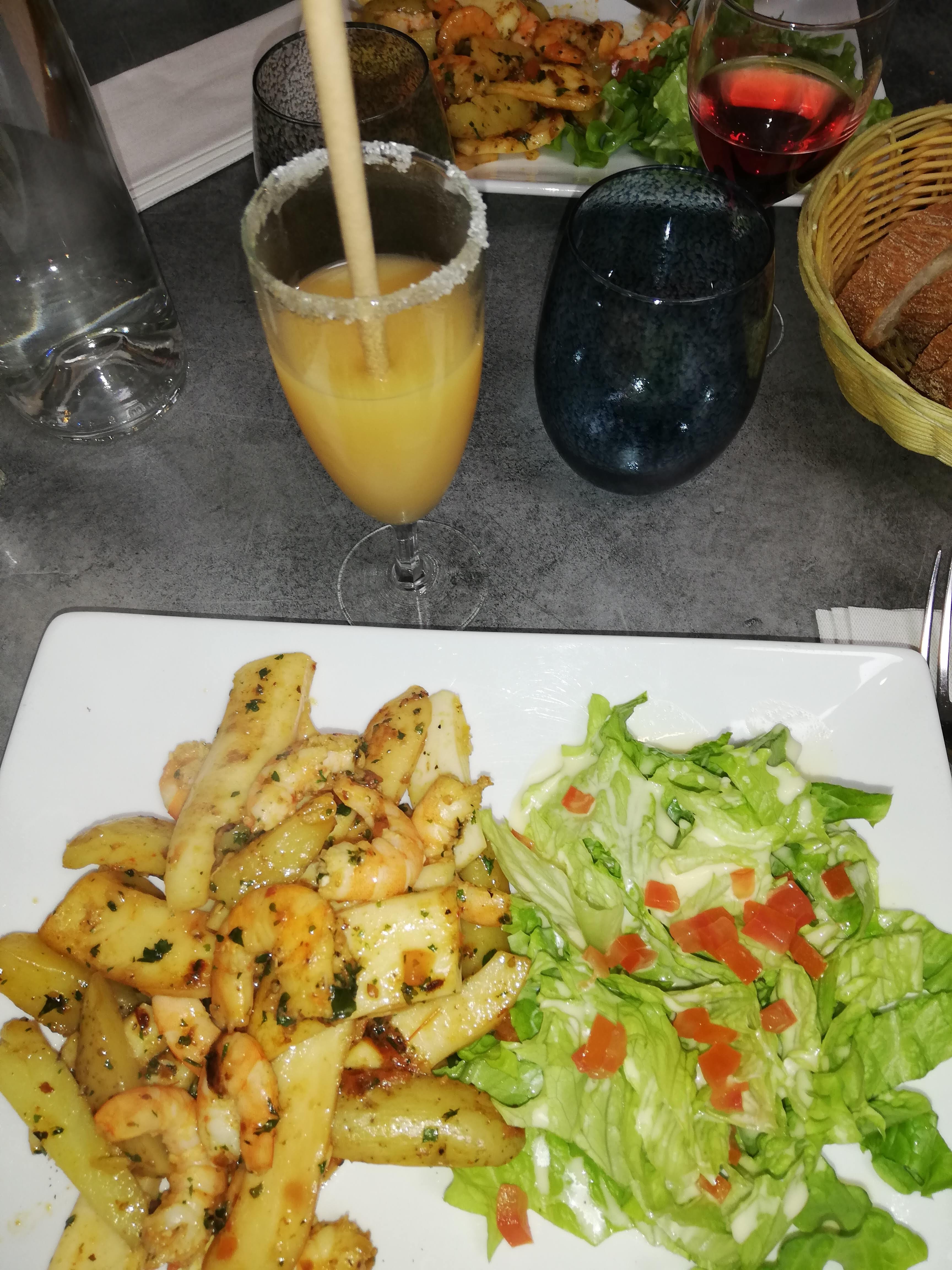 Nous étions un grand groupe et très bien accueilli. Menu à 23€ très bon! Toutes les quantités sont généreuses et les serveuses chaleureuses. On recommande, surtout le service du soir en terrasse, le coucher de soleil en vaut le coup!