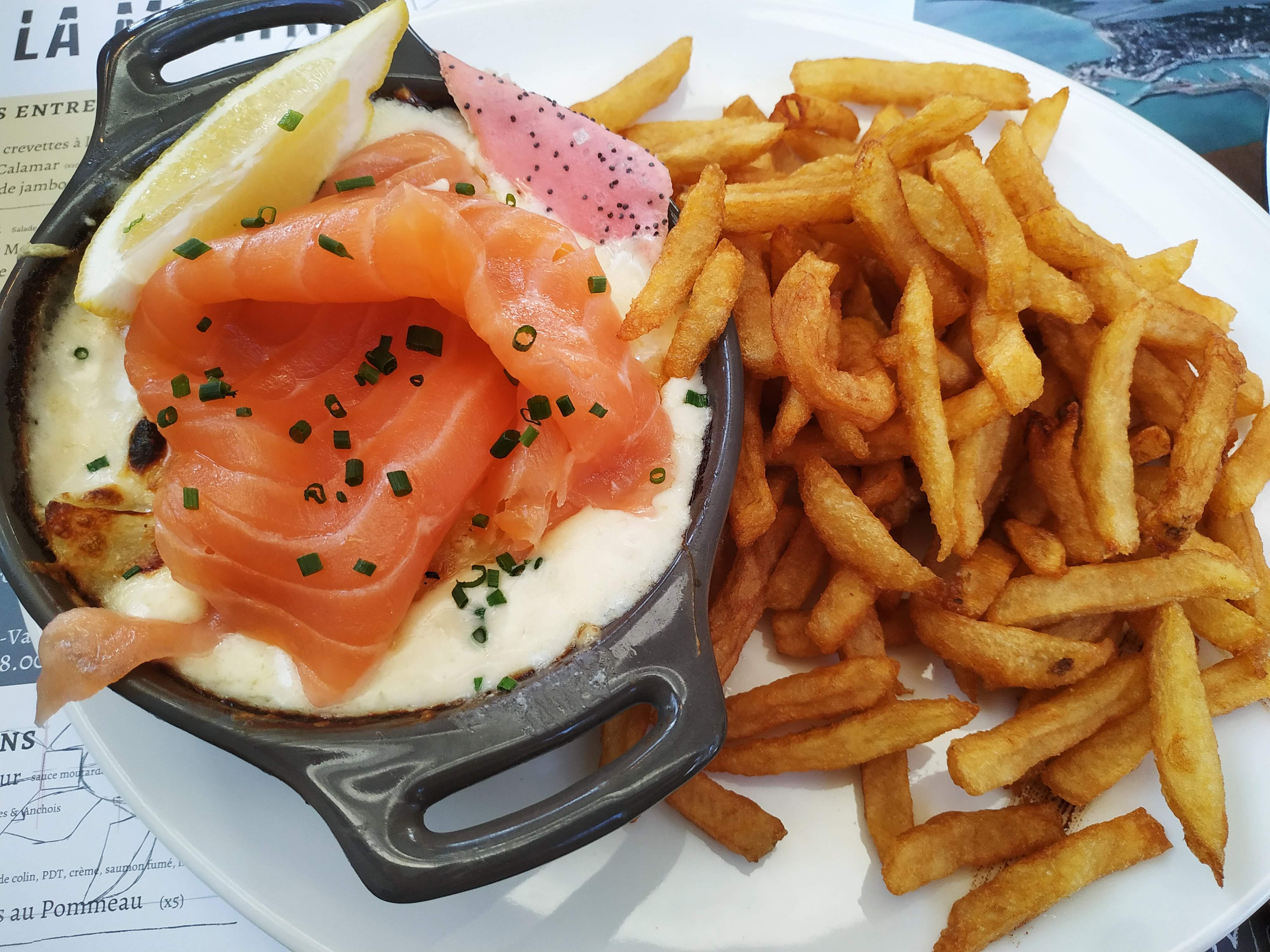 Nous avons bcp aimé le homard flambé au whisky accompagné de délicieuses carottes confites… et le dessert incontournable… des frites!😂 Bel accueil et bonne table! Merci!