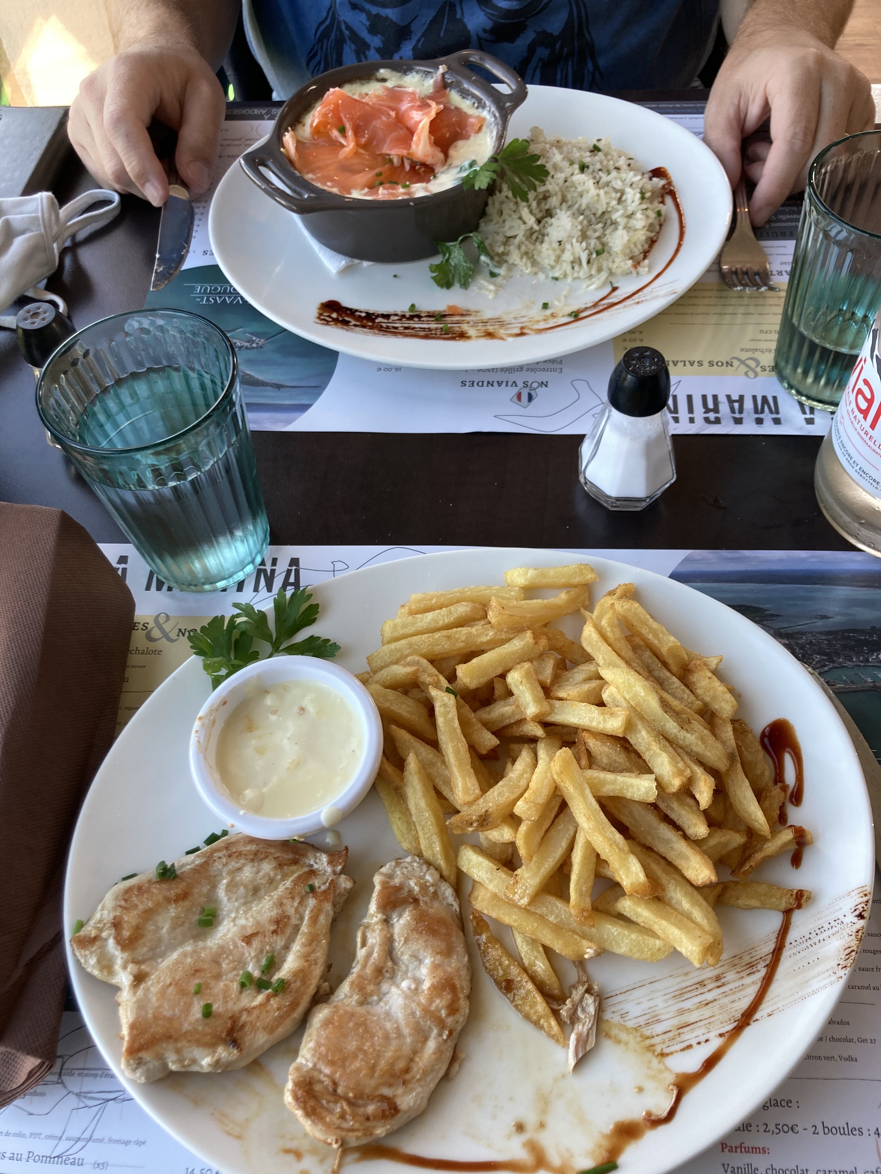 Très bon restaurant agréablement surprise. N’ayant pas pu avoir une table au restaurant « les fuschias » nous nous sommes tournés vers « la Marina » et très bonne surprise du service au dessert tout est parfait ! Les produits sont frais, la qualité est top ! J’ai pris une entrecôte la cuisson était maîtrisée à la perfection ! La serveuse très efficace et rapide. C’est simple et bon allez-y les yeux fermés !