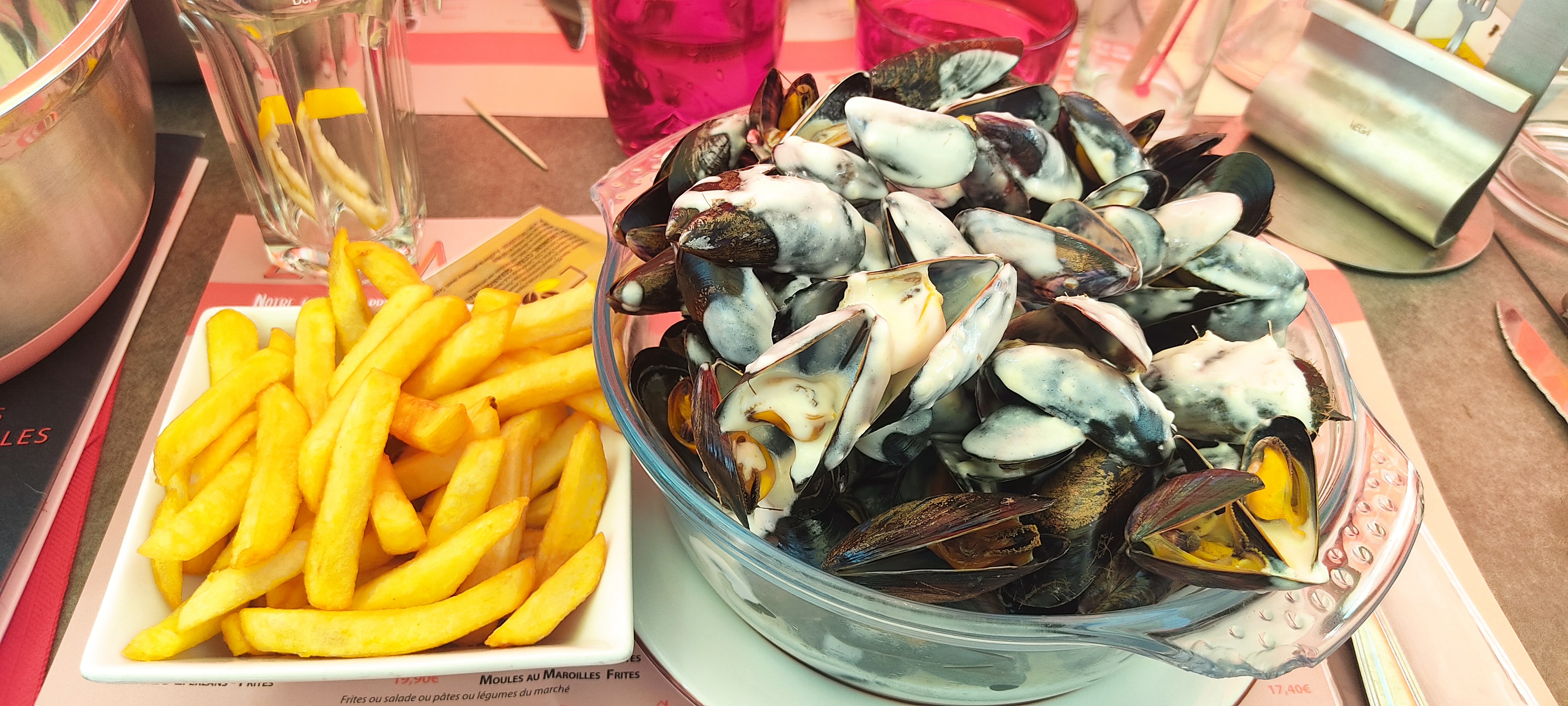 Moules frites très bonnes, service agréable. Ma remarque est qu' il faudrait revoir la taille et donc le prix du menu enfant. Il est prévu pour les enfants de moins de 10 ans, il est à 10.9€ mais bcp trop copieux pour un petit. Notre fille de 6 ans et demi qui n'a pas un appétit de moineau était loin de pouvoir terminer ses moules frites qui étaient de la même portion que les adultes. Donc dommage car gâchi et prix un peu élevé pour un enfant. (ou prévoir 2 tailles de menu enfants selon la tranche d'âge). Merci pour ce bon moment.